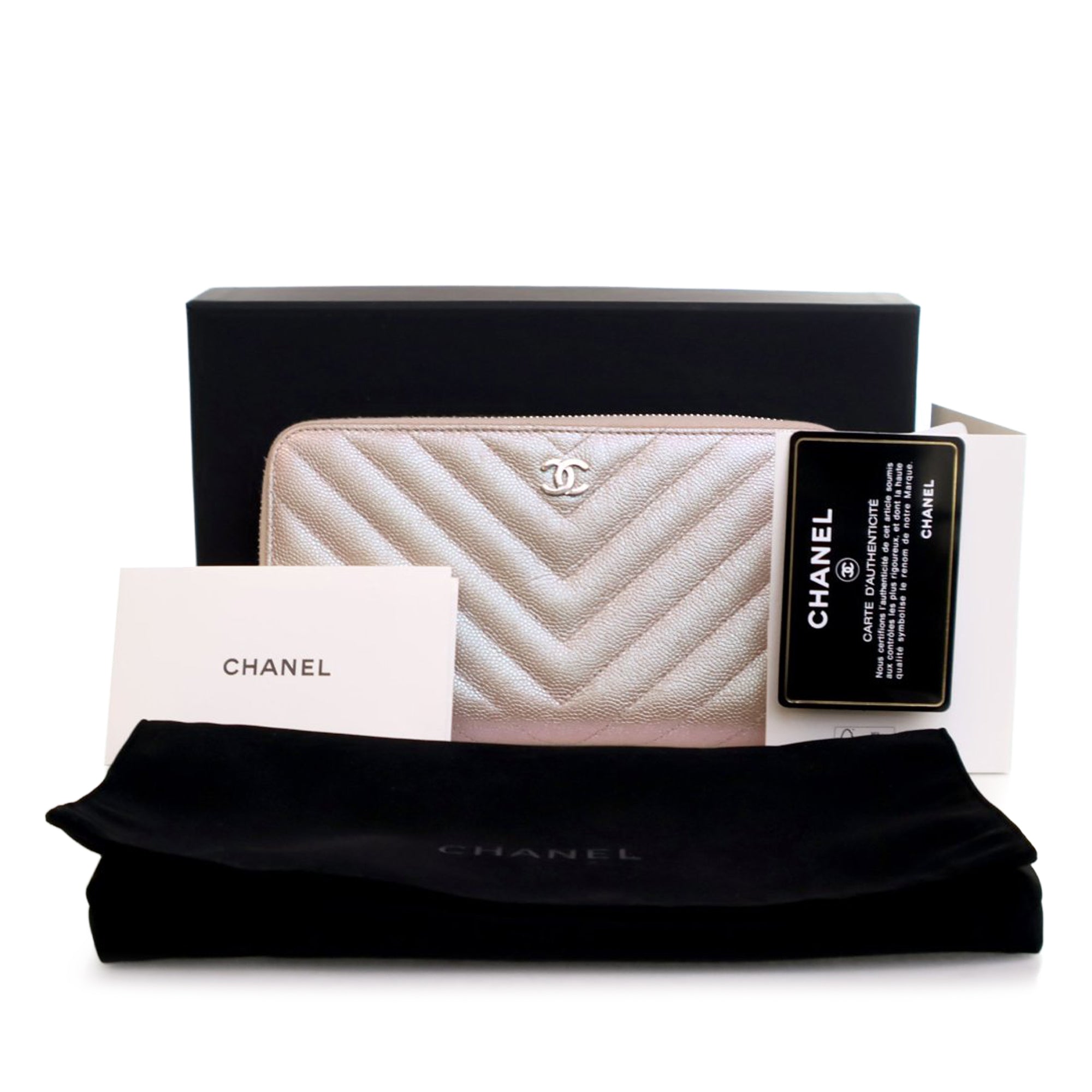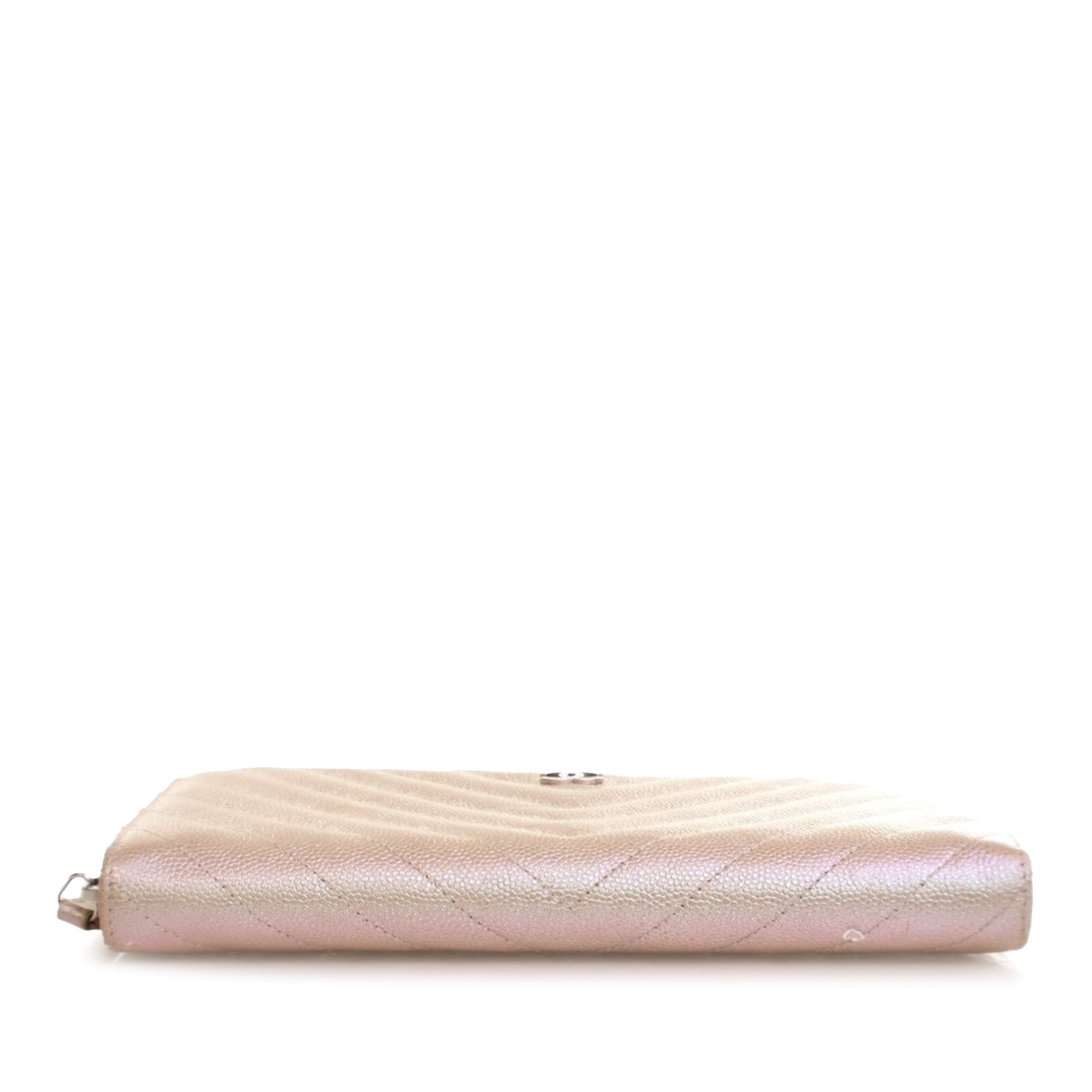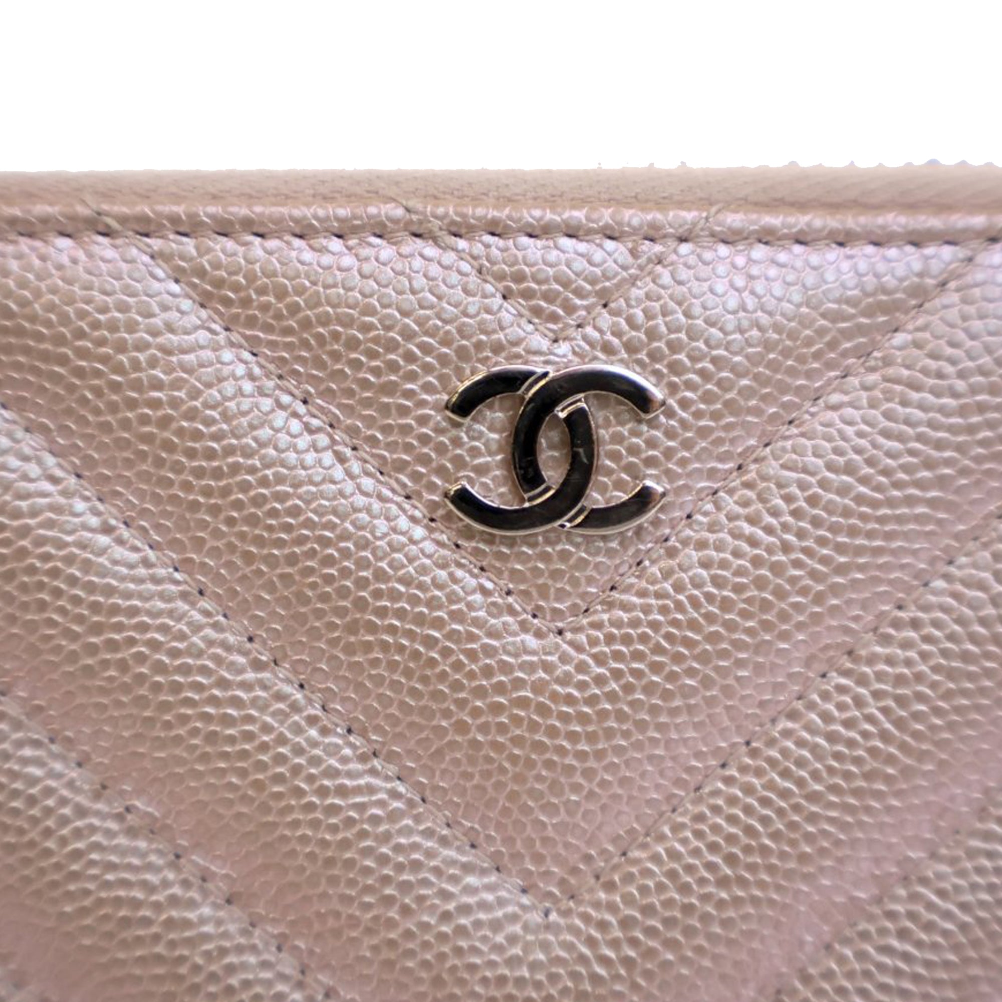 Chanel CC Chevron Iridescent Caviar Zip Around Wallet