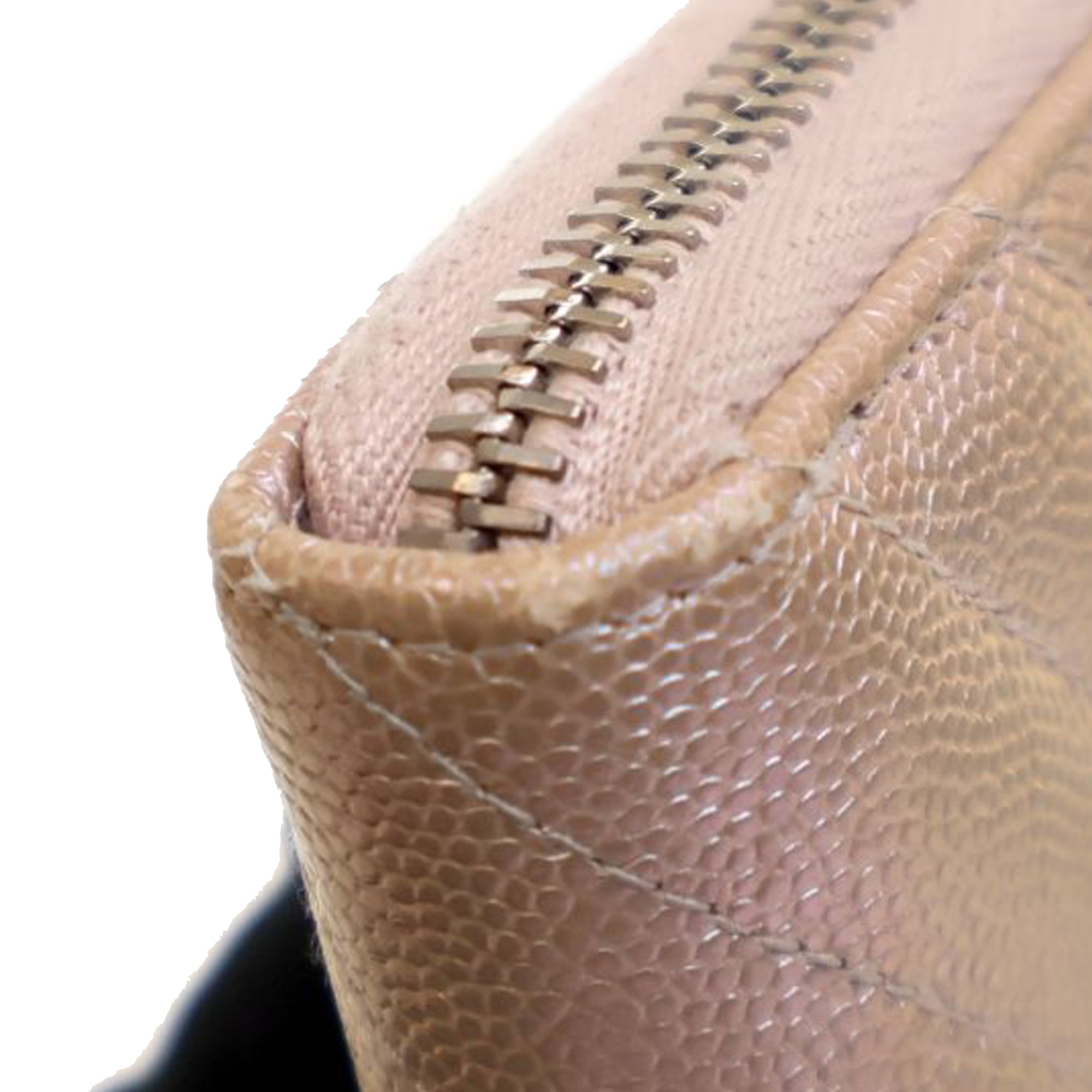 This long wallet features a quilted caviar body, a zip around closure, and interior zip and slip compartments. Inclusion: Dust bag, box, authenticity card. Retail Price: 1390.00