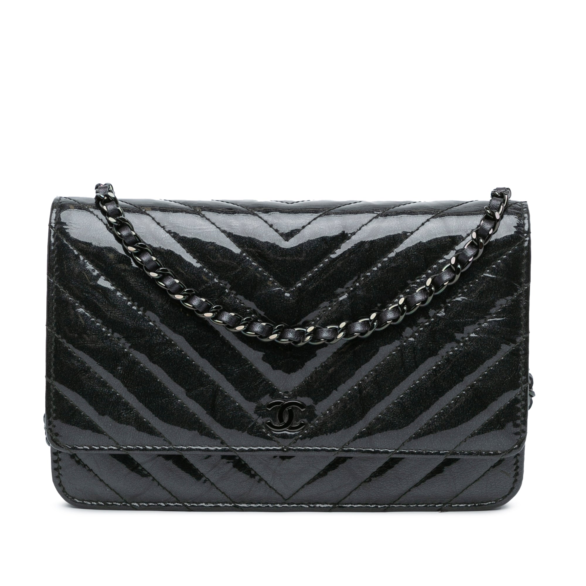 Chanel CC Chevron Quilted Crumpled Calfskin Wallet On Chain