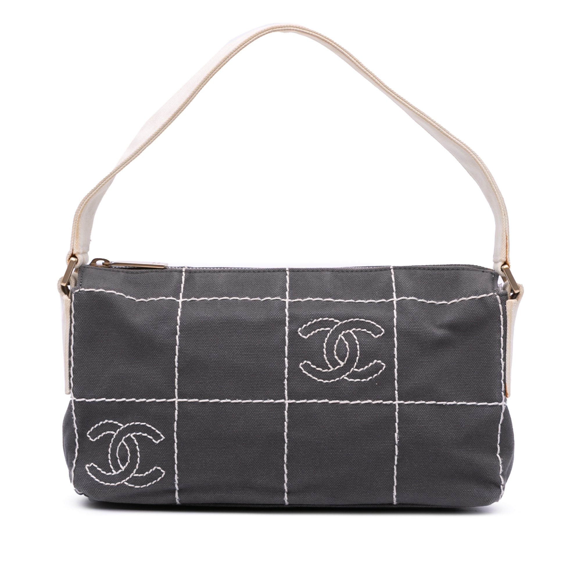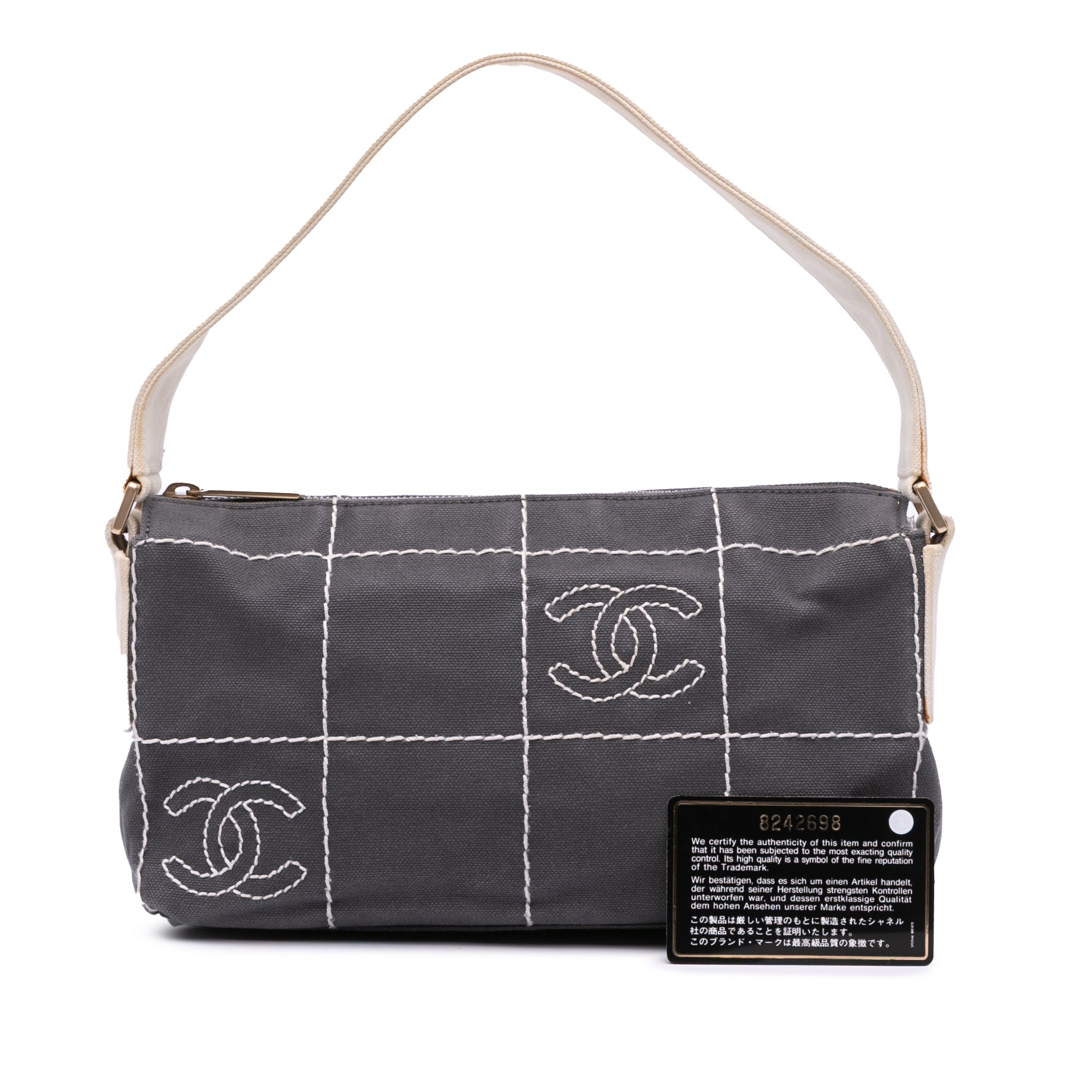 Chanel CC Chocolate Bar Canvas Shoulder Bag