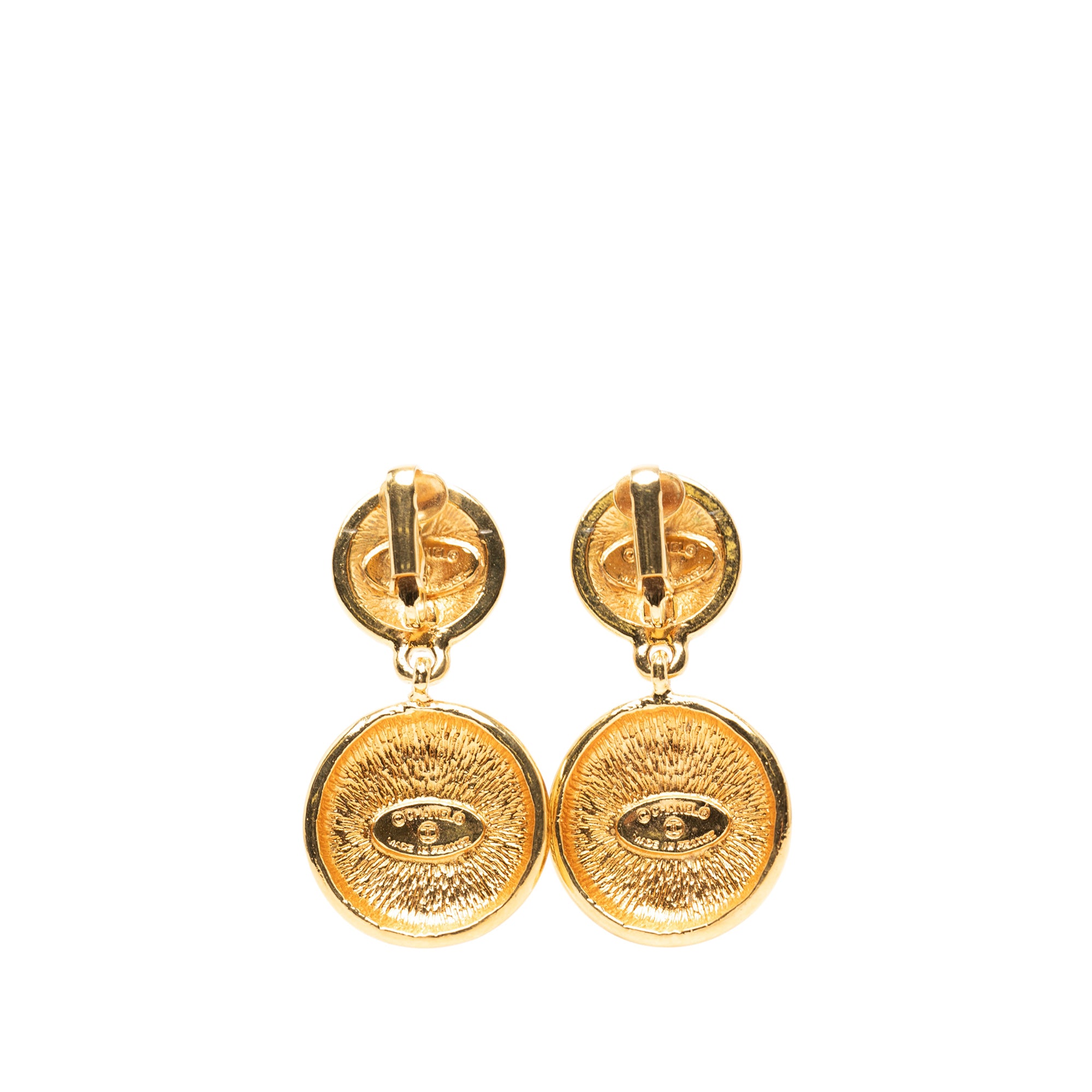 Chanel CC Gold Plated Medallion Drop Clip on Earrings