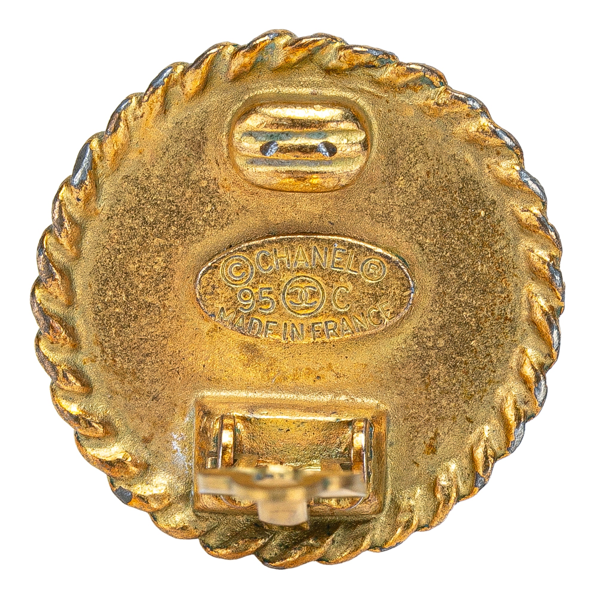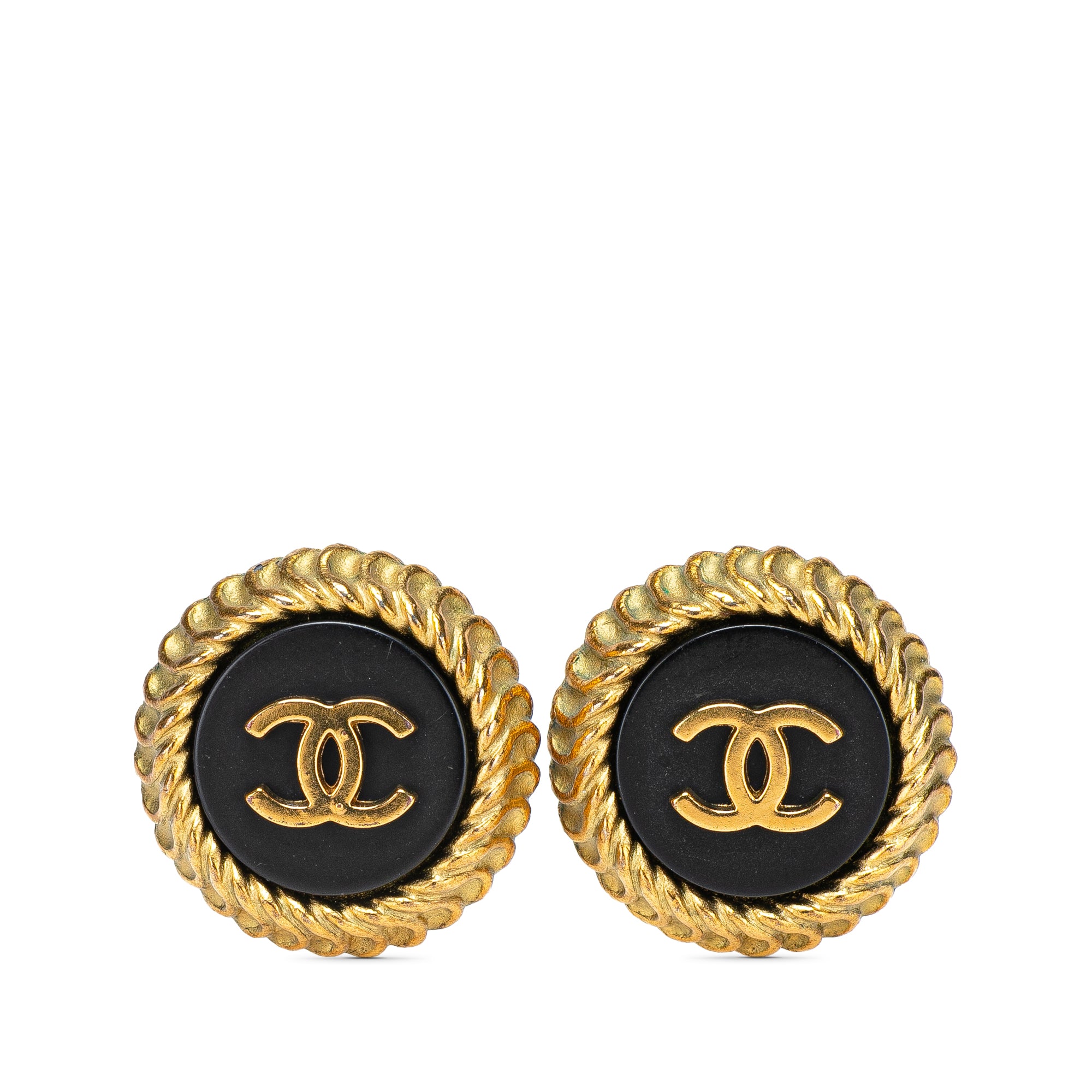 Chanel CC Gold Plated Resin Button Clip on Earrings