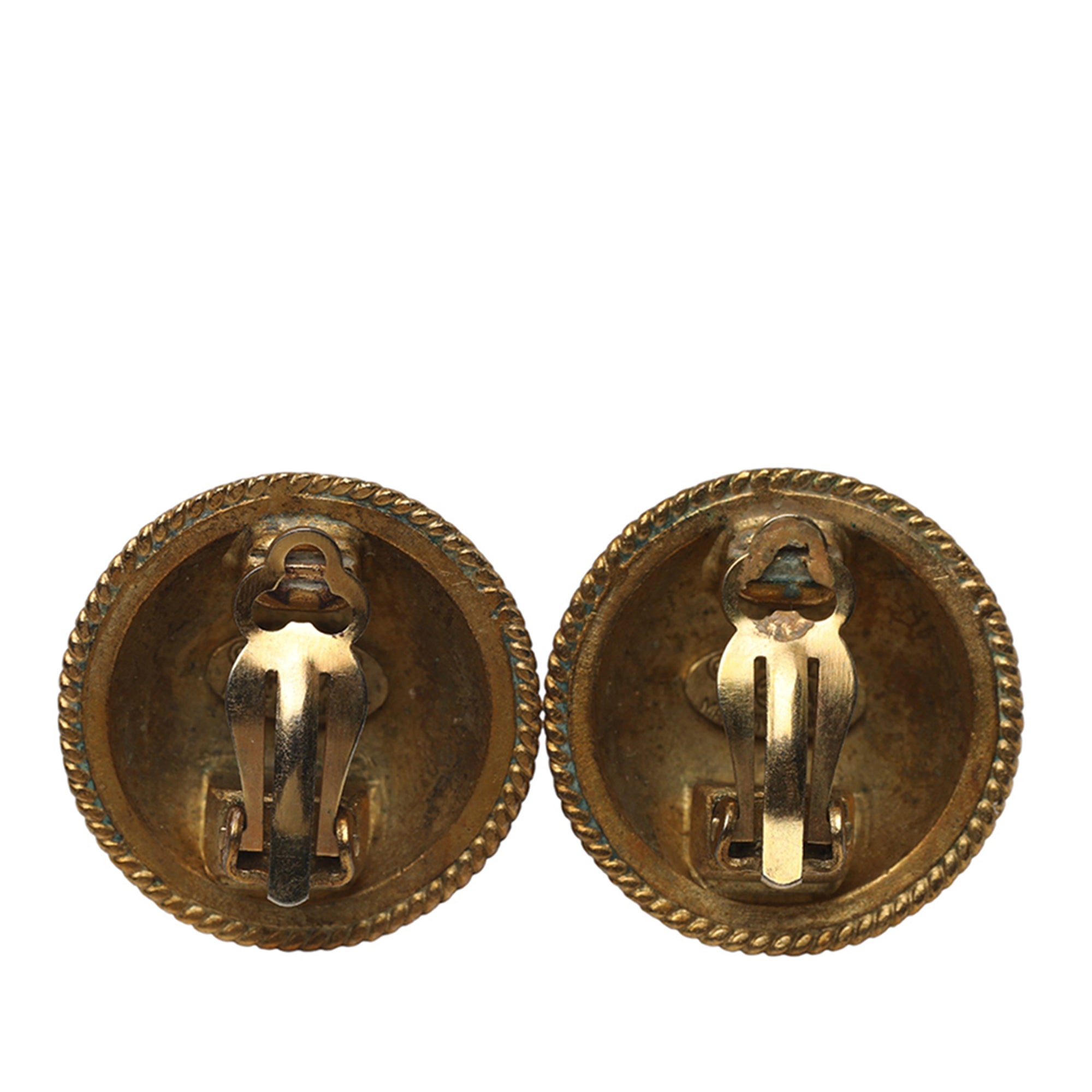 Chanel CC Gold Plated Round Button Clip on Earrings