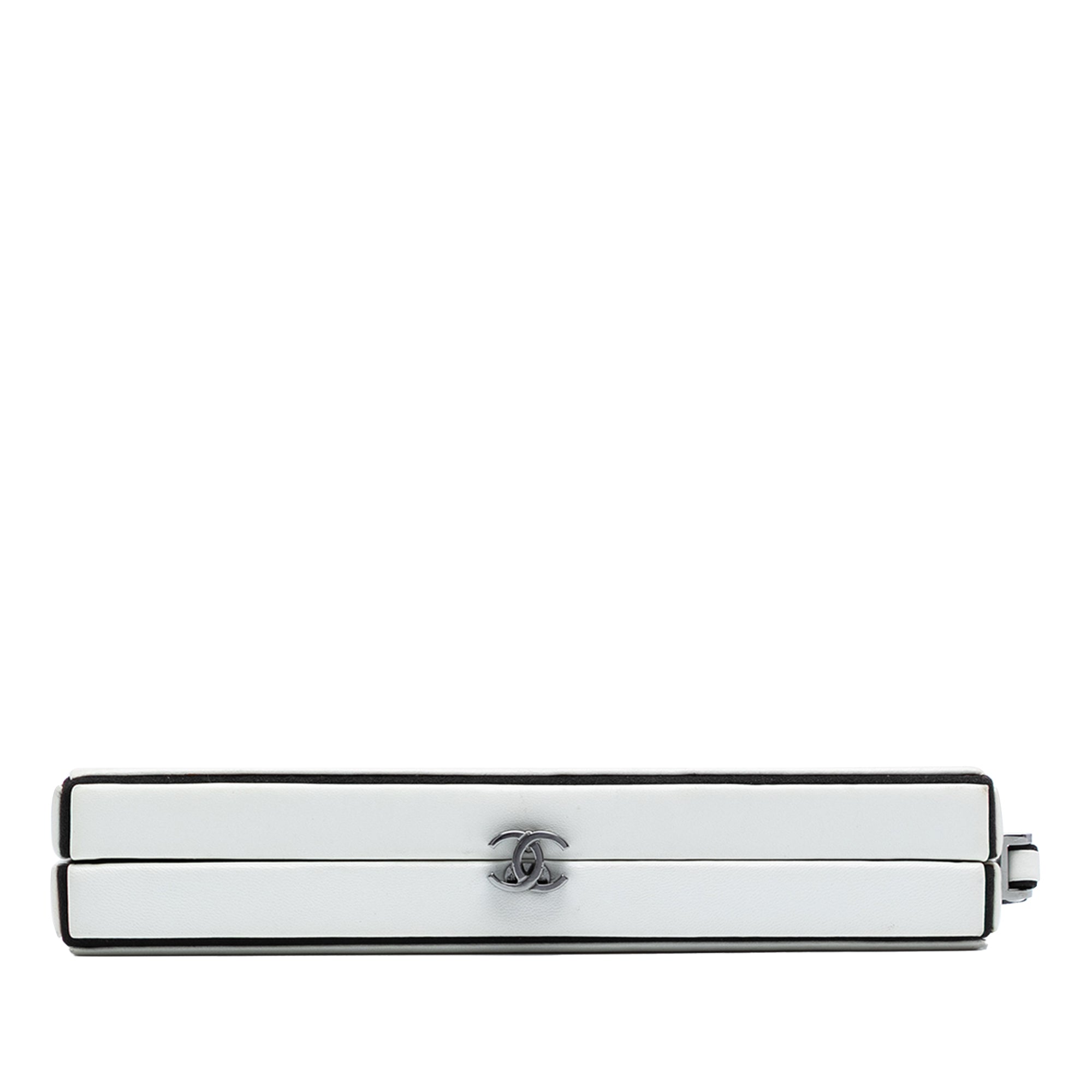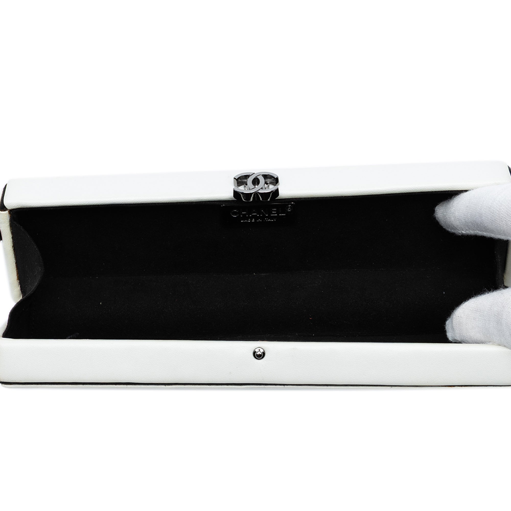 This clutch features a lambskin leather body, a flat wrist strap, and a top clasp closure. Inclusion: authenticity card. Retail Price: 1450.00