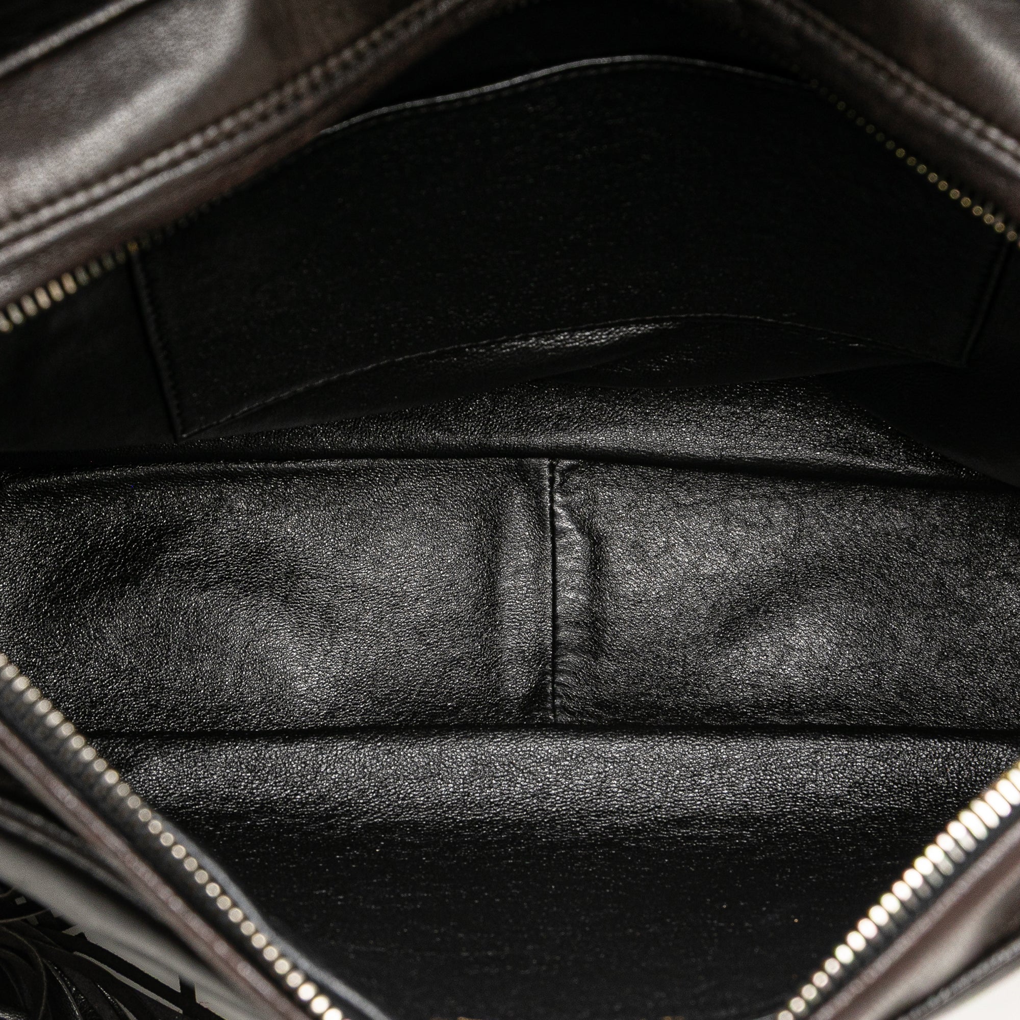 This crossbody bag features a quilted lambskin leather body, a flat leather shoulder strap, a tassel detail, a top zip closure, an exterior front flap pocket, and interior zip and slip pockets. Retail Price: 2900.00