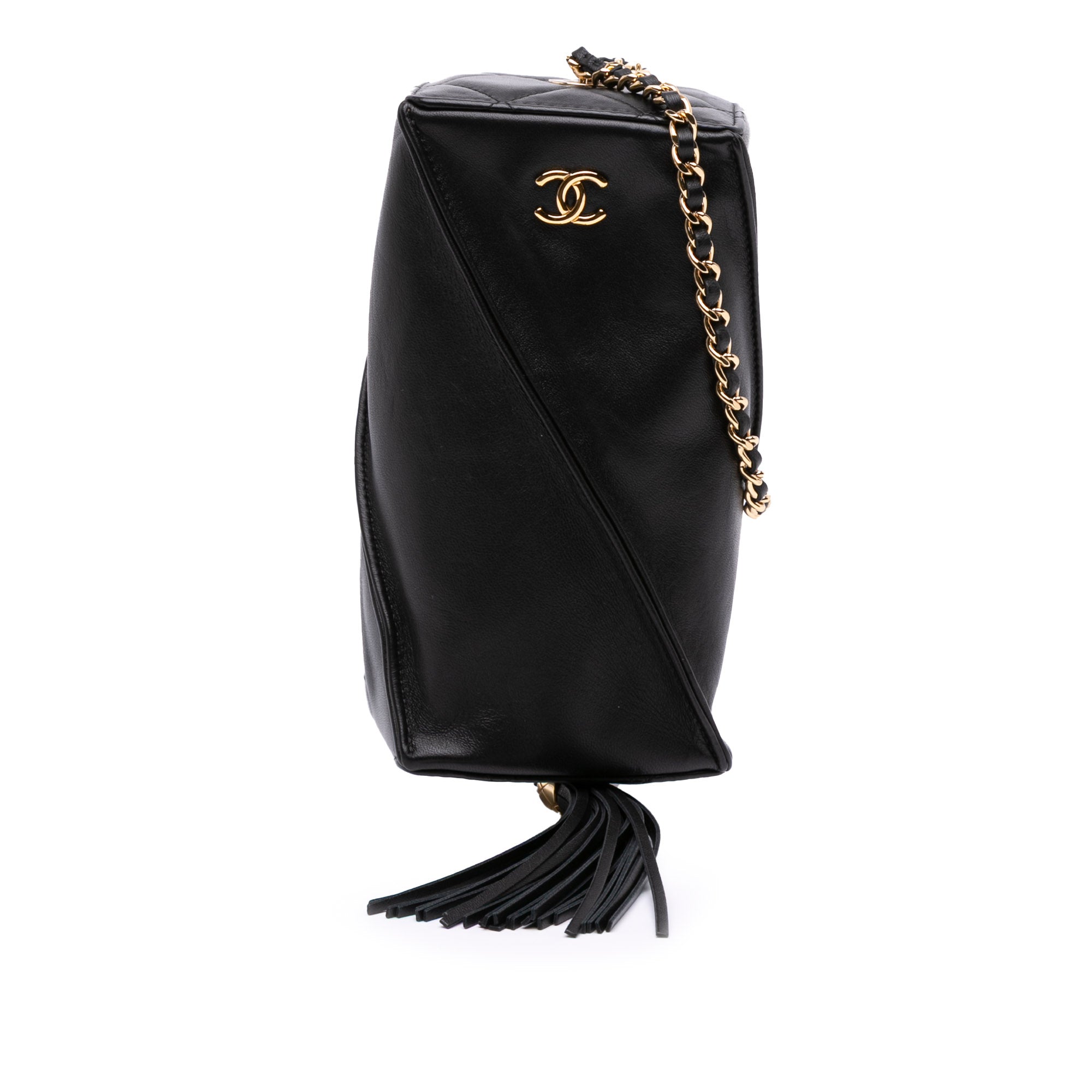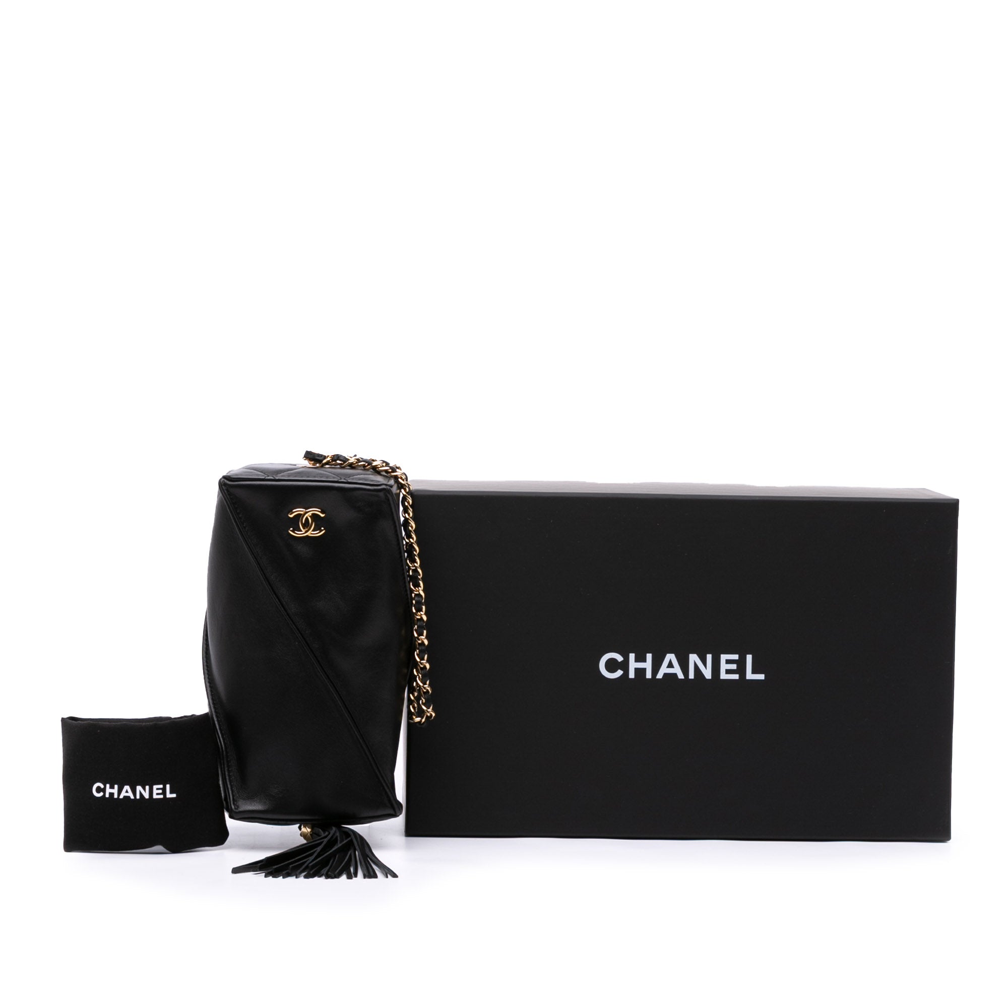 This clutch bag features a lambskin leather body with tassel, a leather-woven chain strap, and back zip closure. Inclusion: Dust bag, box. Retail Price: 4765.00