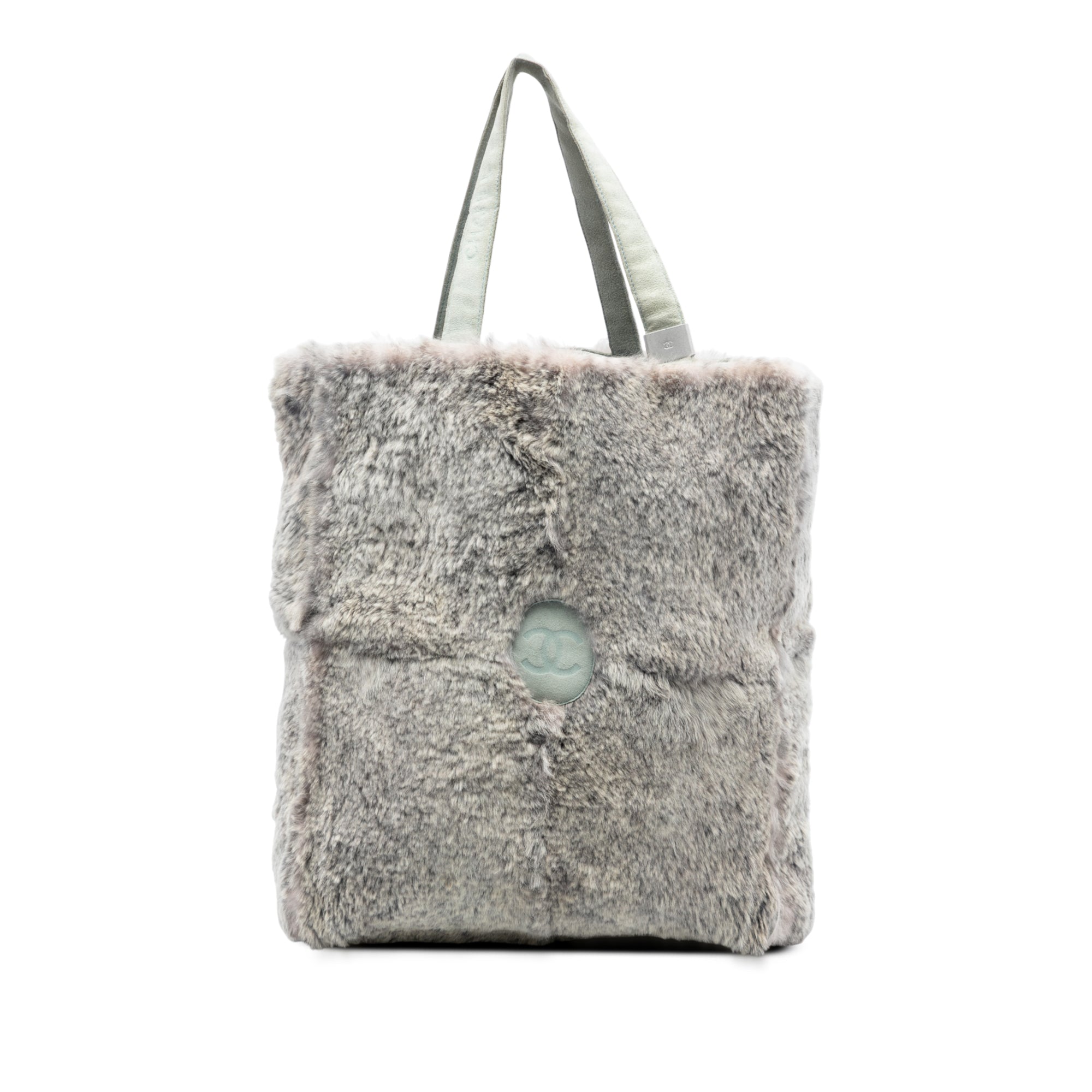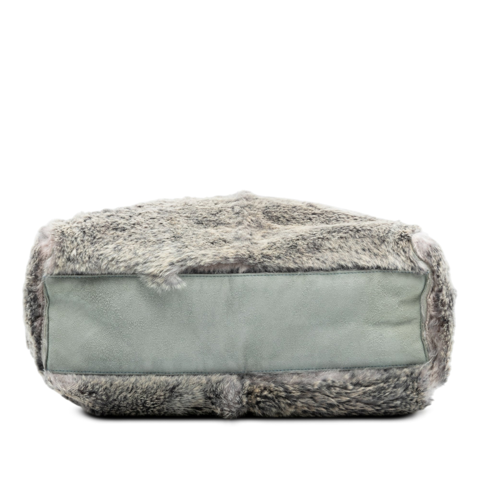 This tote bag features a rabbit fur body, flat suede leather handles, an open top, and an interior zip pocket. Retail Price: 1495.00