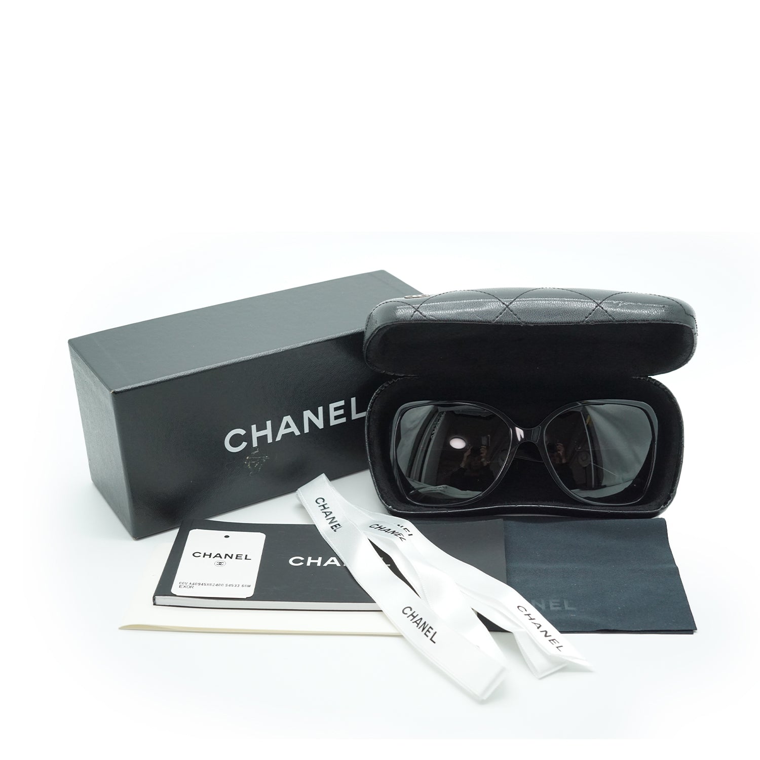 CC Logo Black Frame Sunglasses Black PlasticDepth: 15cmHeight: 2.5cmWidth: 14.5cmDiscoloration: Slight tarnish on the inside of the frameSticky: Slight stickiness on the frameInclude: Glasses case, box, lens cleaning cloth, dust coverSerial code: 13453C
