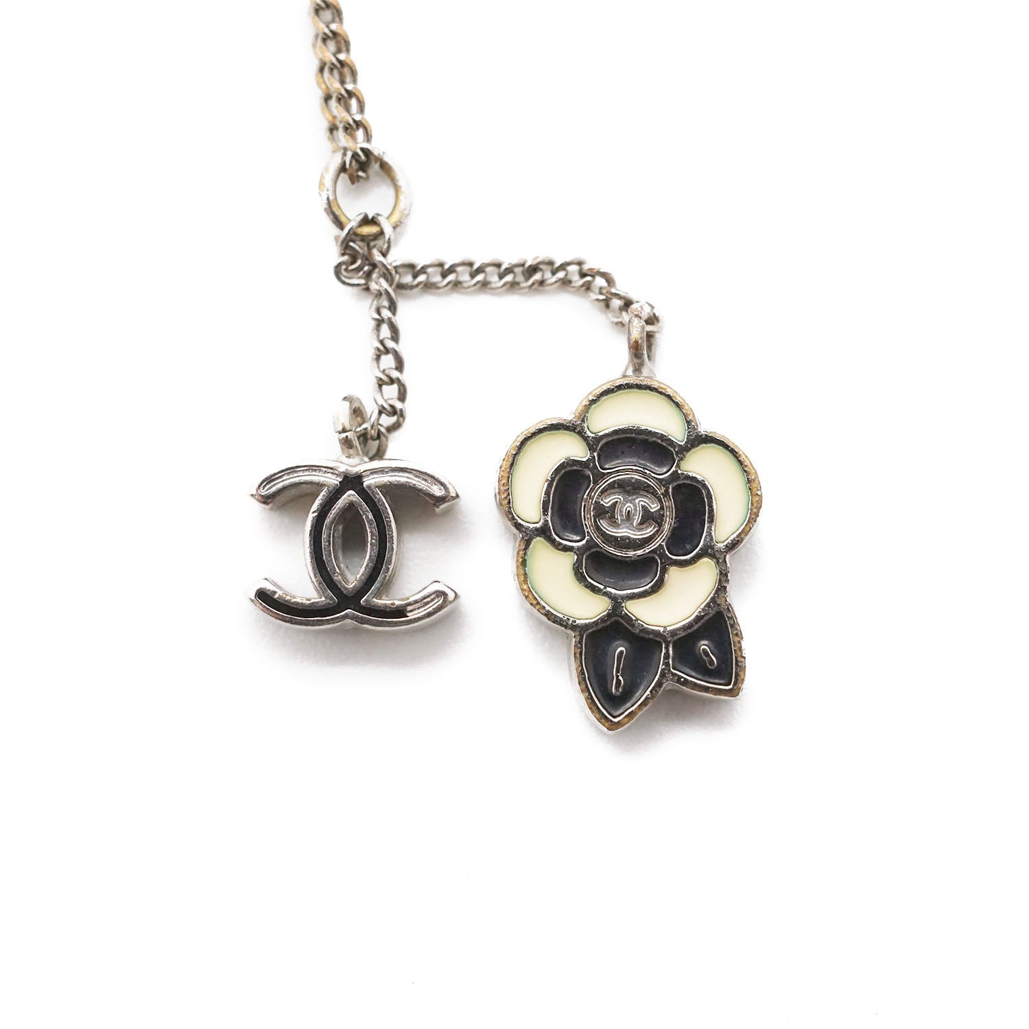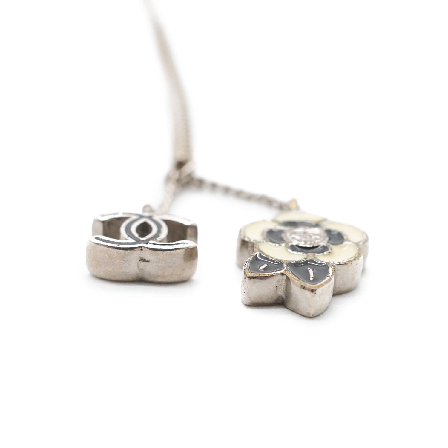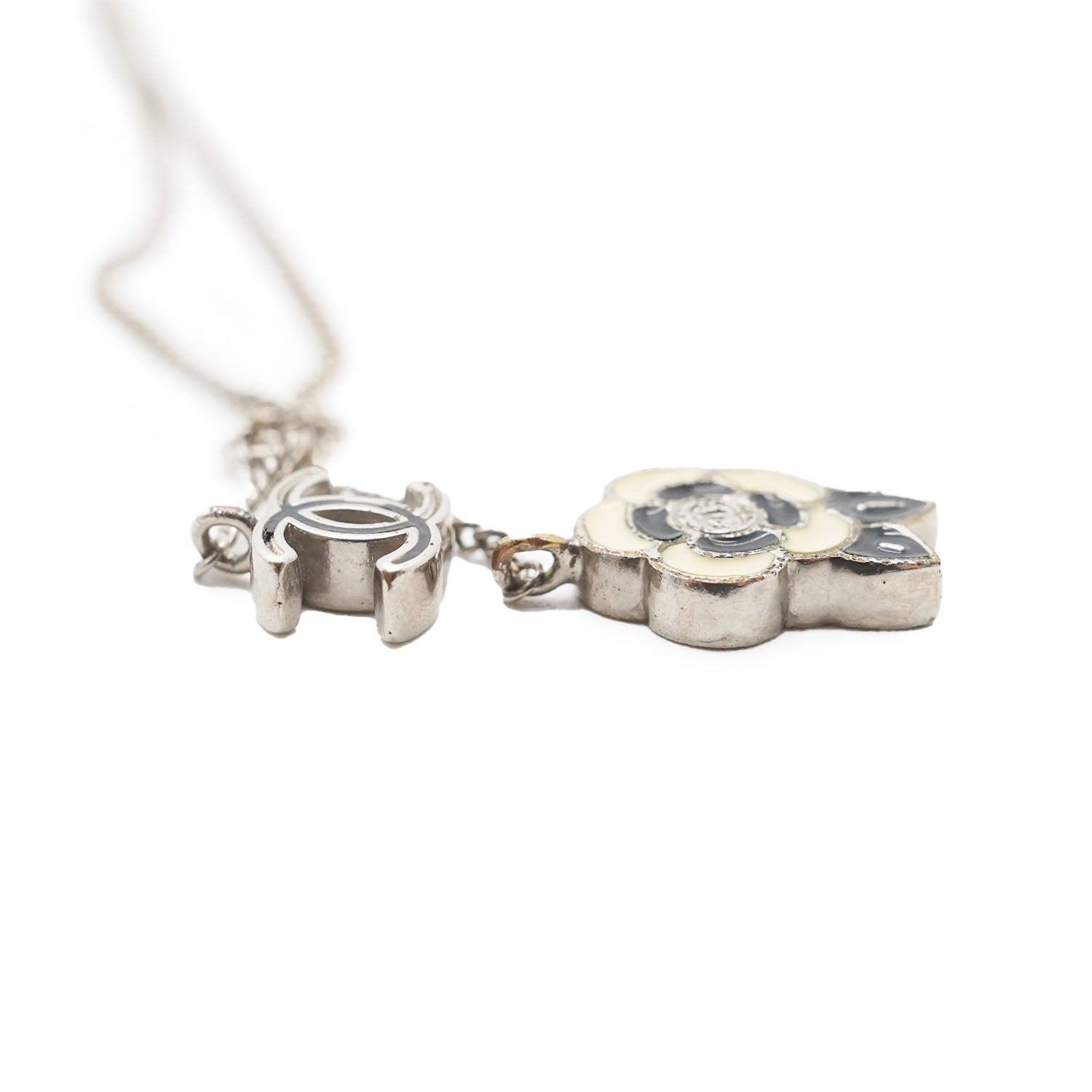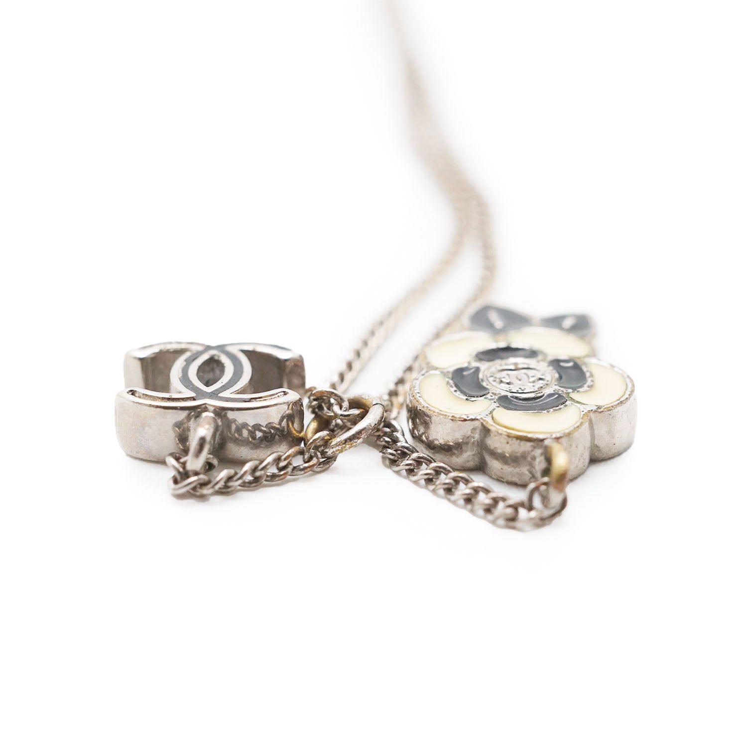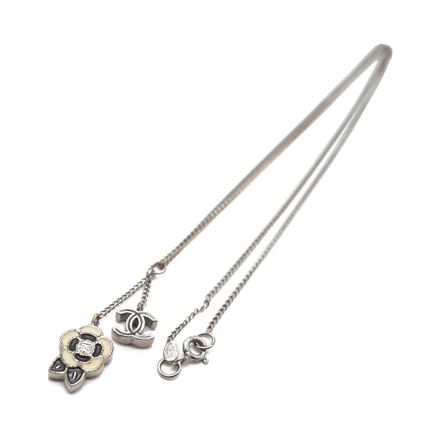 CC Logo Camellia Pendant Necklace Silver MetalDepth: 0.2cmHeight: 22cmWidth: 1cmDiscoloration: Some tarnish overallSerial code: 05P
