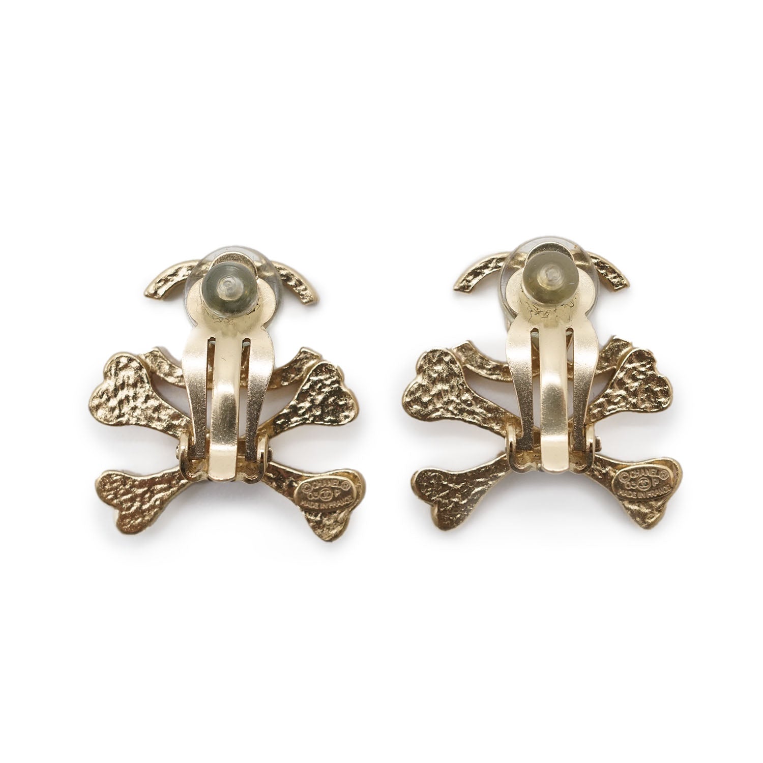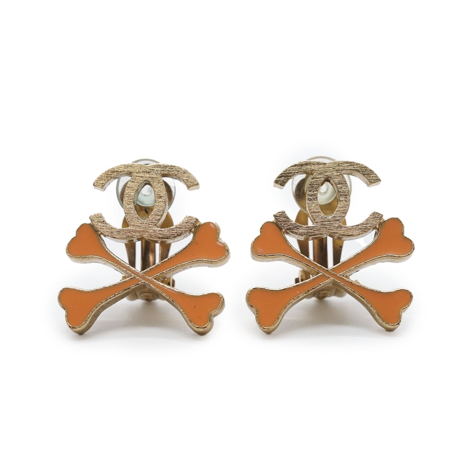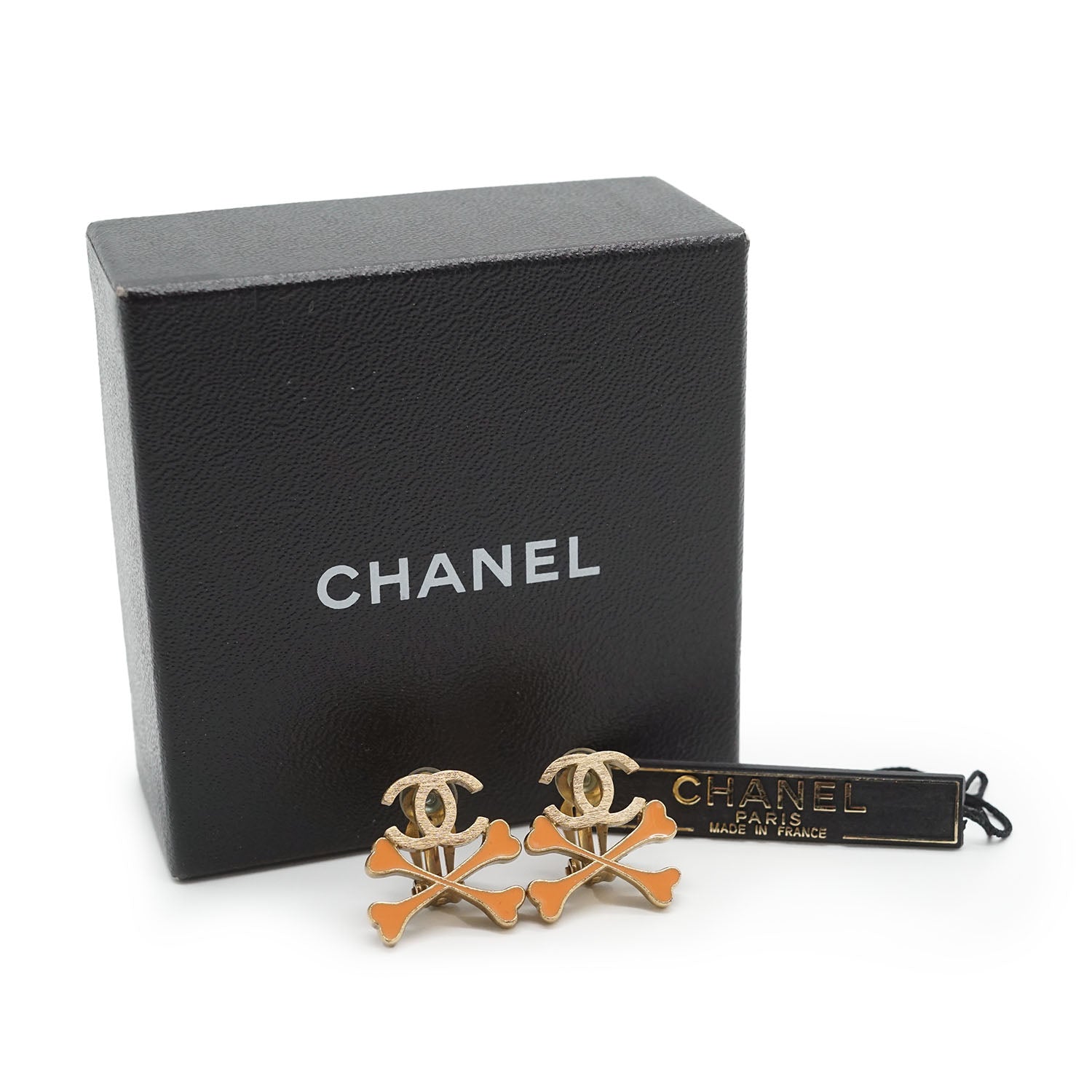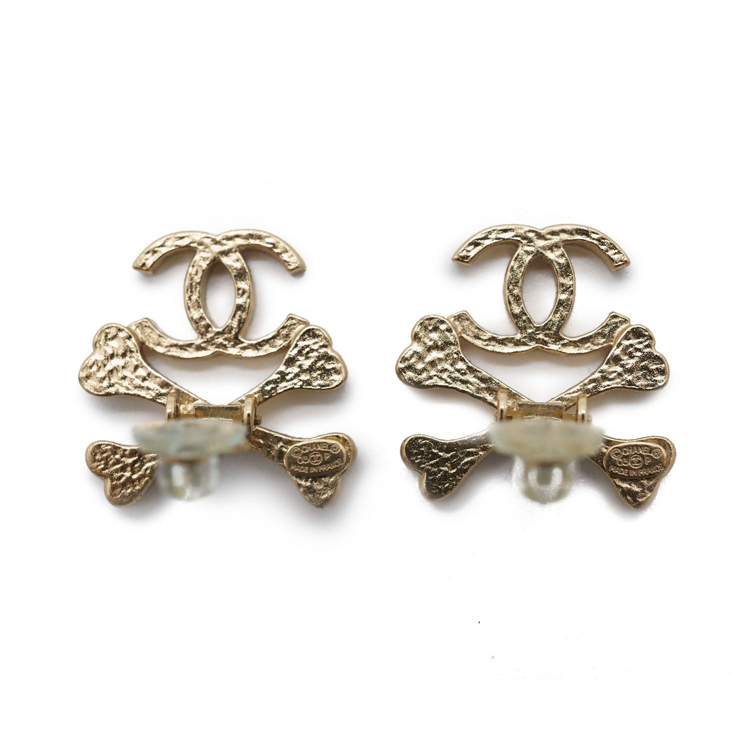 CC Logo Crossbone Clip-On Earrings Gold BrassDepth: 0.2cmHeight: 1.9cmWidth: 1.9cmBDiscoloration: Slight tarnish on the back of both earringsInclude: Jewelry boxSerial code: 03P