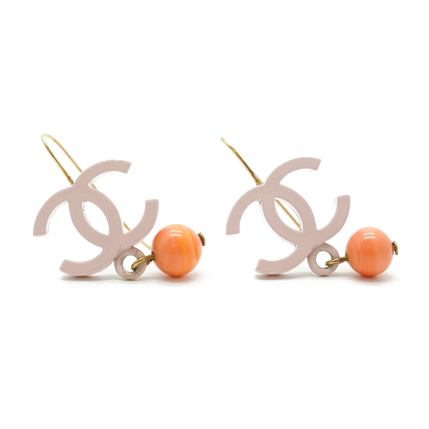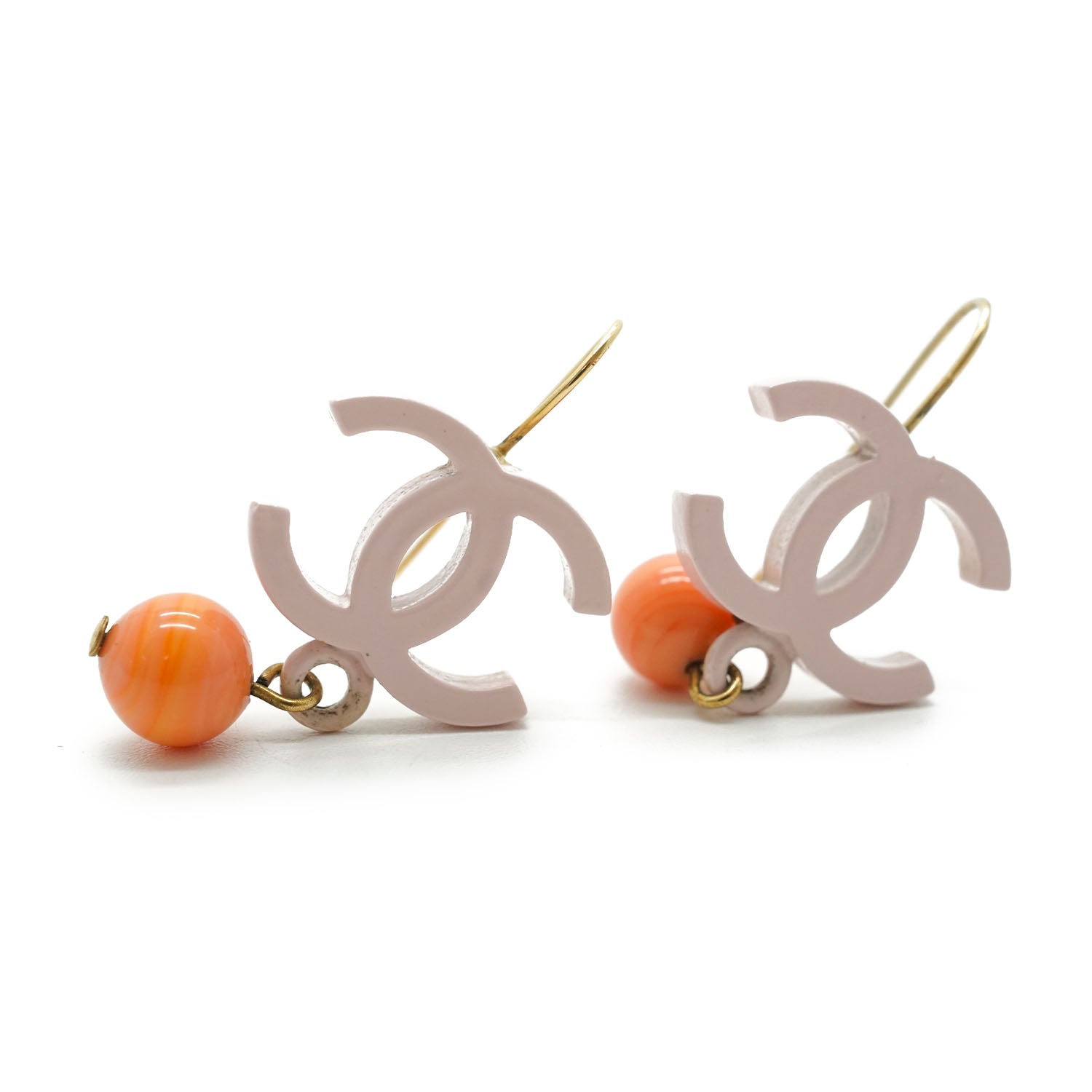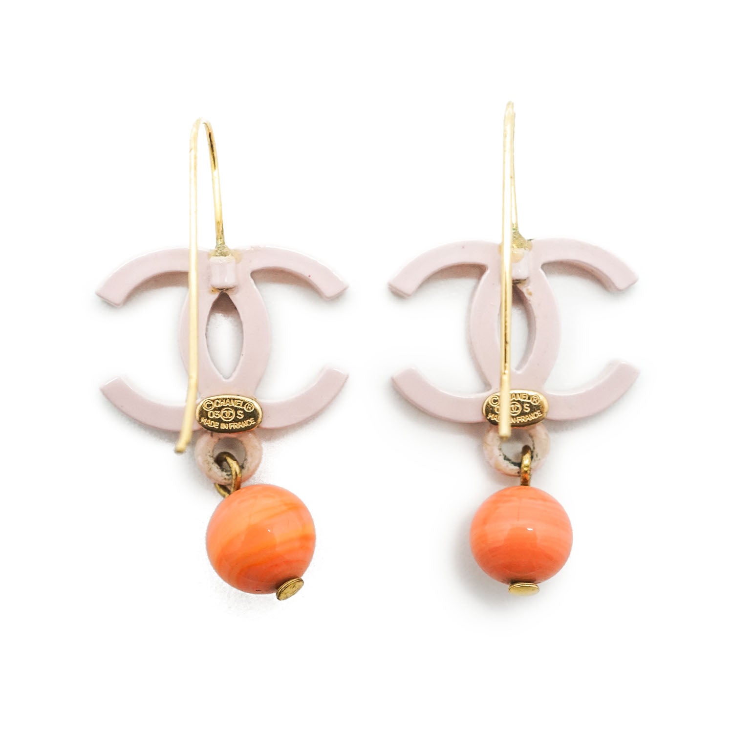 CC Logo Drop Earrings Pink Brass, ResinDepth: 0.2cmHeight: 3.2cmWidth: 1.6cmBDiscoloration: Slight tarnish on the drop partSerial code: 03S