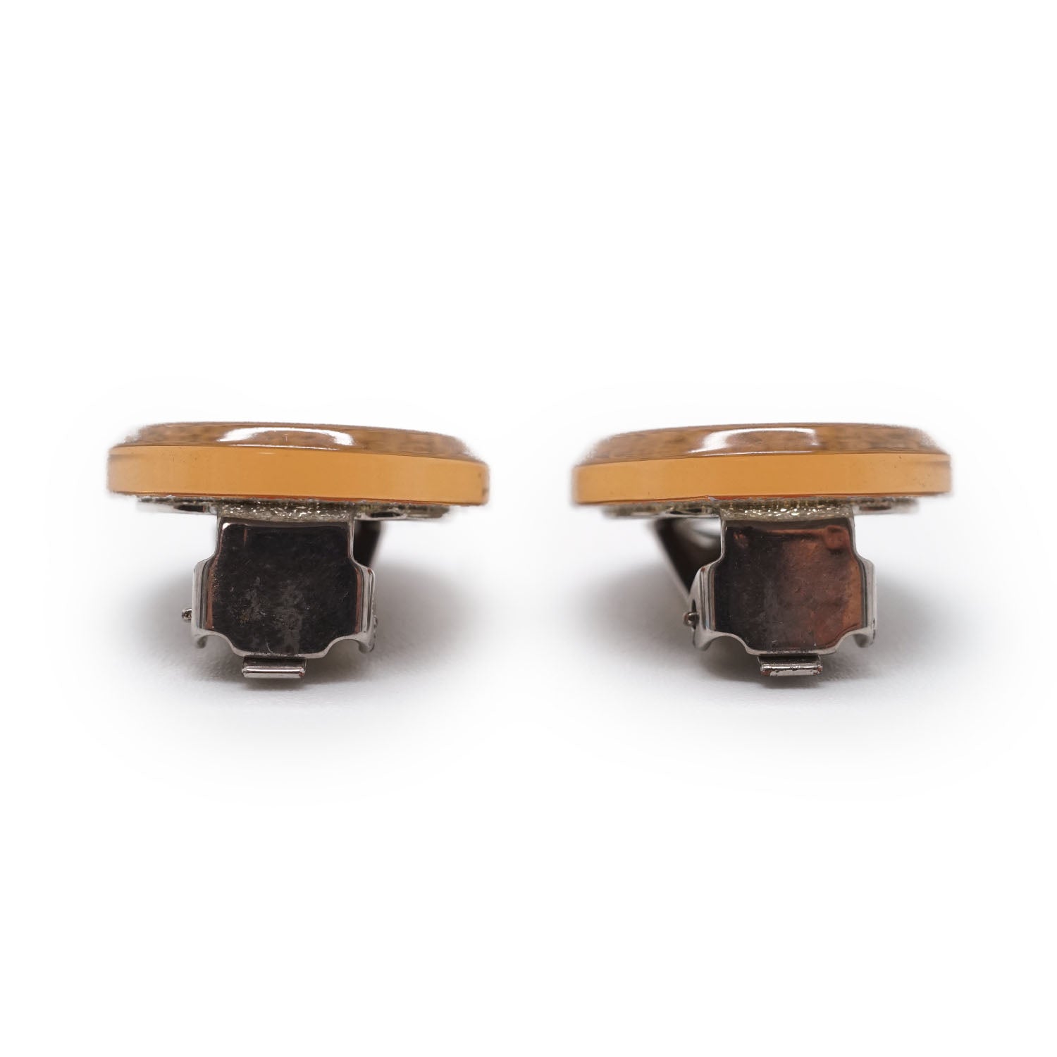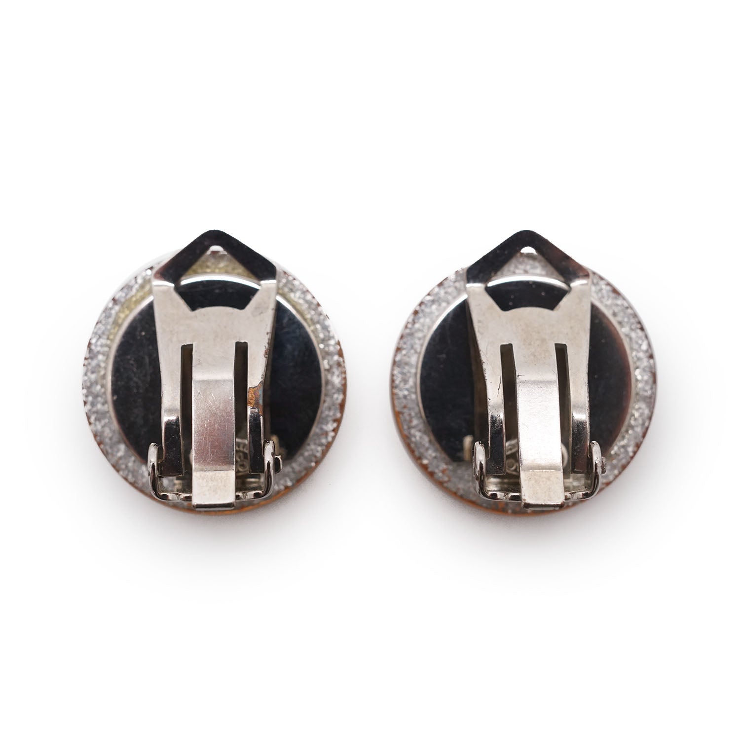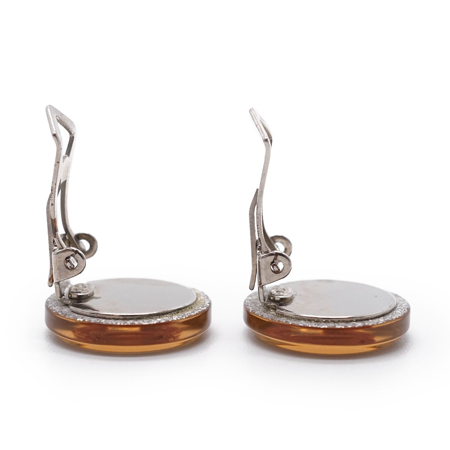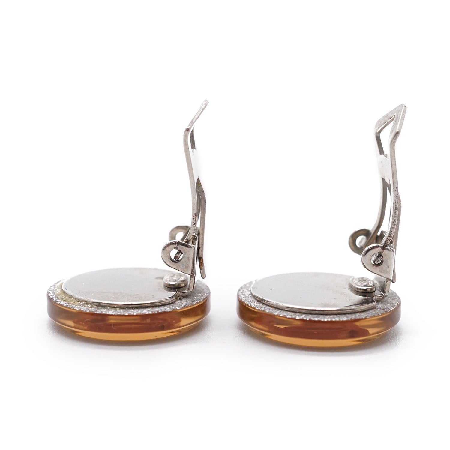 CC Logo Glitter Round Clip-On Earrings Champagne Brass, ResinDepth: 0.3cmHeight: 1.6cmWidth: 1.7cmDiscoloration: Slight tarnish on the back of both earringsScratch: Some scratches on the clasp of one earringSerial code: 00A