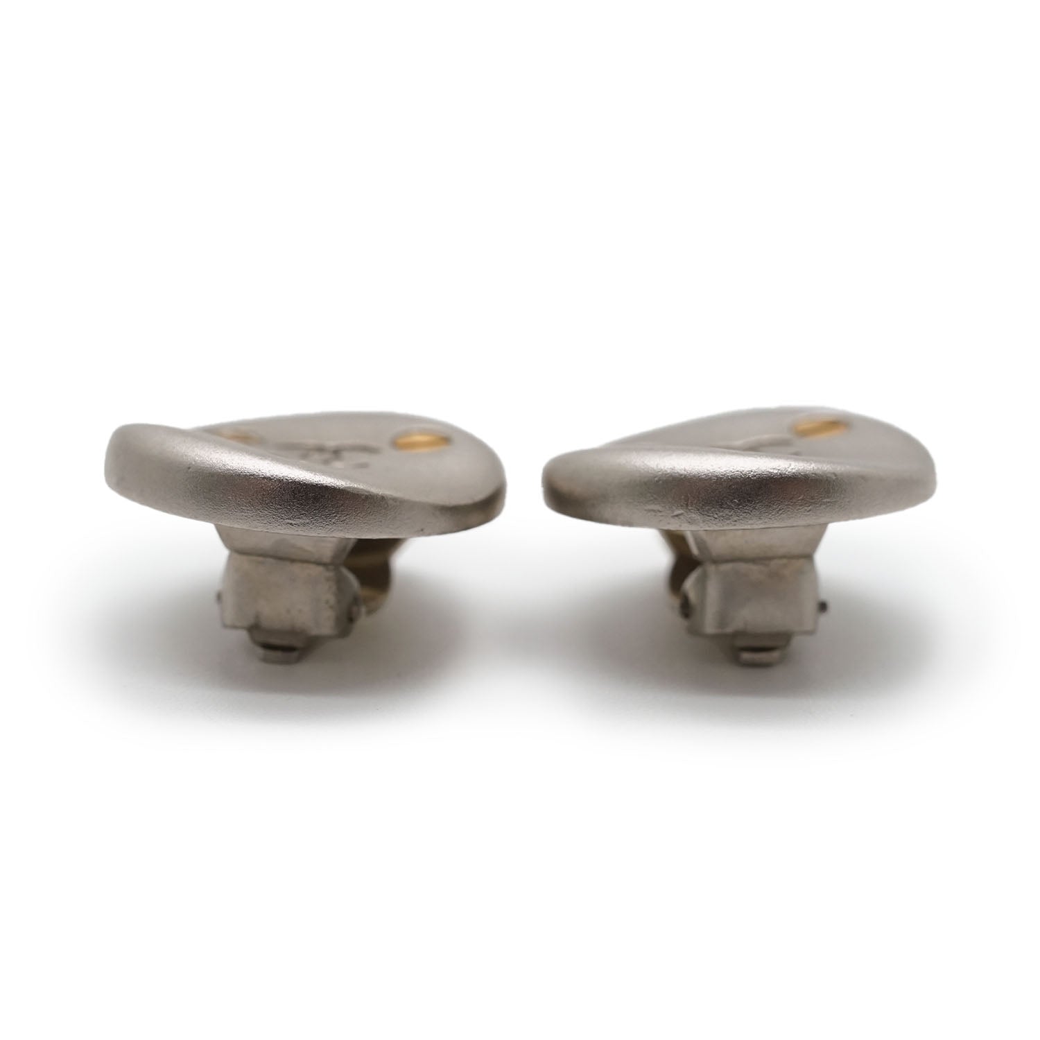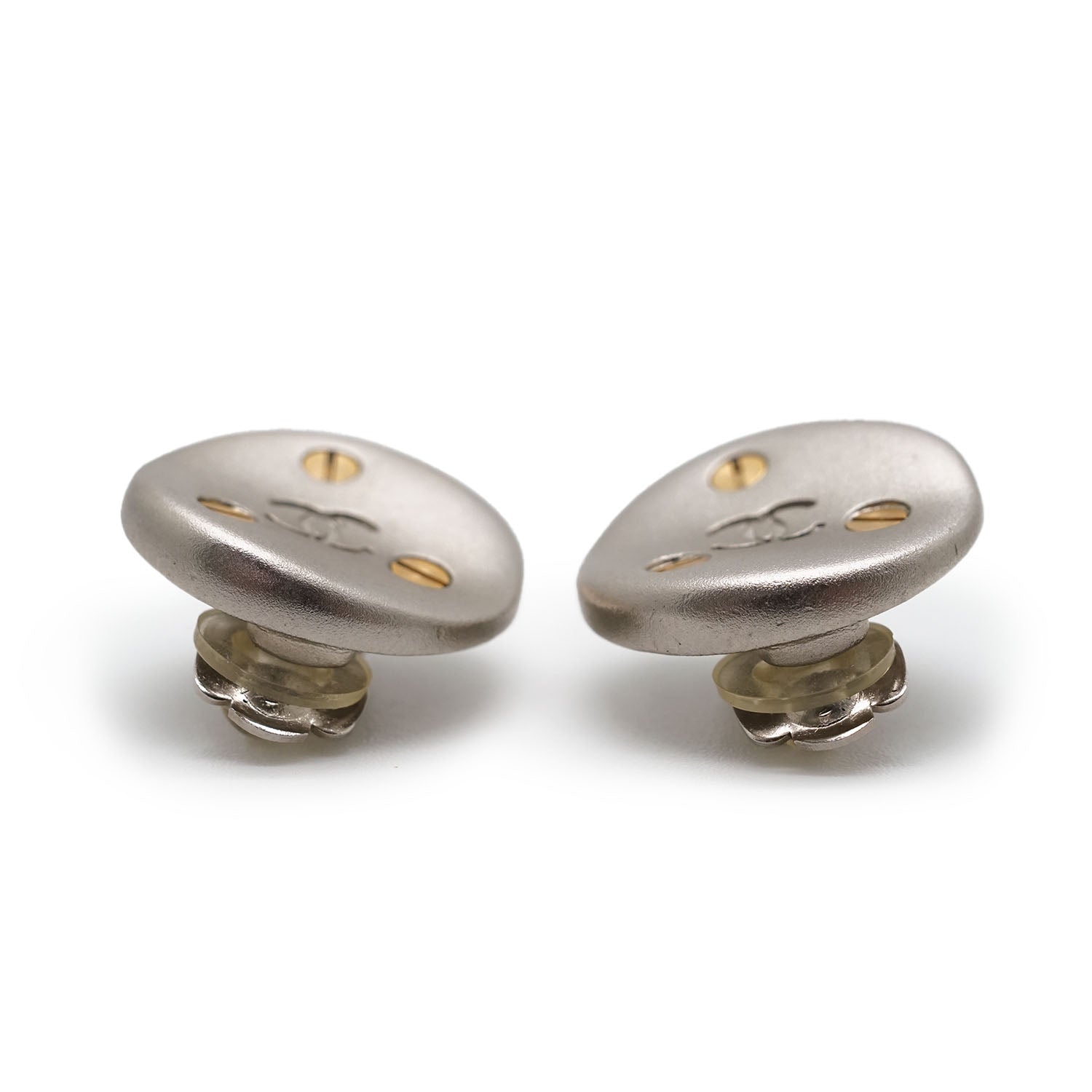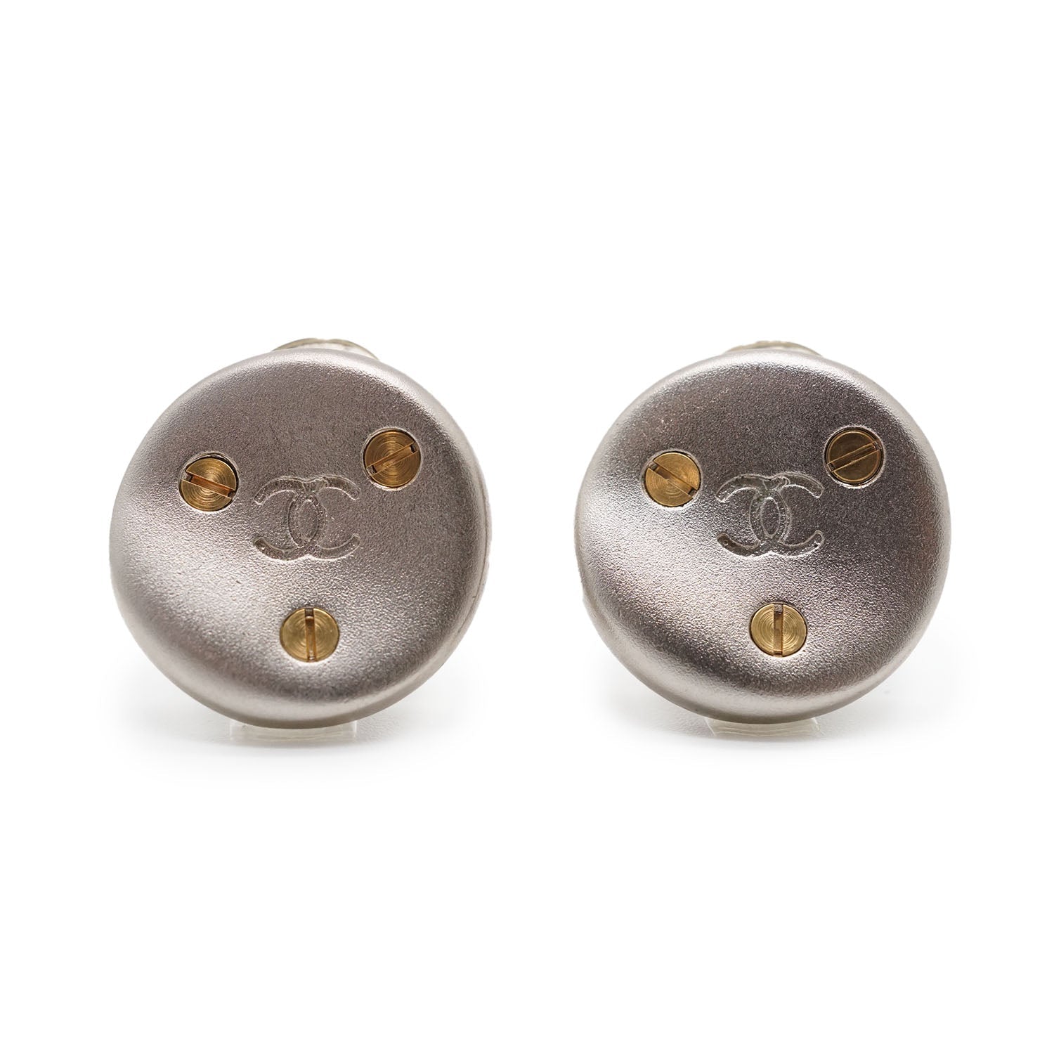 Chanel CC Logo Screw Design Silver Gold Button Clip Earrings