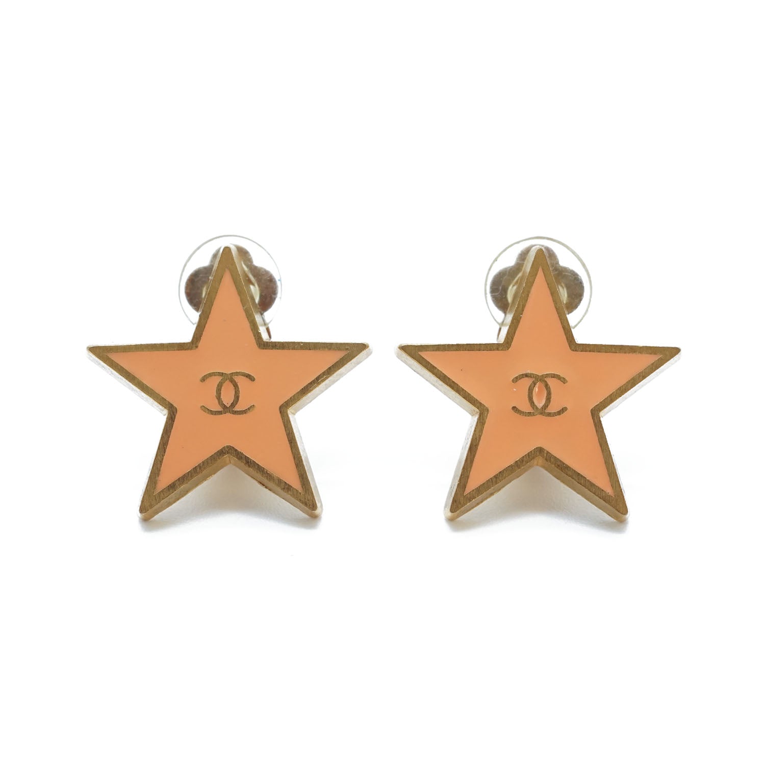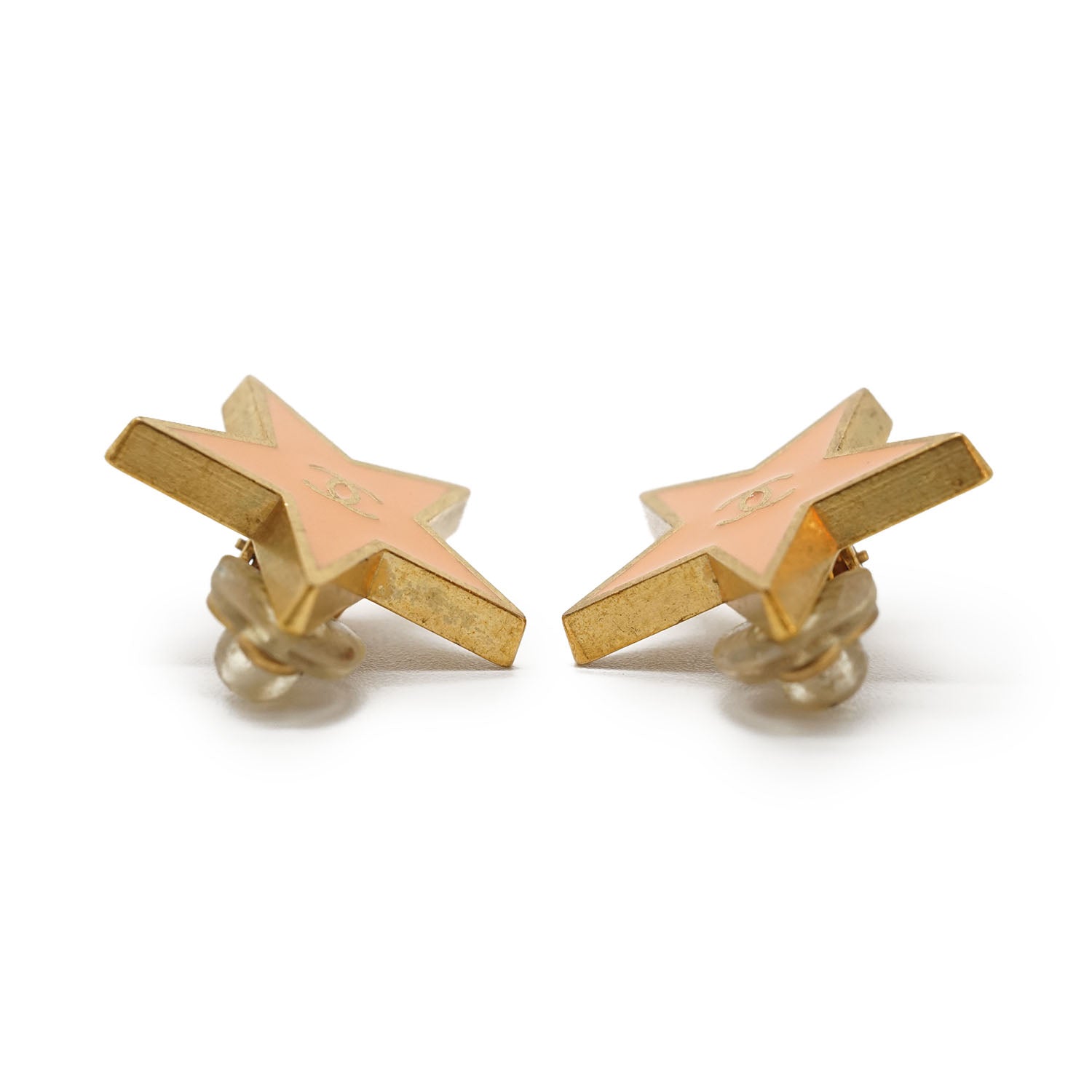 CC Logo Star Clip-On Earrings GP Salmon pink BrassDepth: 0.2cmHeight: 2cmWidth: 2.1cmDiscoloration: Some tarnish on the back of both earringsSerial code: 01P