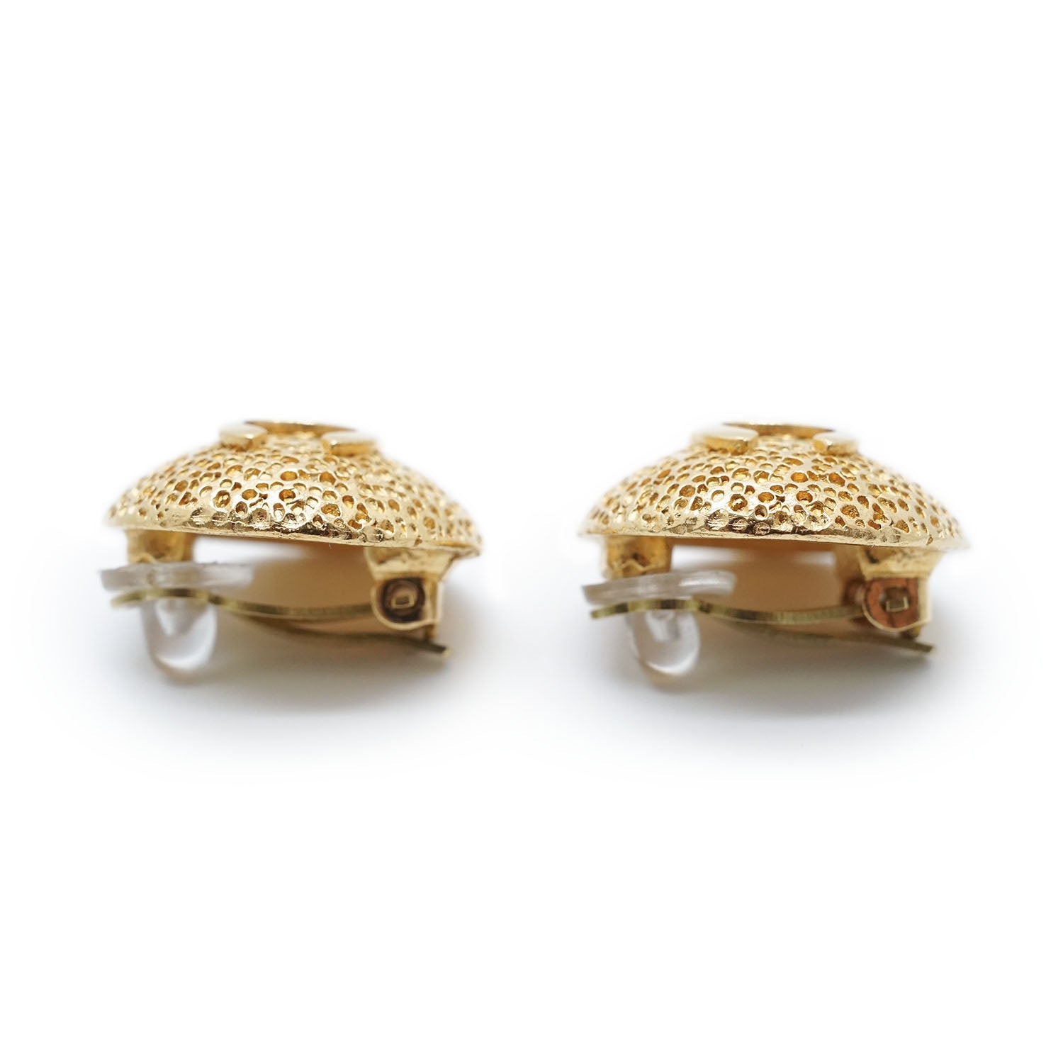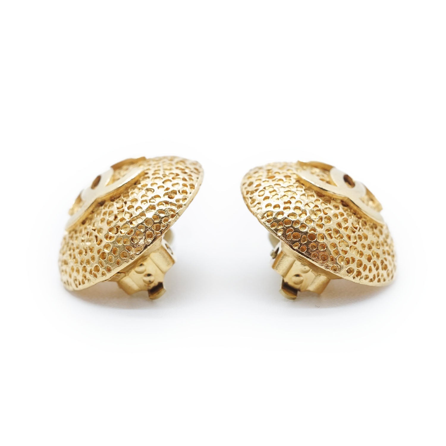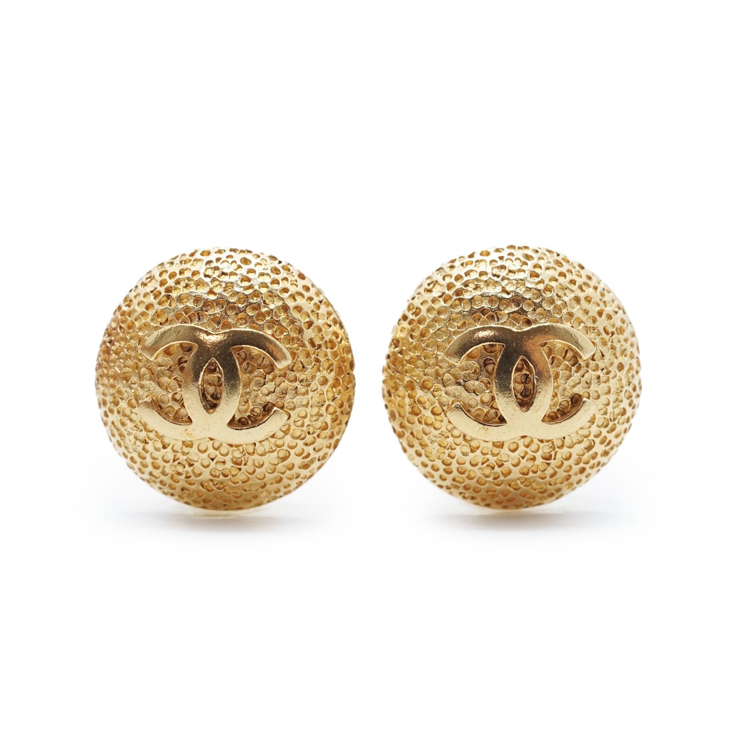 CC Logo Textured Dome Round Clip-On Earrings GP Gold BrassDepth: 0.7cmHeight: 1.7cmWidth: 1.7cmDiscoloration: Slight tarnish on the back of both earringsComments: One clip pad is slightly damagedSerial code: 95A