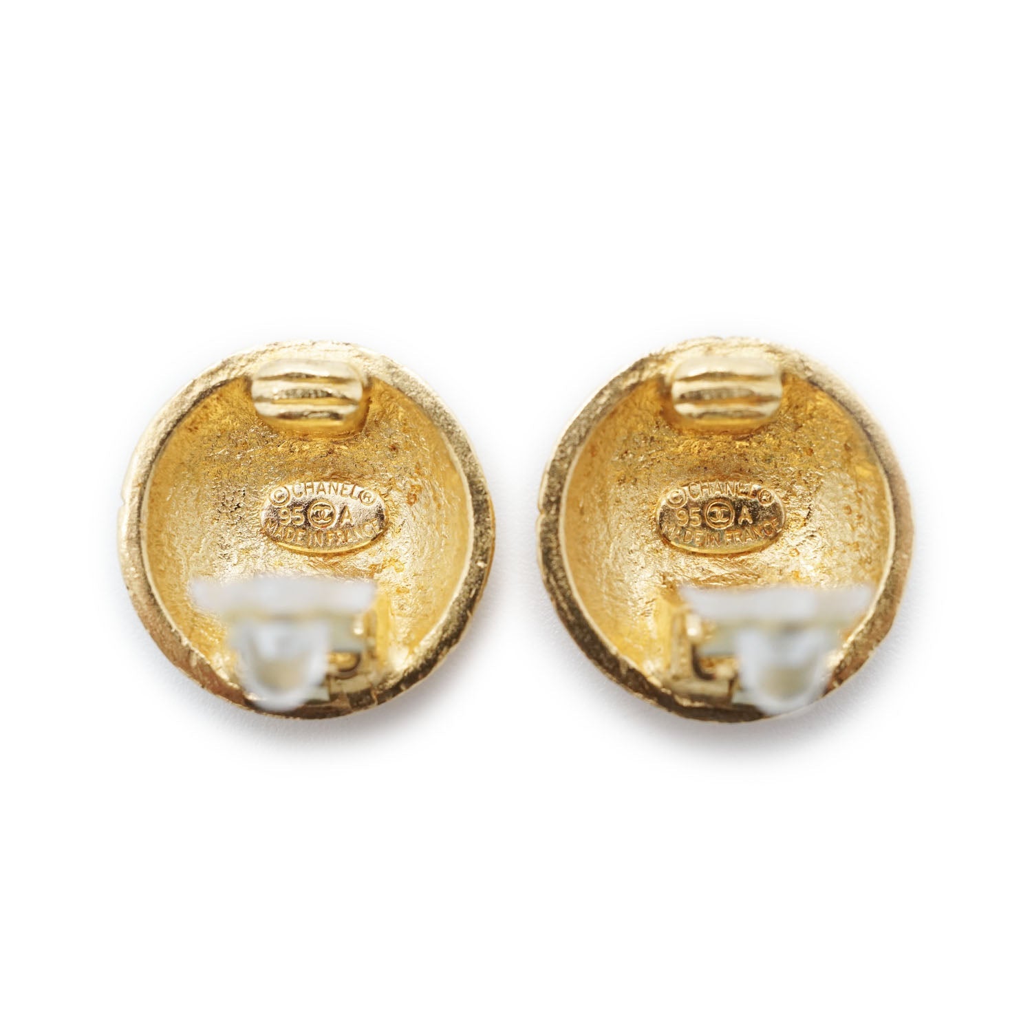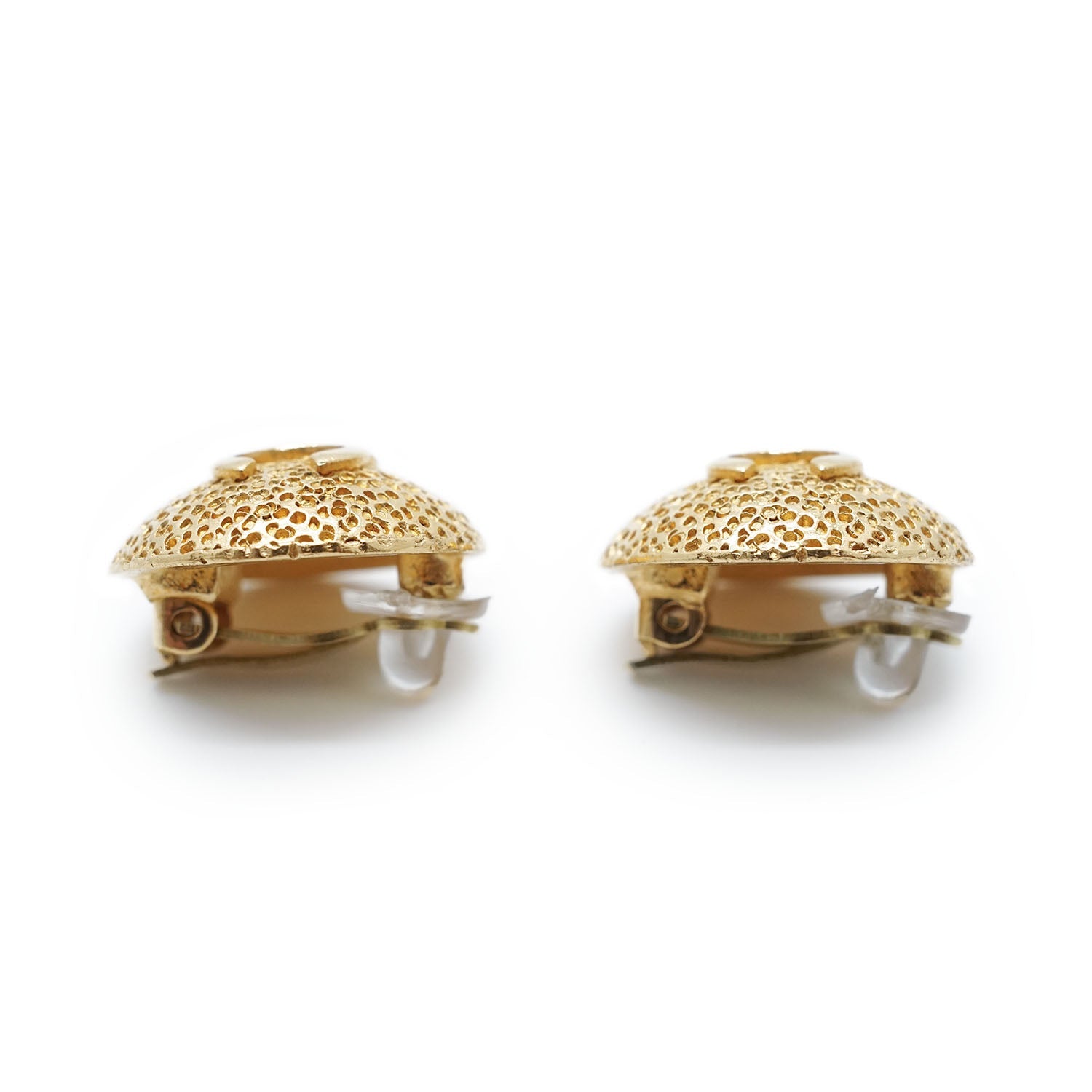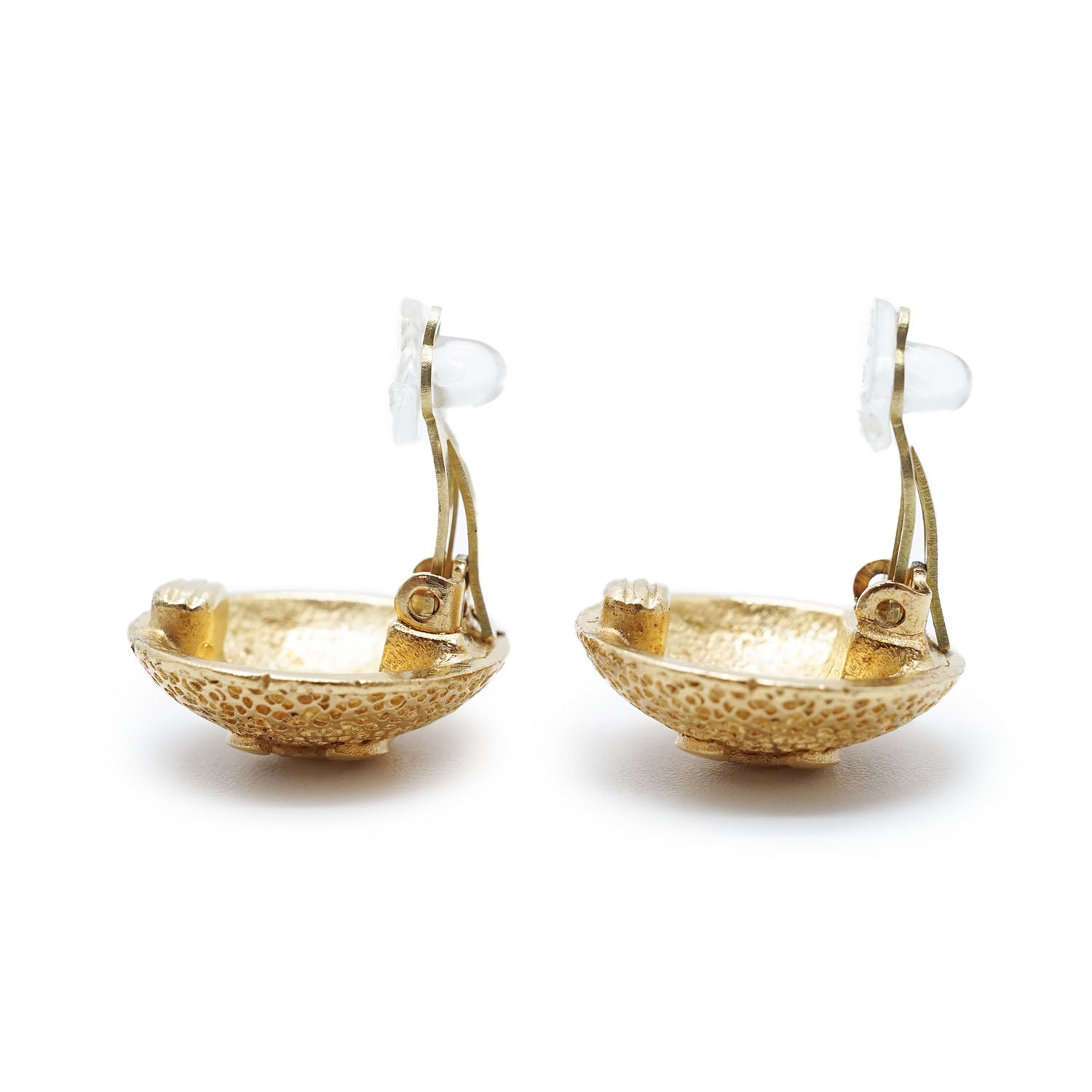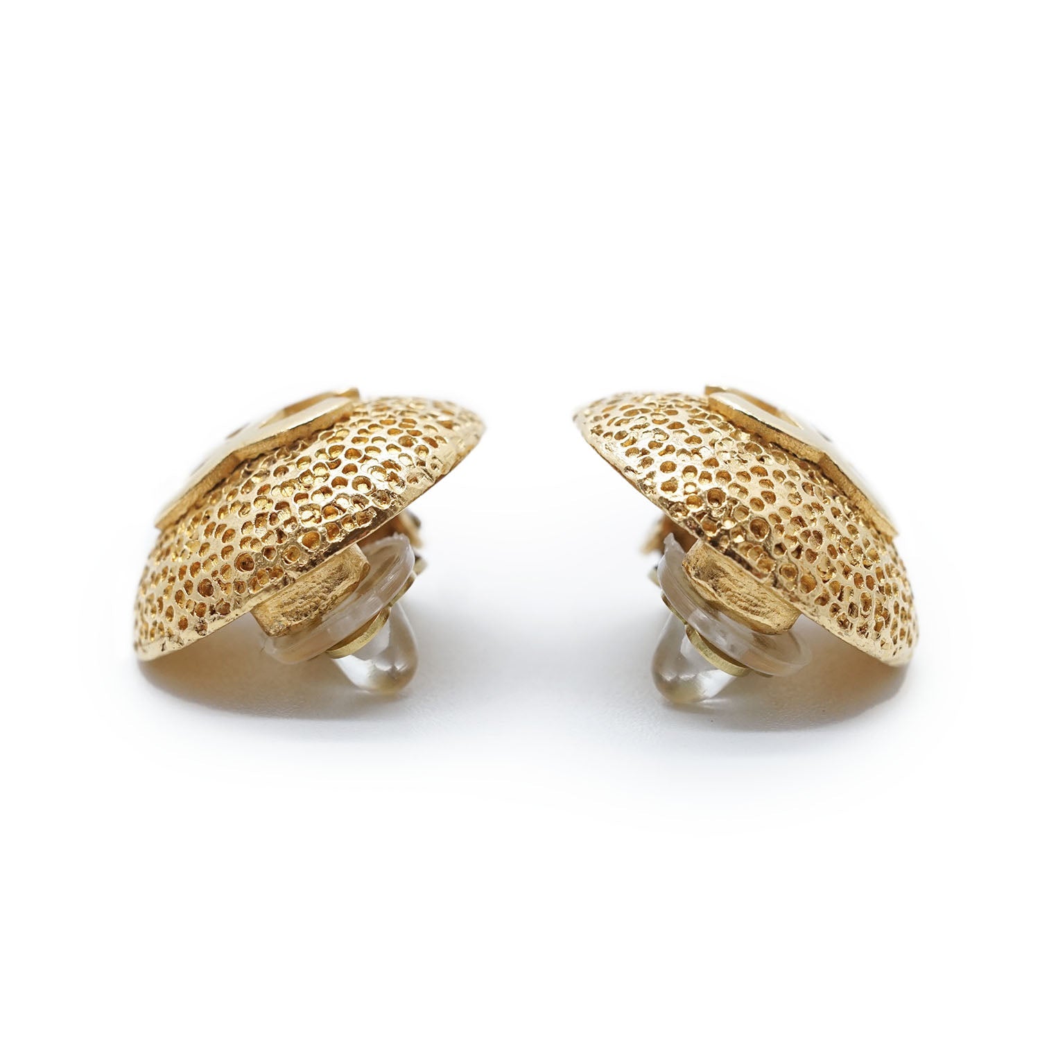CC Logo Textured Dome Round Clip-On Earrings GP Gold BrassDepth: 0.7cmHeight: 1.7cmWidth: 1.7cmDiscoloration: Slight tarnish on the back of both earringsComments: One clip pad is slightly damagedSerial code: 95A
