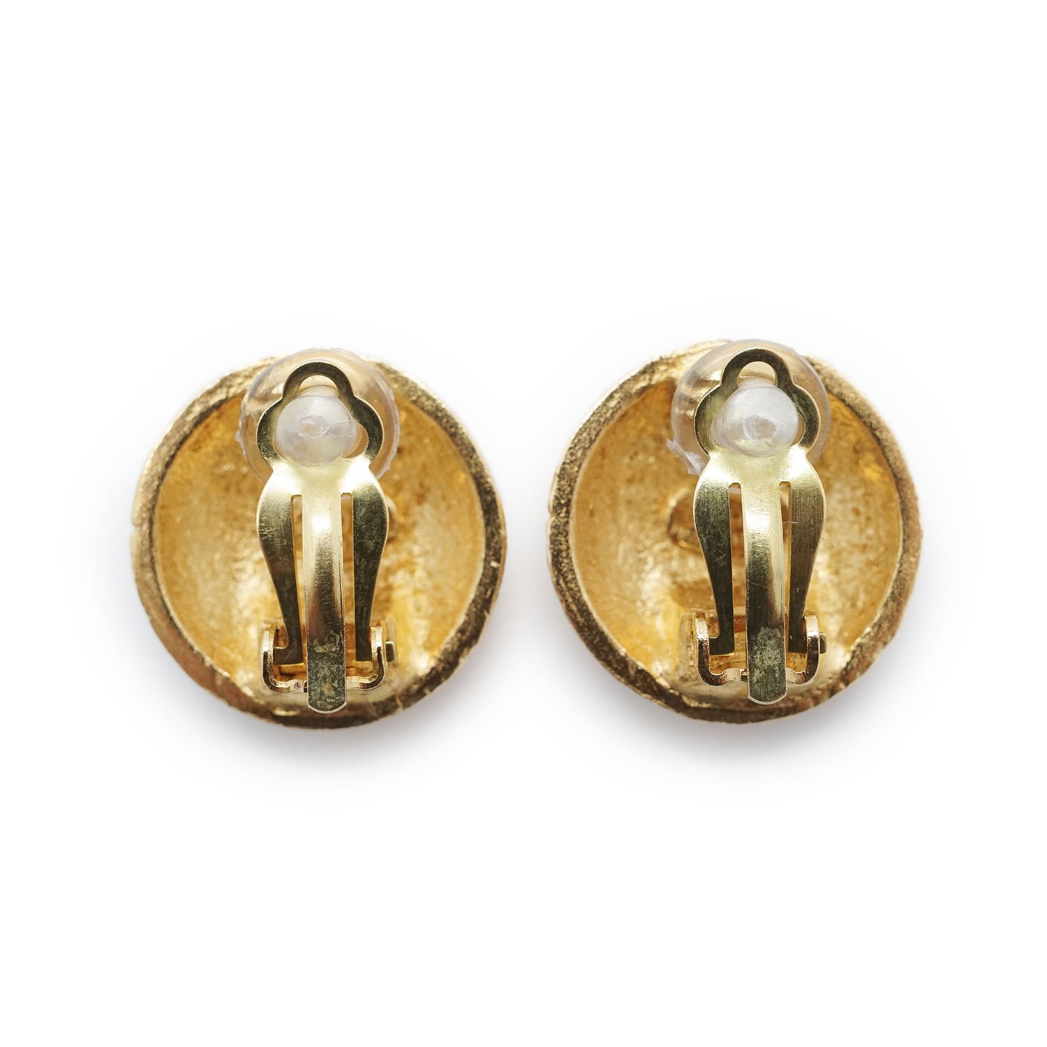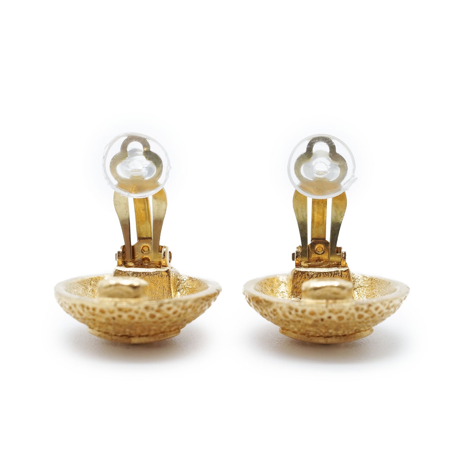 Chanel CC Logo Textured Dome Round Clip-On Earrings GP