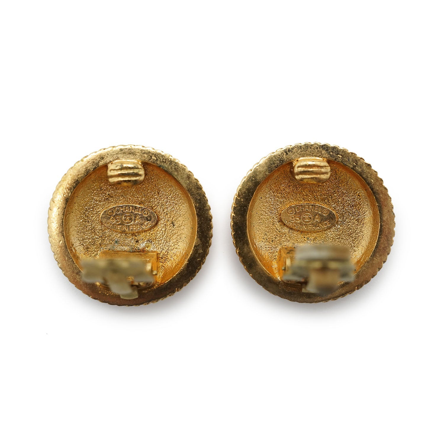 CC Logo Twisted Rope Round Clip-On Earrings GP Gold BrassDepth: 0.6cmHeight: 2.3cmWidth: 2.3cmDiscoloration: Some tarnish on the back of both earringsScratch: Slight scratch on one CC logoMissing: One clip pad is missingSerial code: 95A