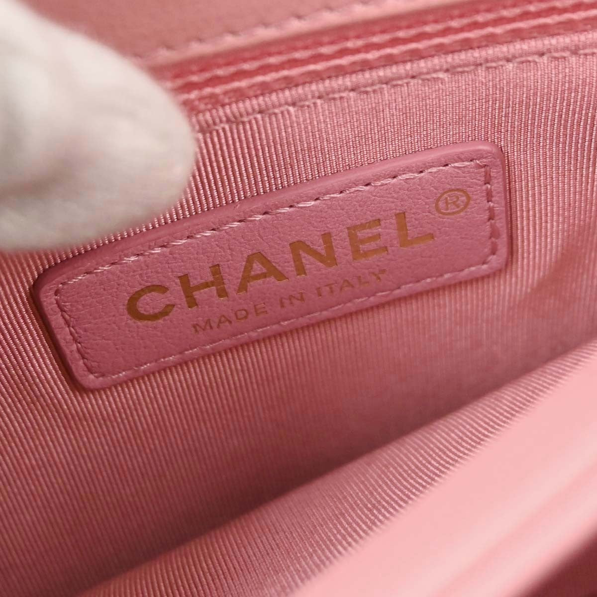 Brand : Chanel Model : CC Metal Top Handle Flap Bag Style : Chevron Calfskin Serial number : 29820270 Inclusions : Serial Sticker, Authenticity Card, Dust Bag, Care Manual, Cloth