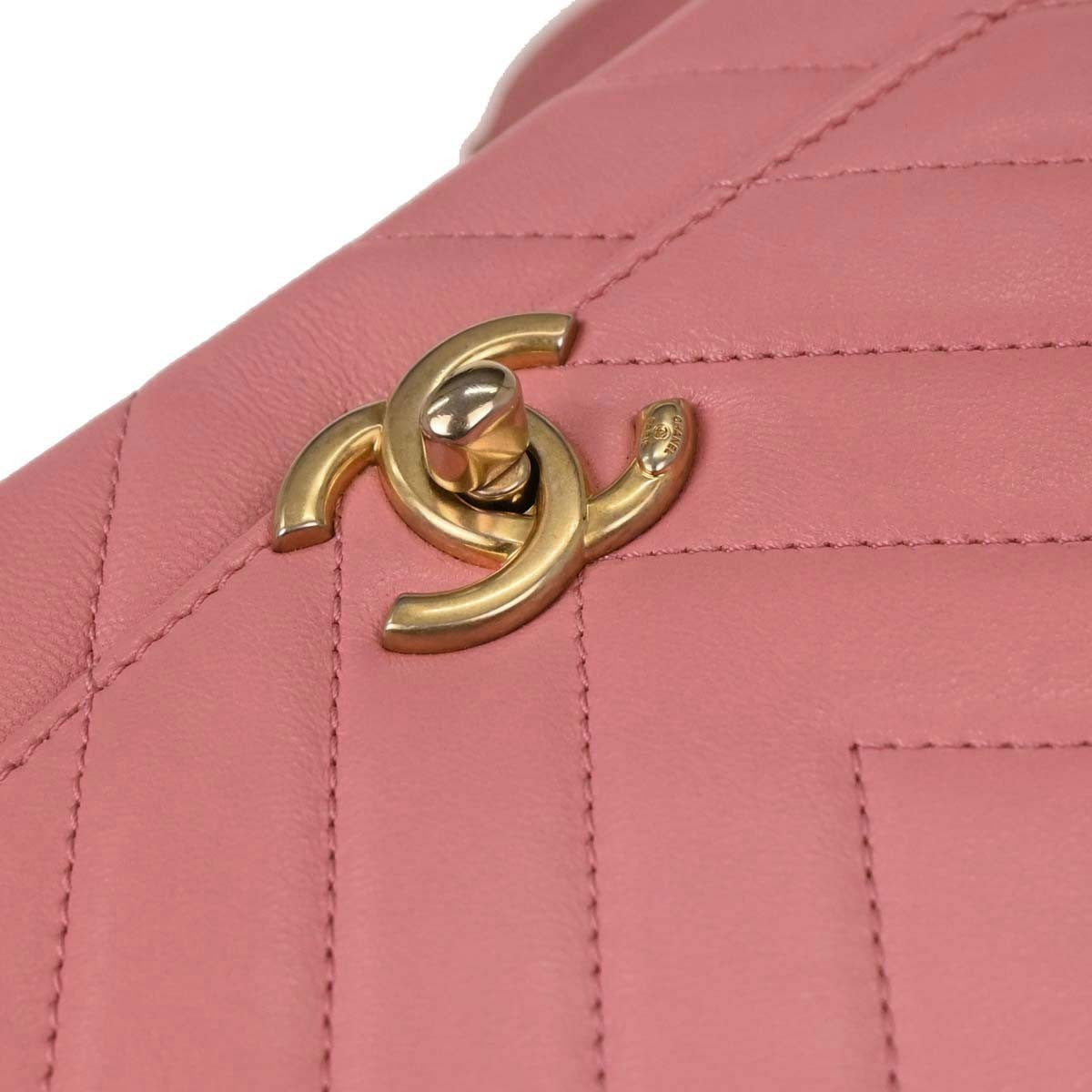 Chanel CC Metal Top Handle Flap Bag Chevron