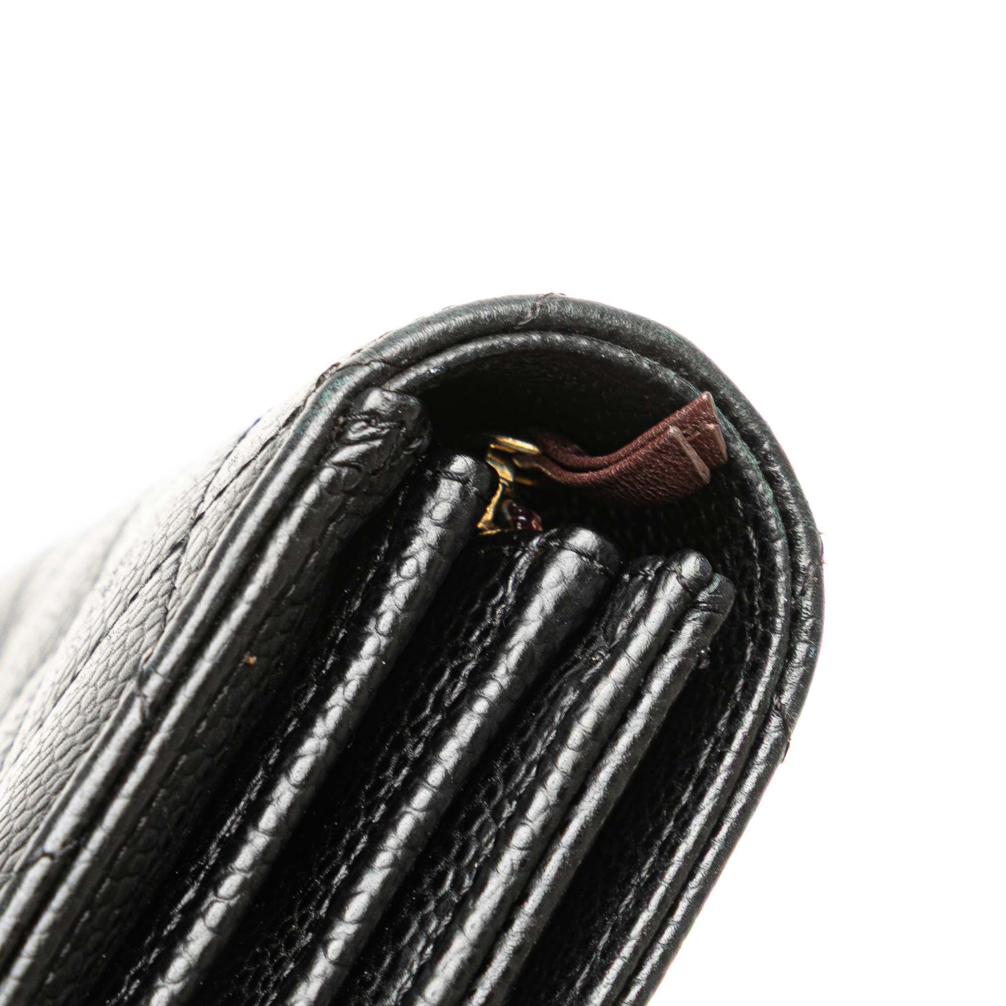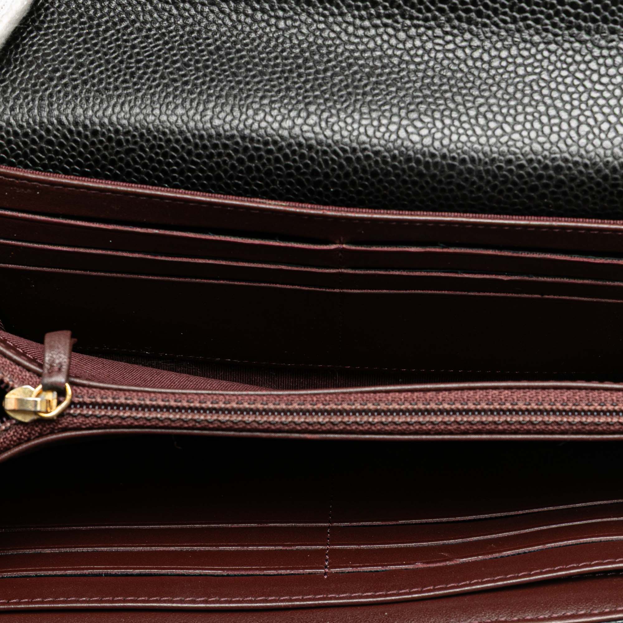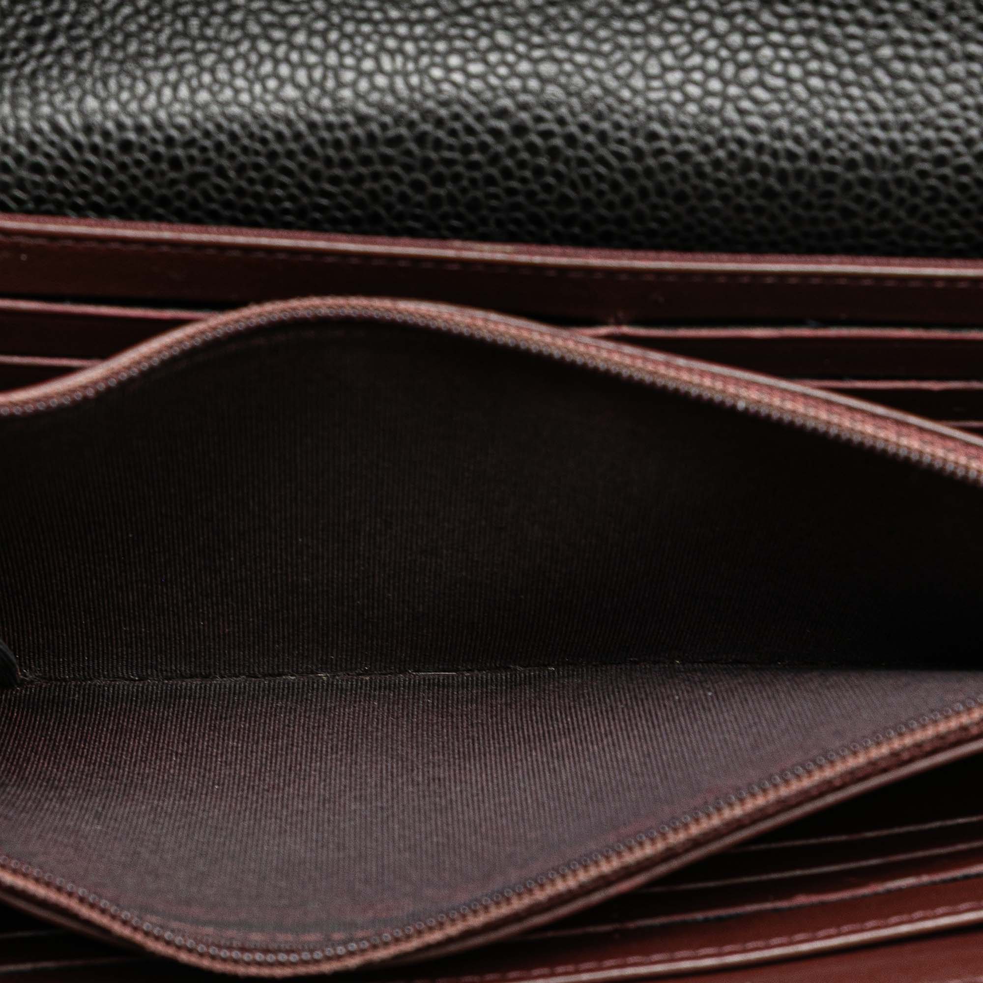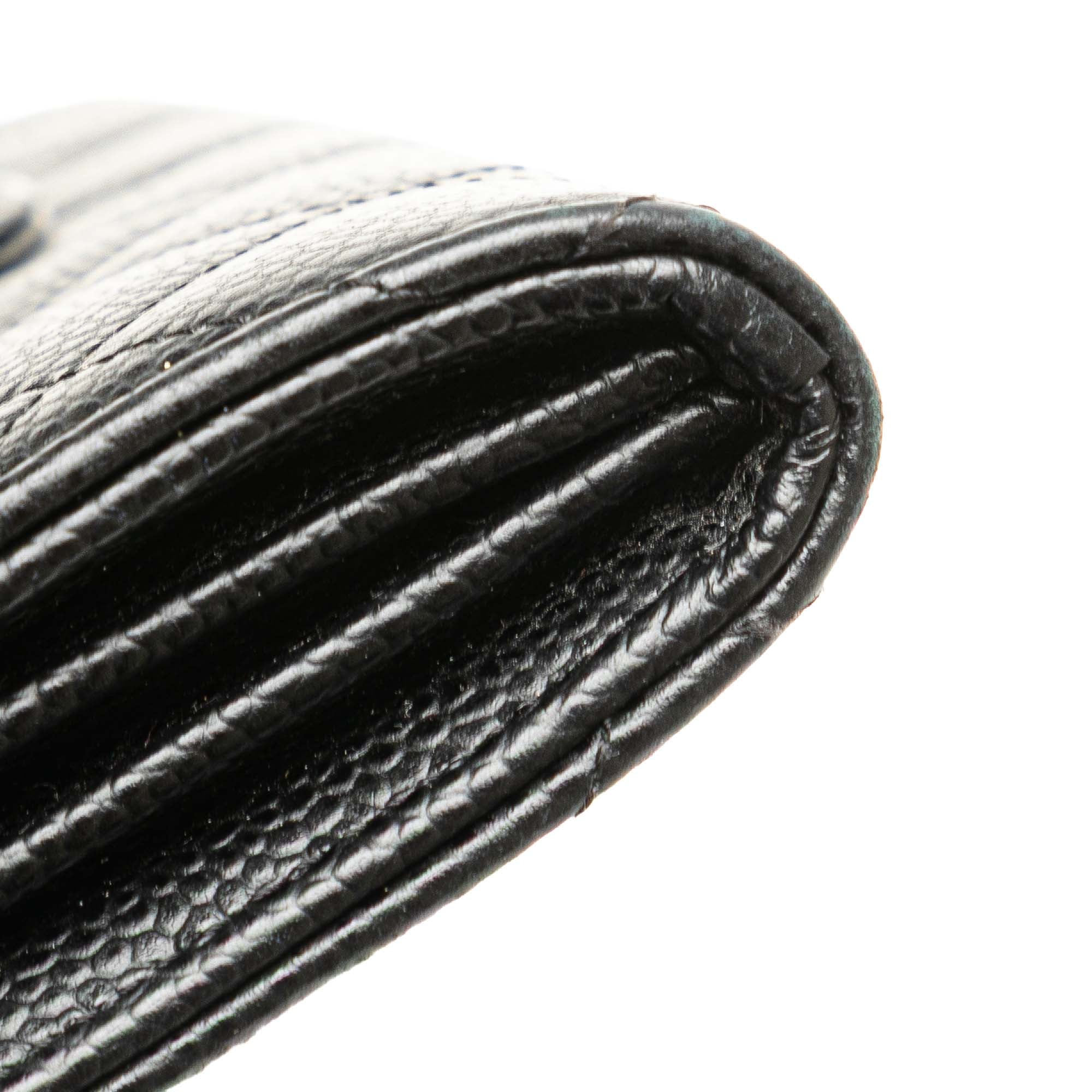 This wallet features a quilted caviar leather body, top flap with snap button closure, an interior zip compartment, interior bill compartments, and card slots. Inclusion: box, authenticity card. Retail Price: 1450.00