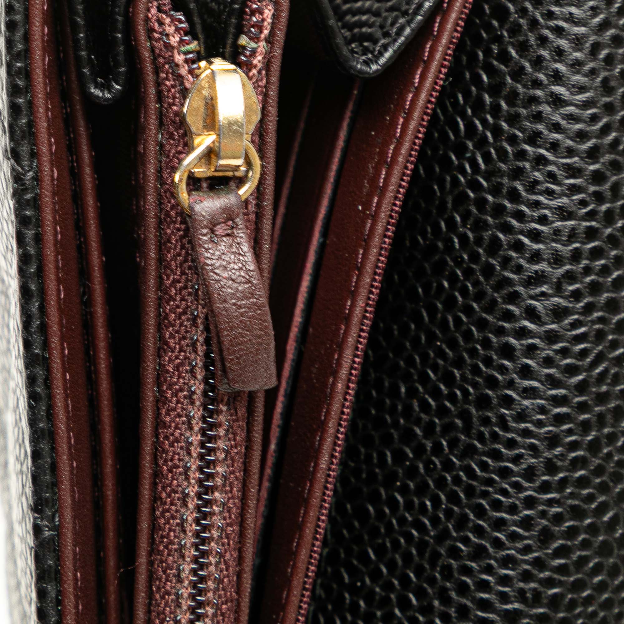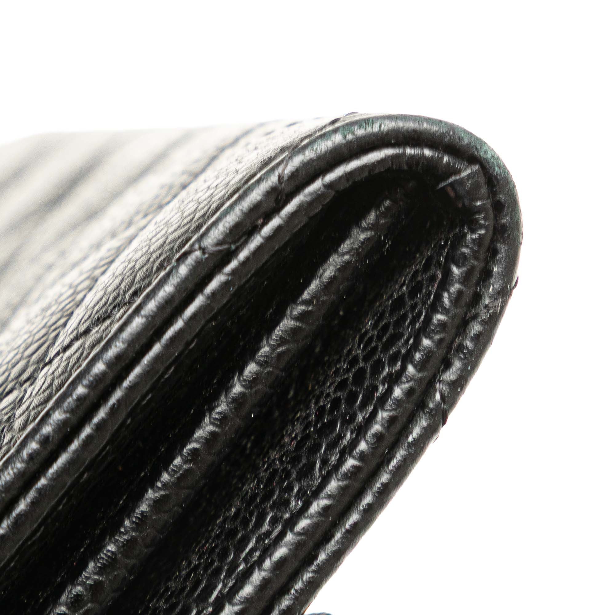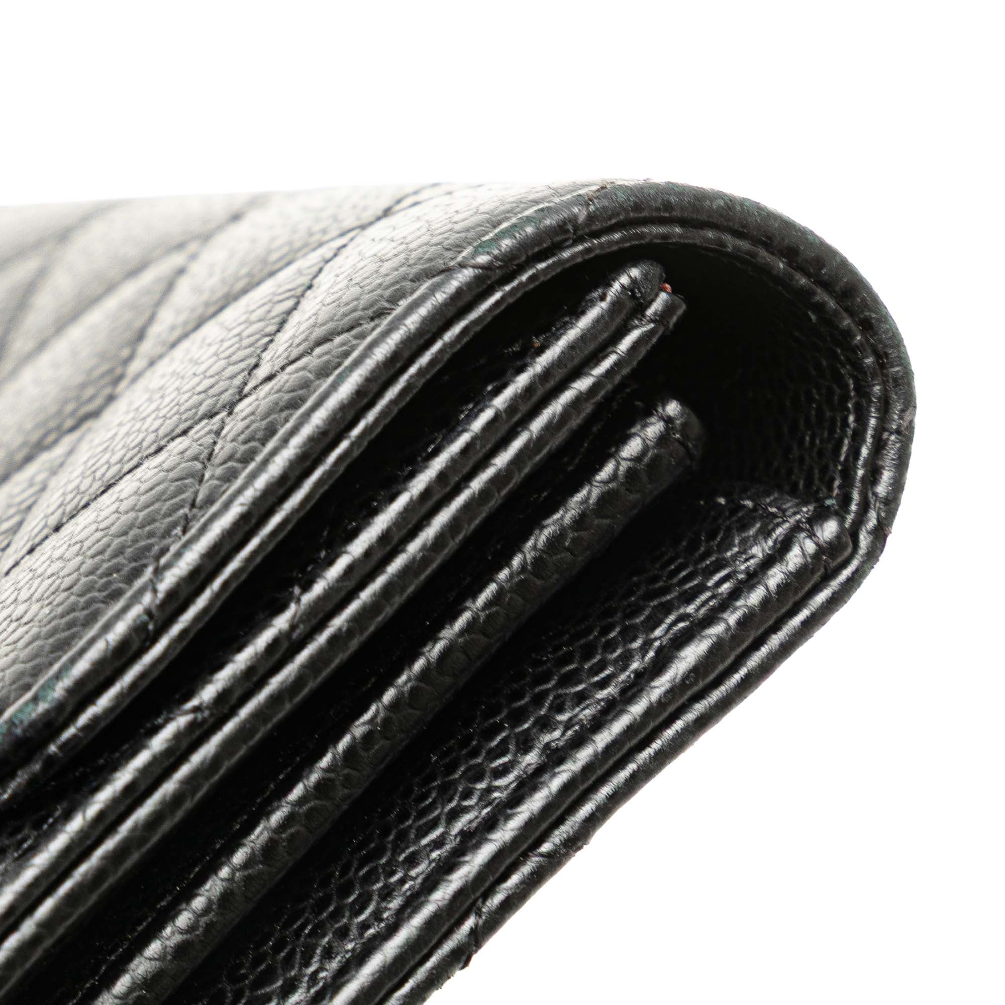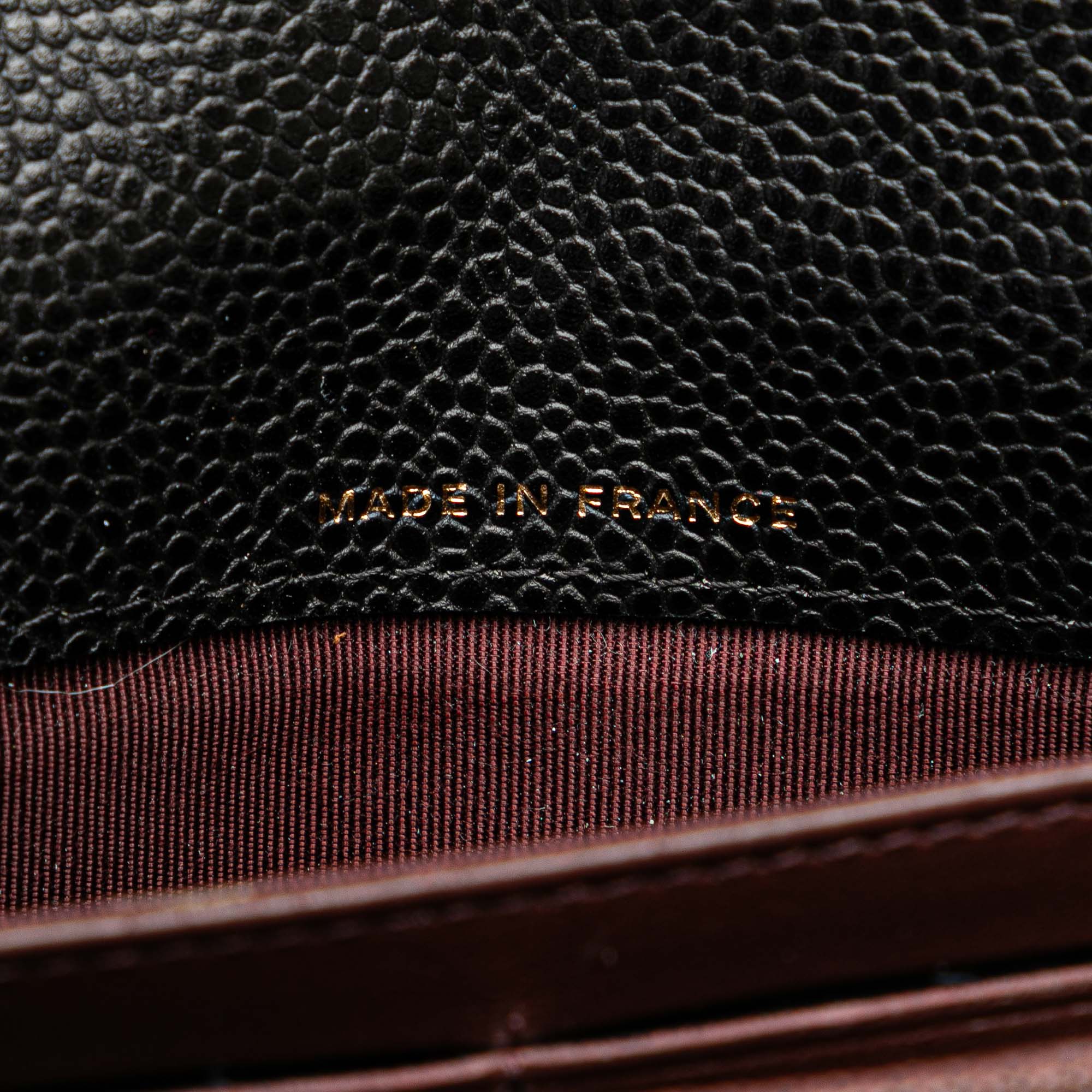 This wallet features a quilted caviar leather body, top flap with snap button closure, an interior zip compartment, interior bill compartments, and card slots. Inclusion: box, authenticity card. Retail Price: 1450.00