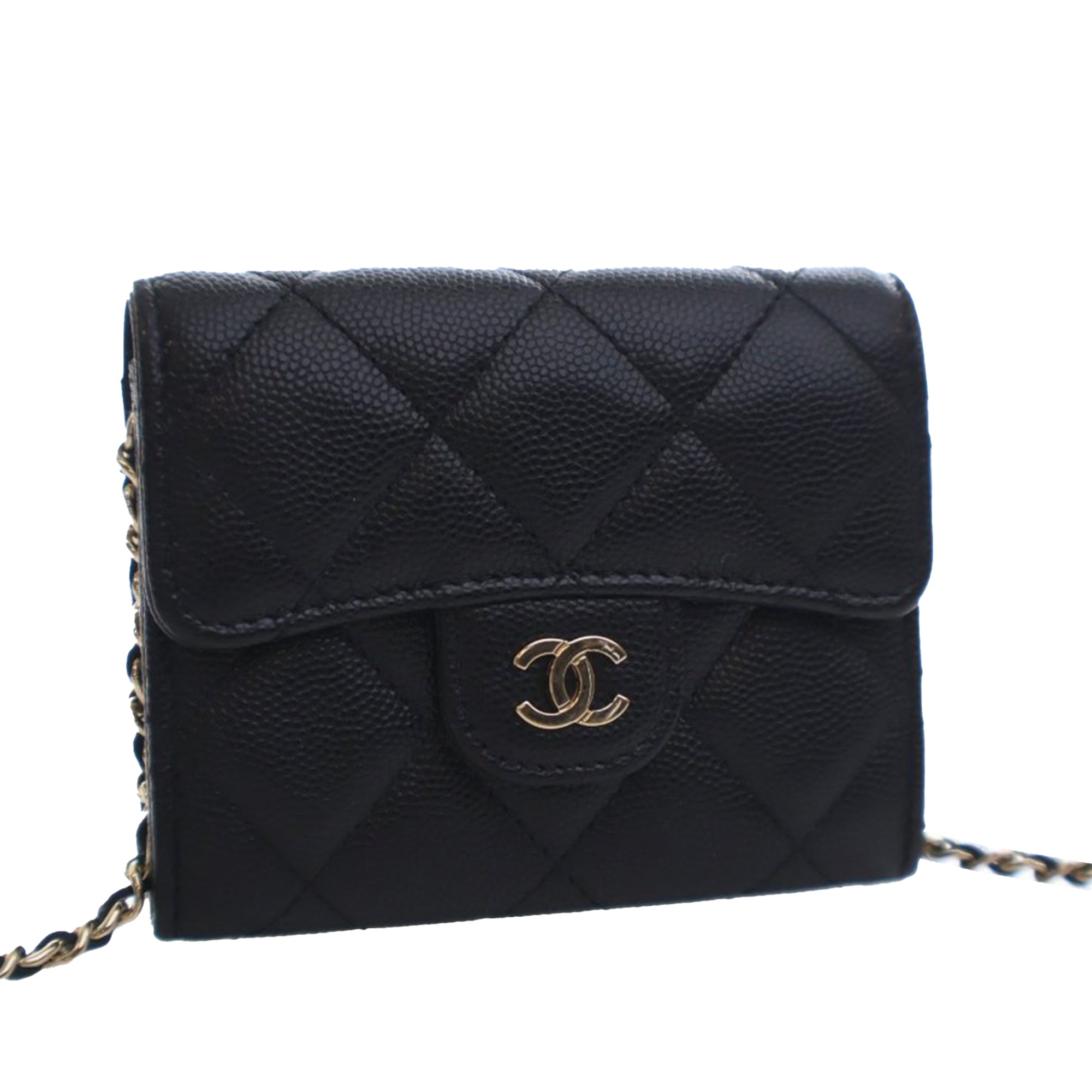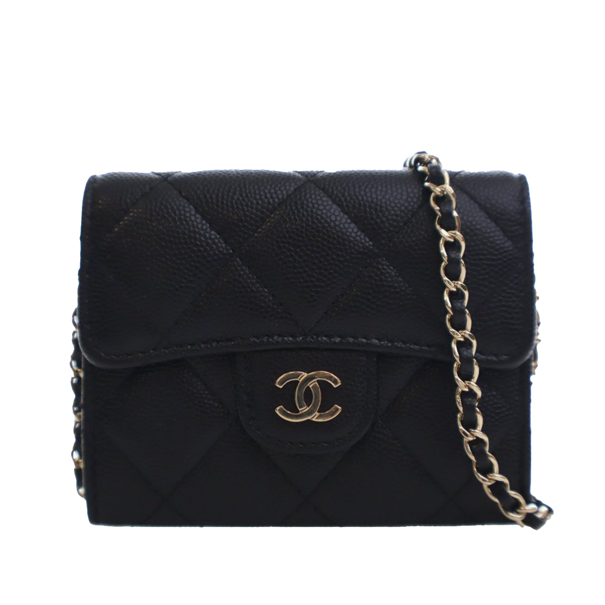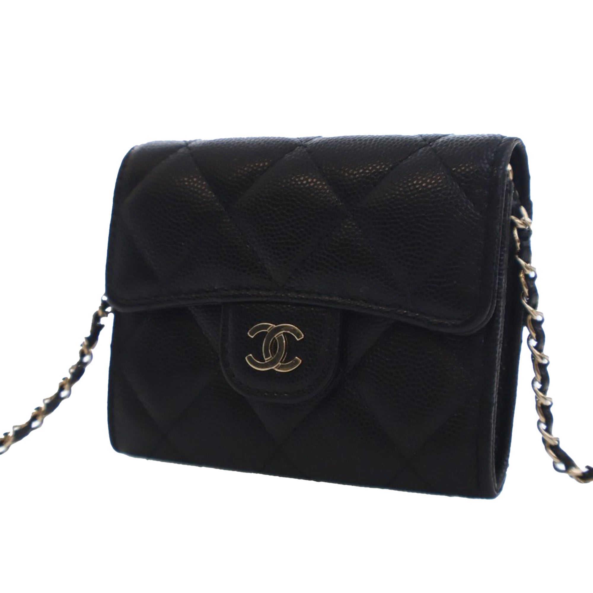 Chanel CC Quilted Caviar Flap Card Holder On Chain