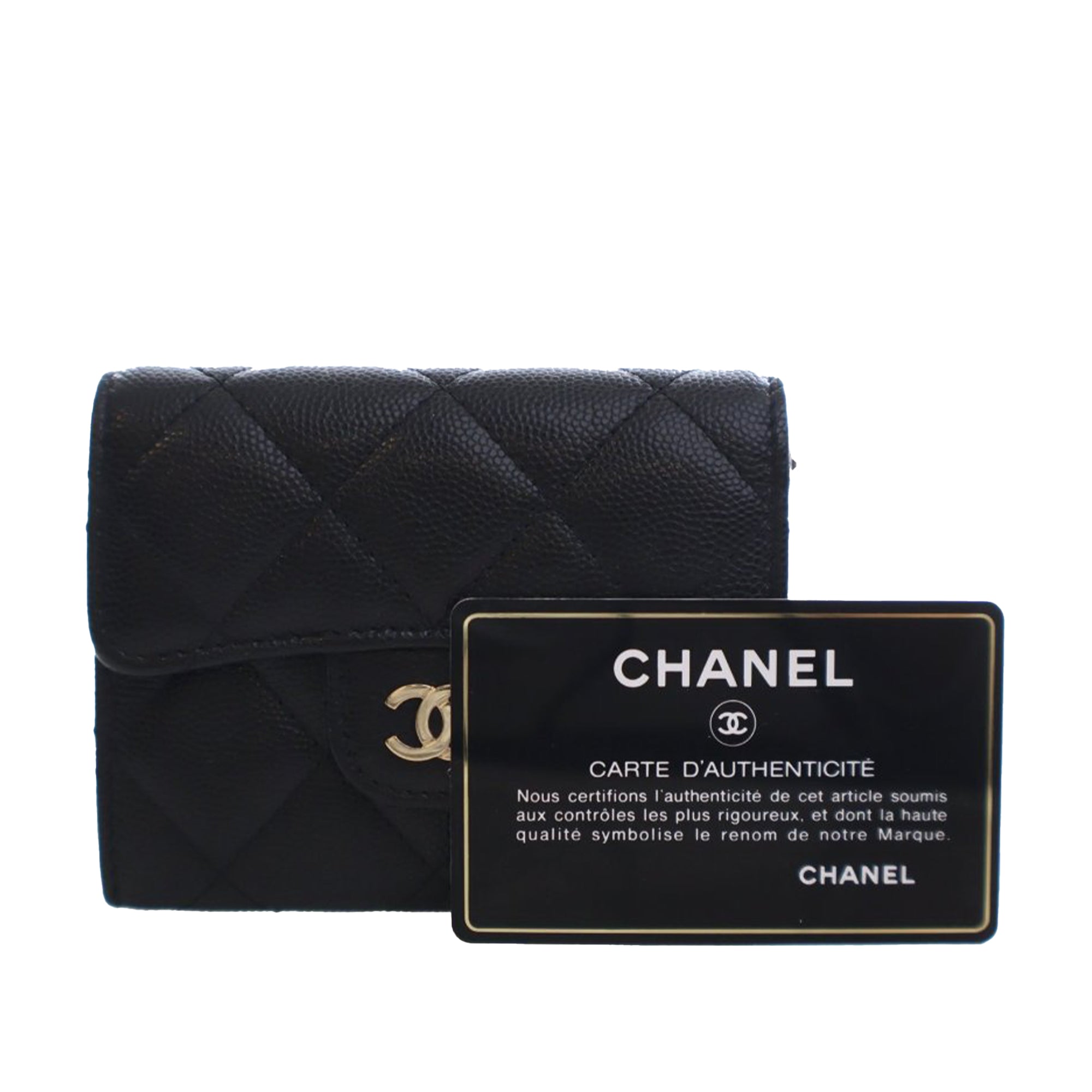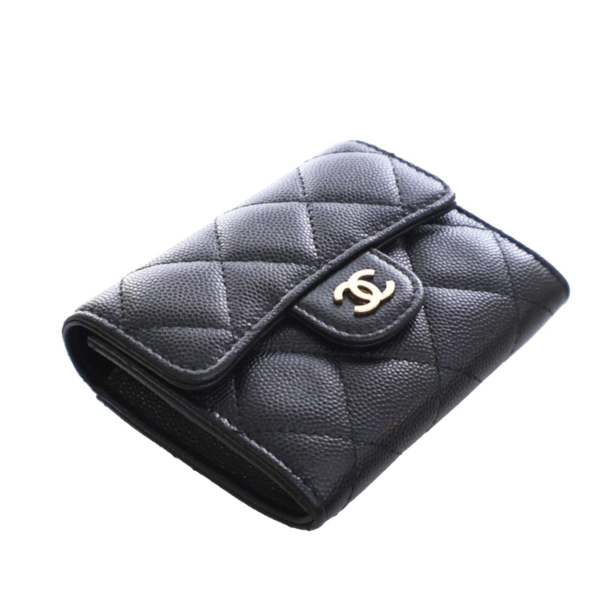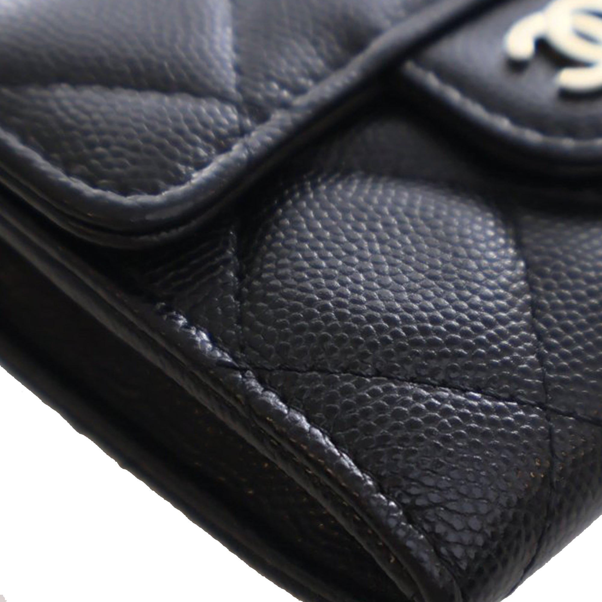Chanel CC Quilted Caviar Flap Card Holder On Chain