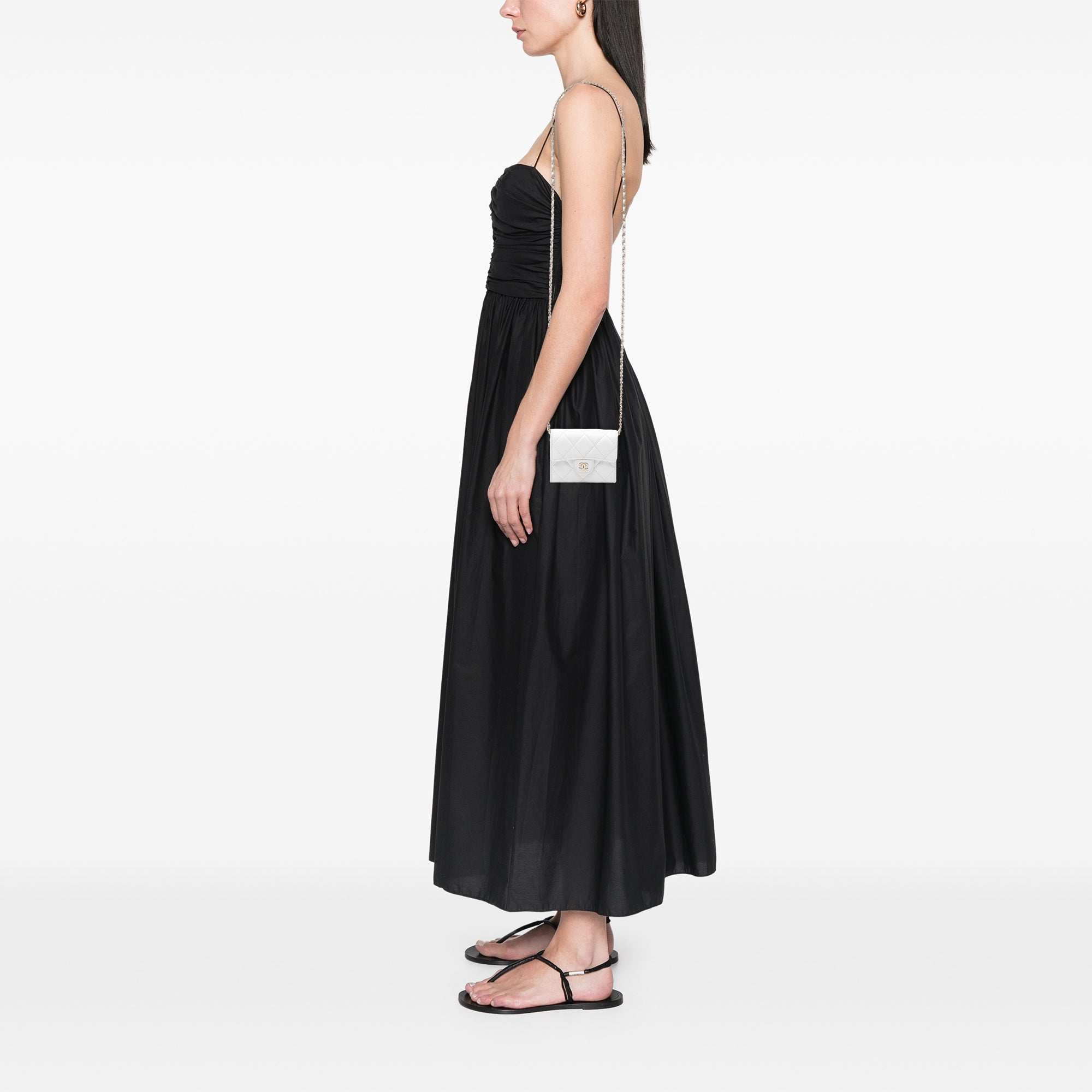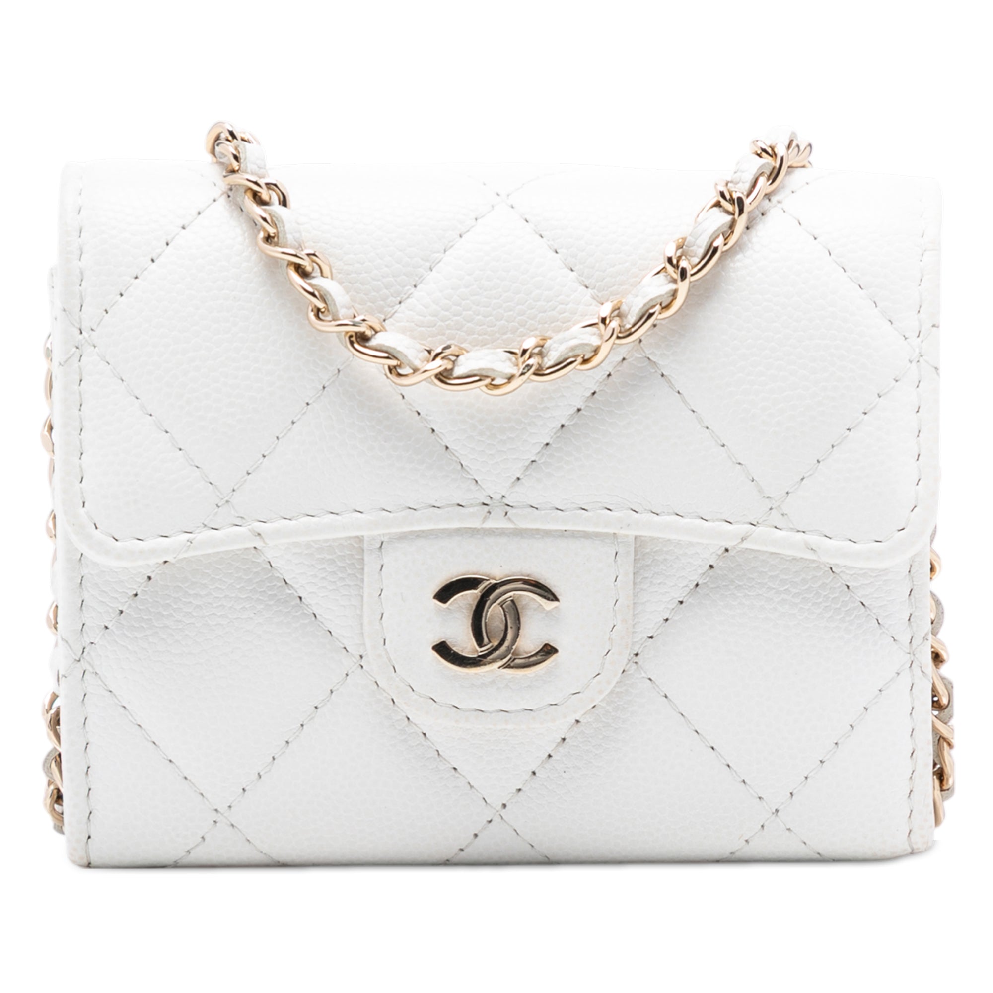 Chanel CC Quilted Caviar Flap Card Holder with Chain