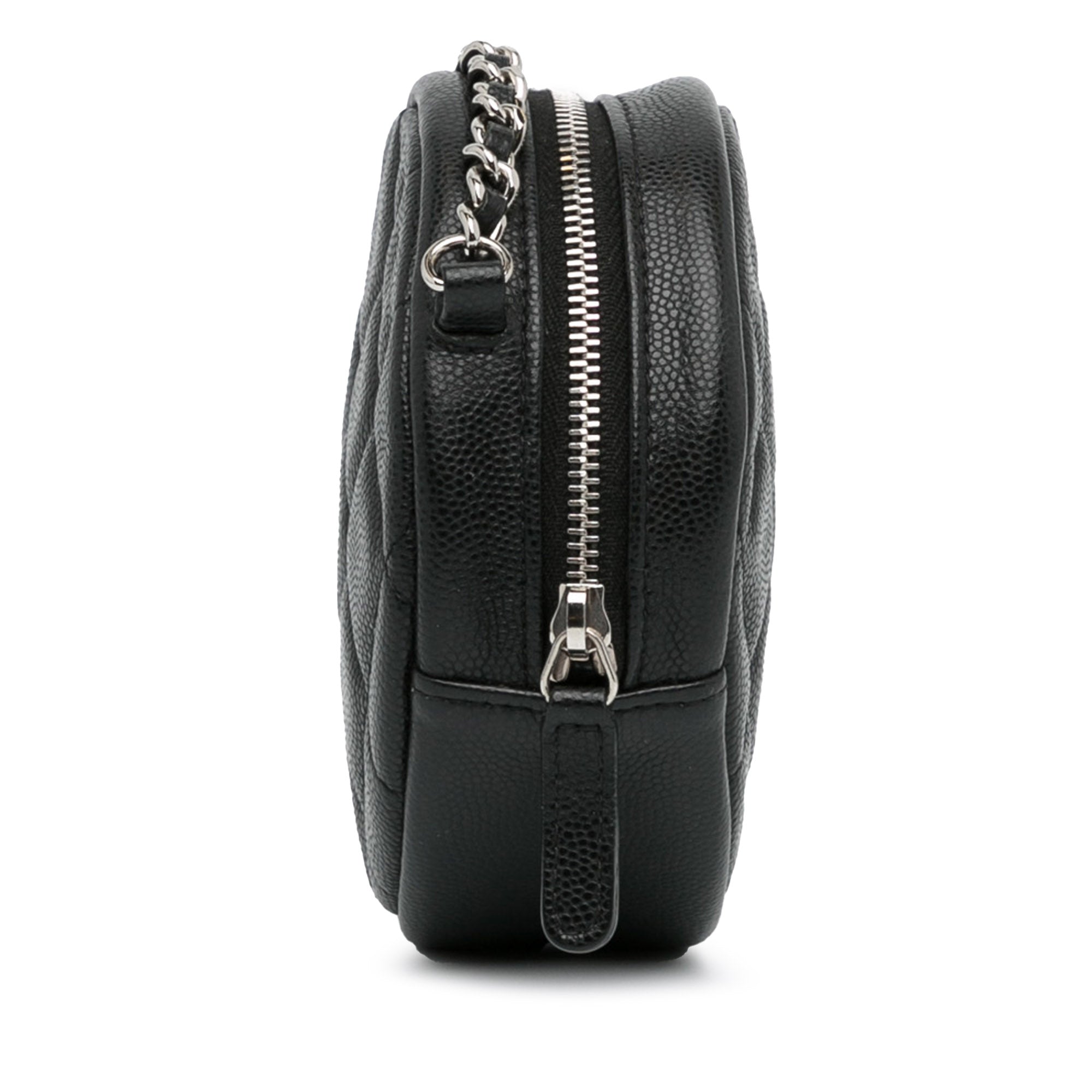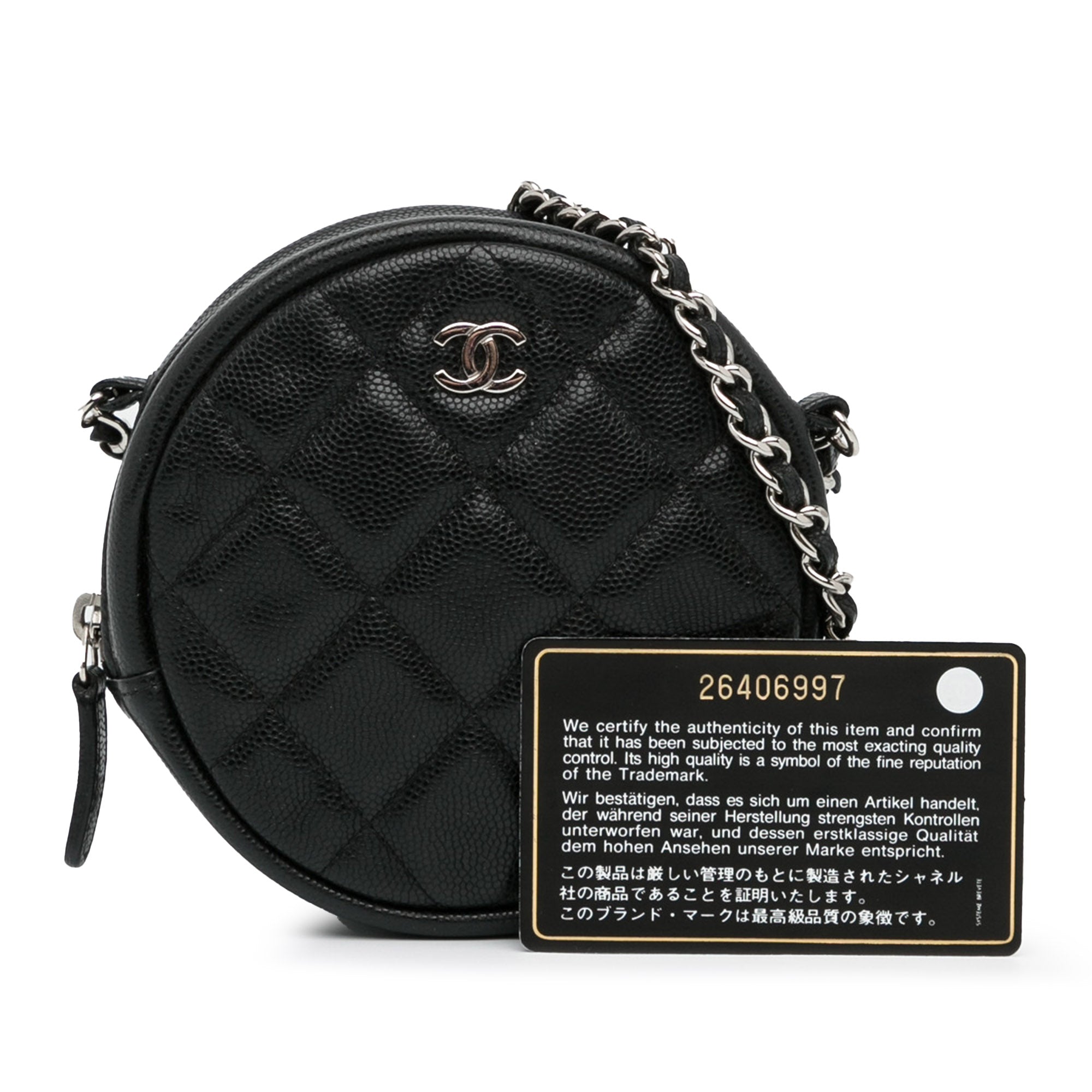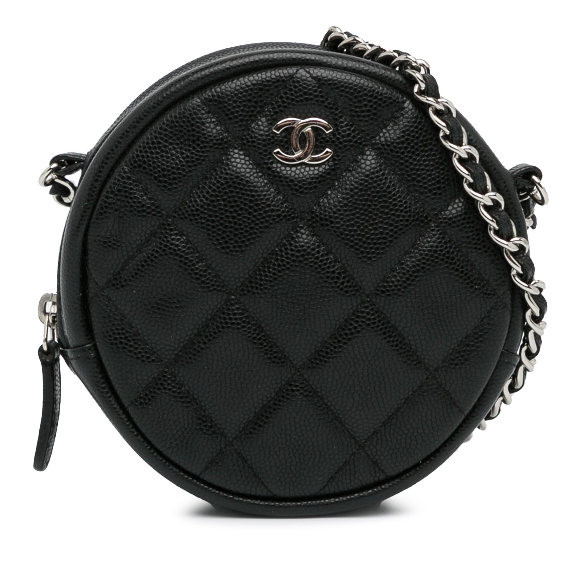 Chanel CC Quilted Caviar Round Clutch With Chain