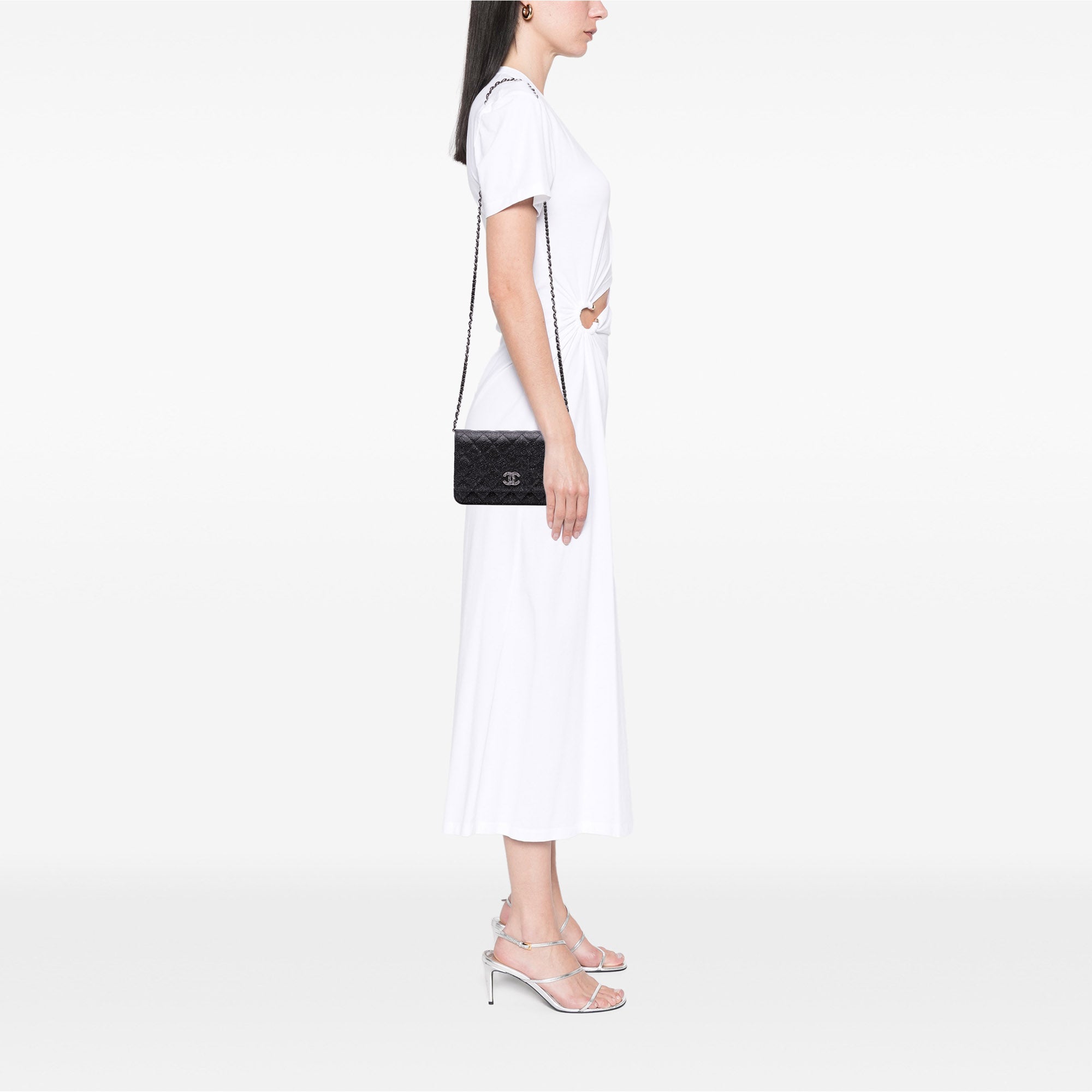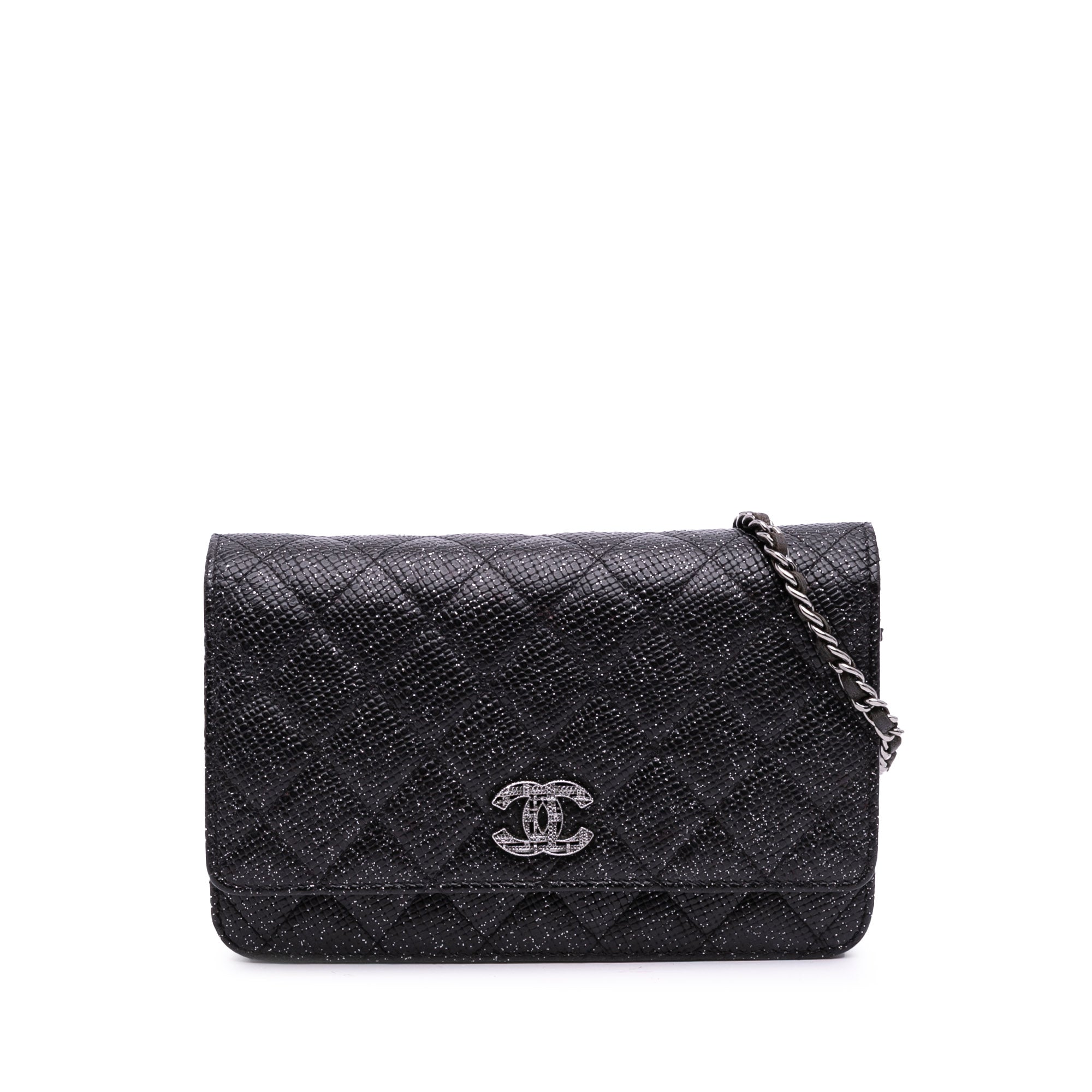 Chanel CC Quilted Glittered Calfskin Wallet On Chain