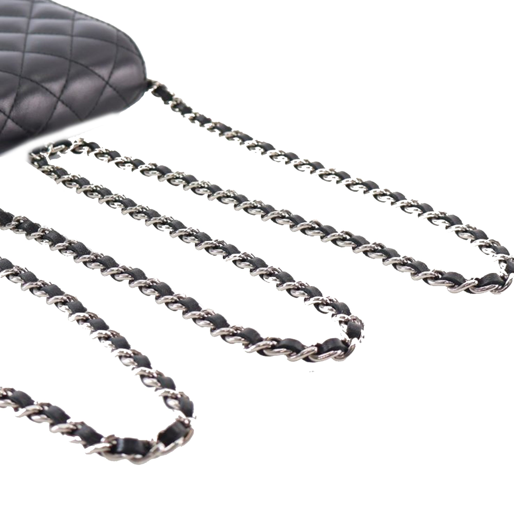 This crossbody bag features a quilted lambskin leather body, a leather-woven chain strap, a flap with snap closure, an interior zip compartment, and interior zip and slip pockets. Retail Price: 3000.00