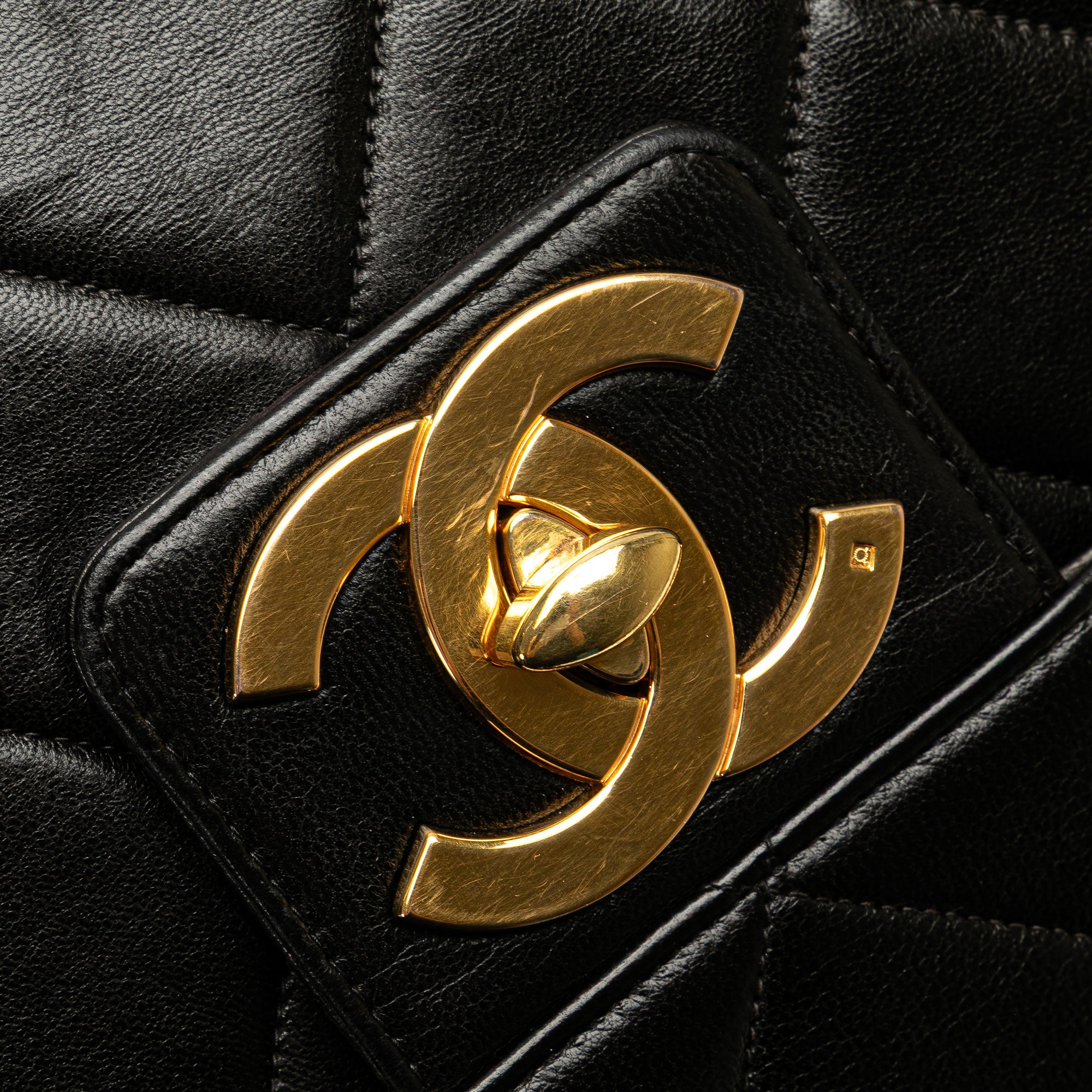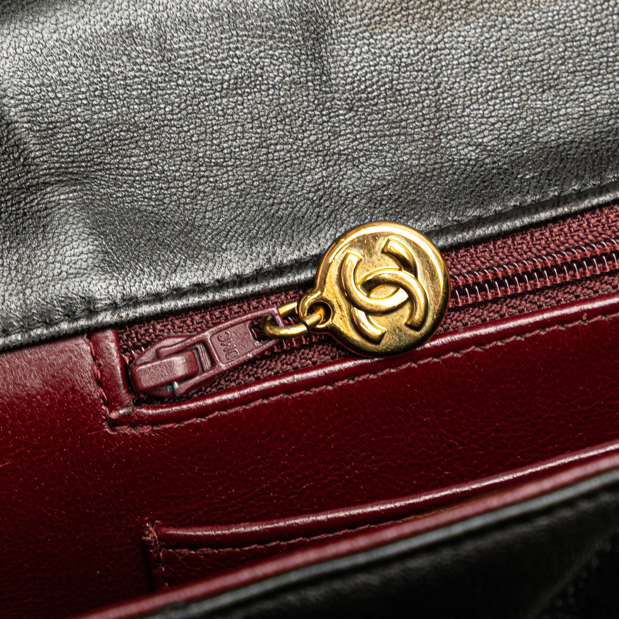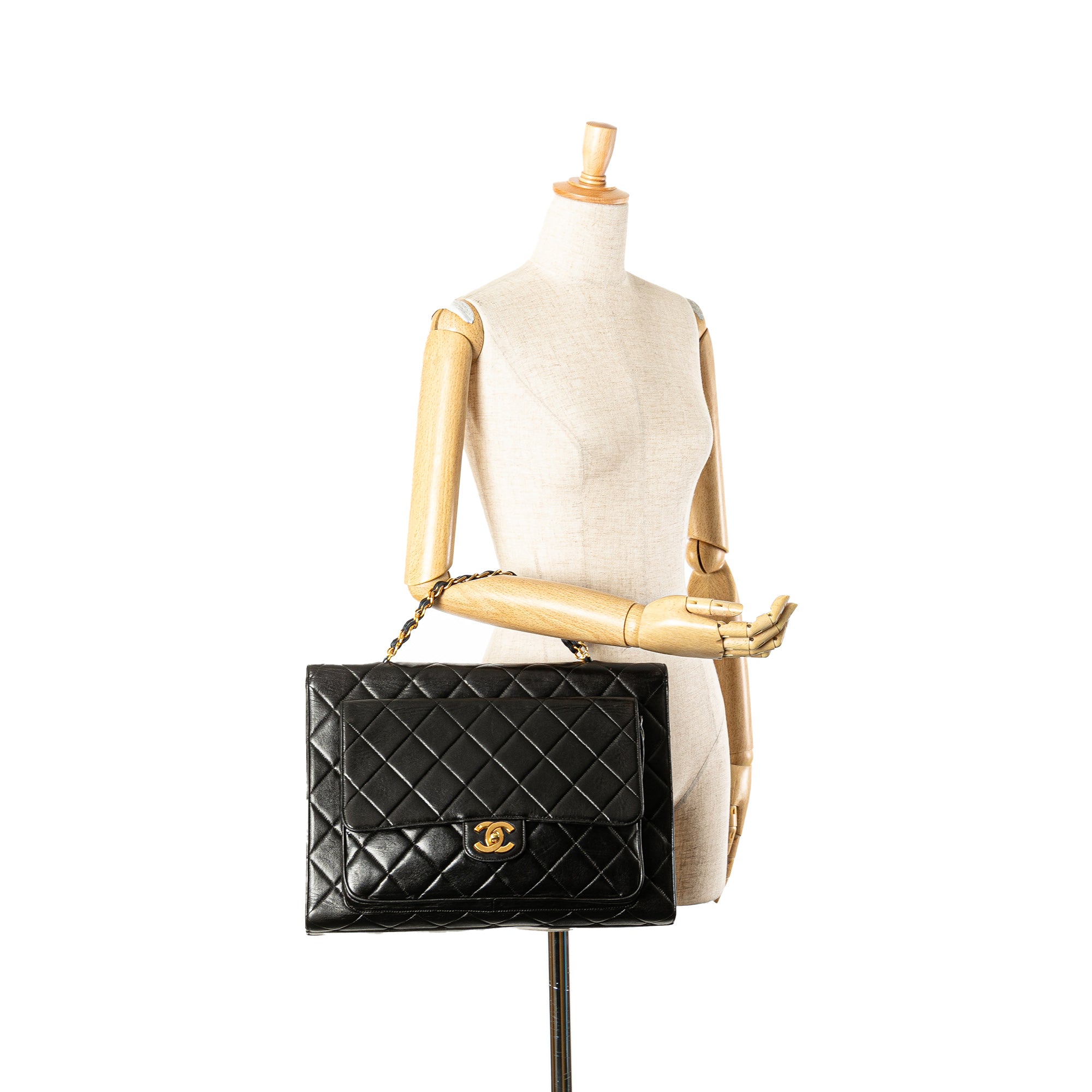 This business bag features a quilted lambskin leather body, leather-woven chain handles, double sided flaps with CC turn lock closure, and interior zip and slip pockets. Retail Price: 7344.00