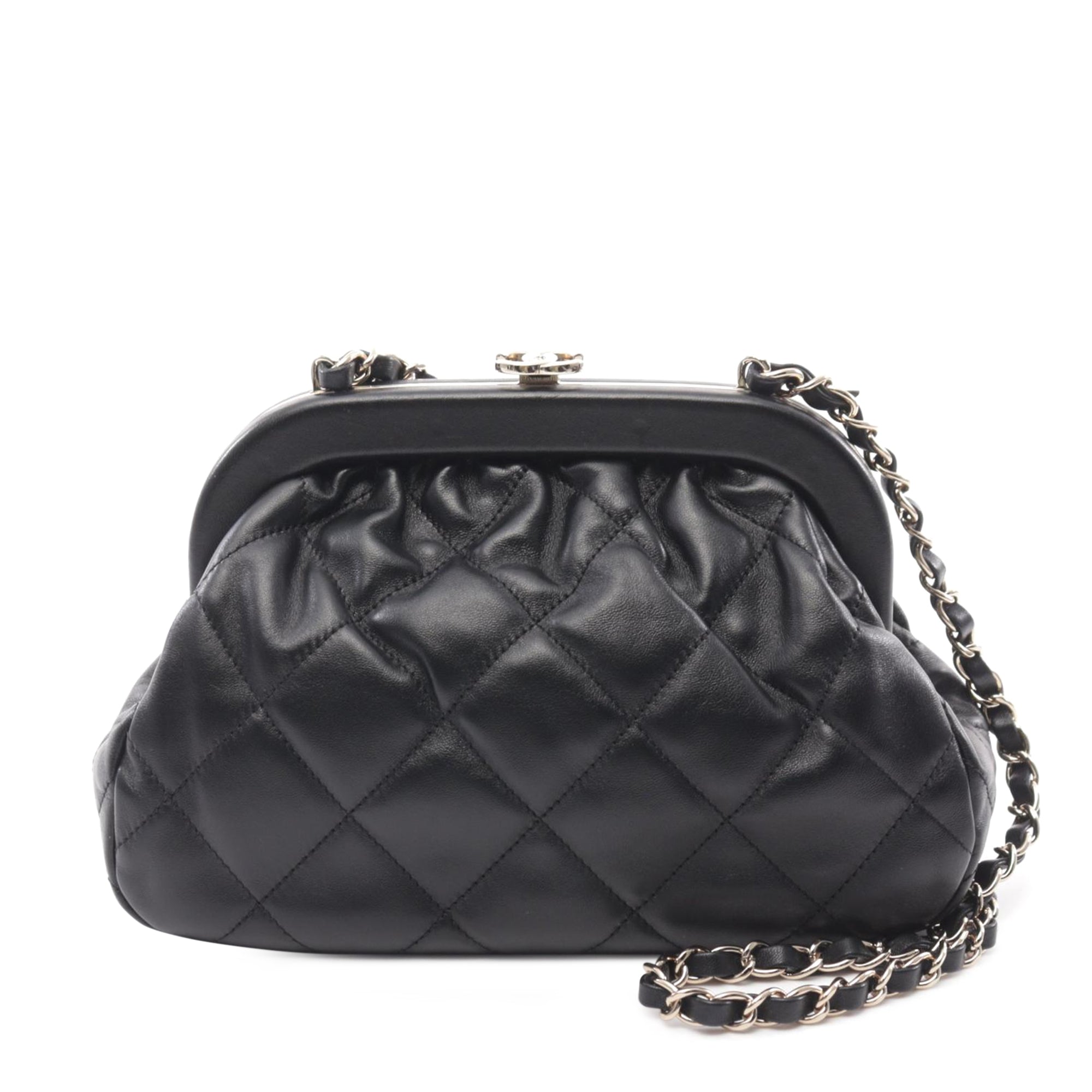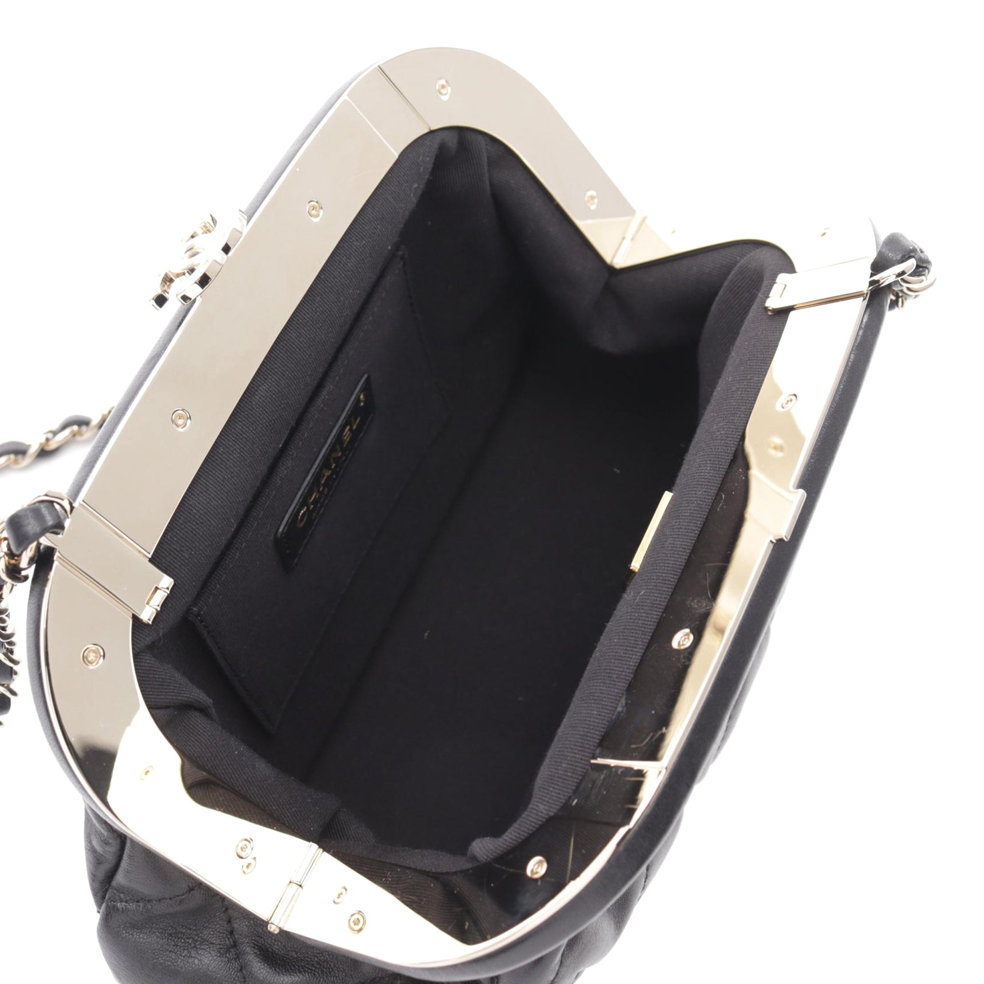 Chanel CC Quilted Lambskin Kiss Lock Clutch with Chain