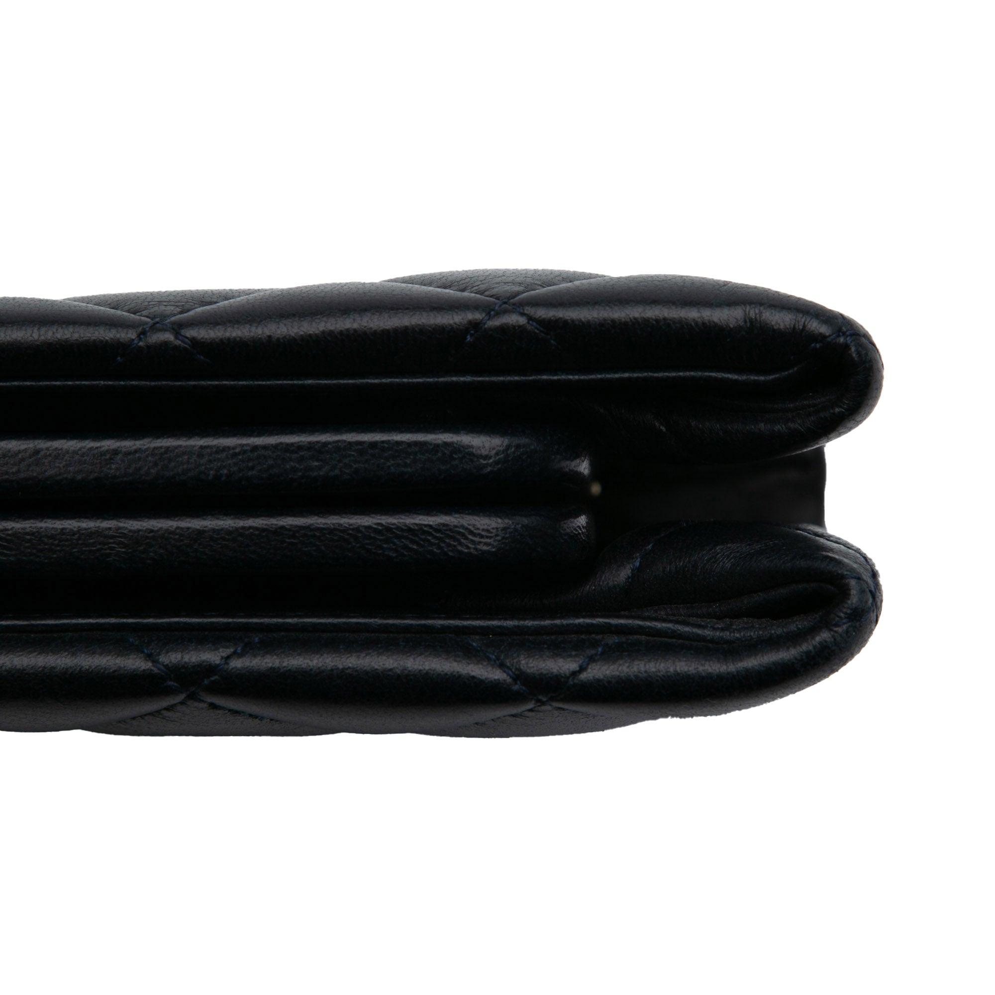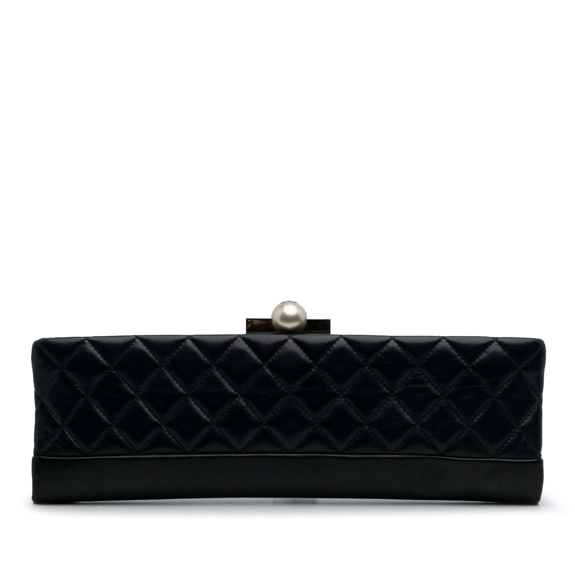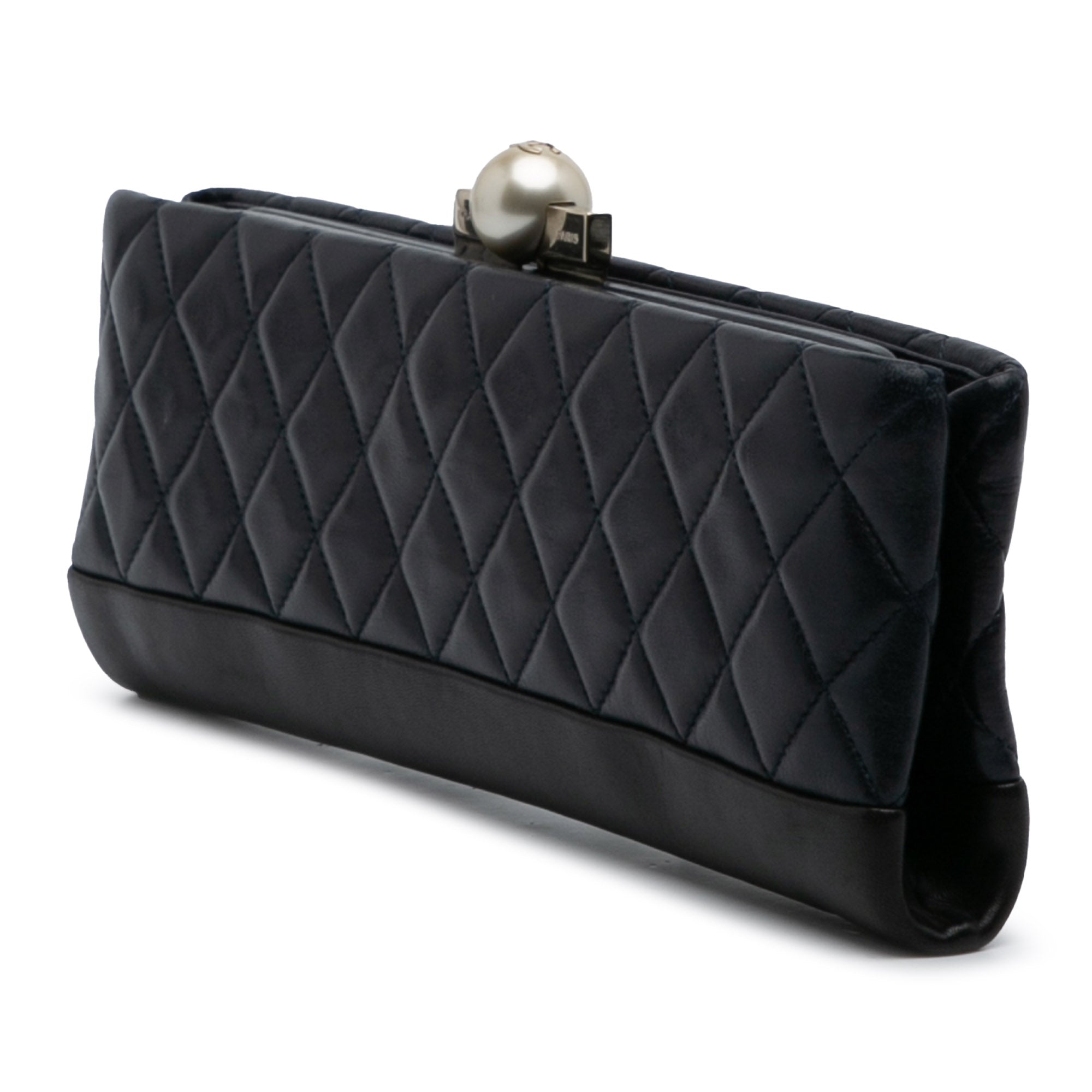 This Clutch bag features a quilted lambskin body, a top push lock closure, and an interior slip pocket. Retail Price: 2335.00