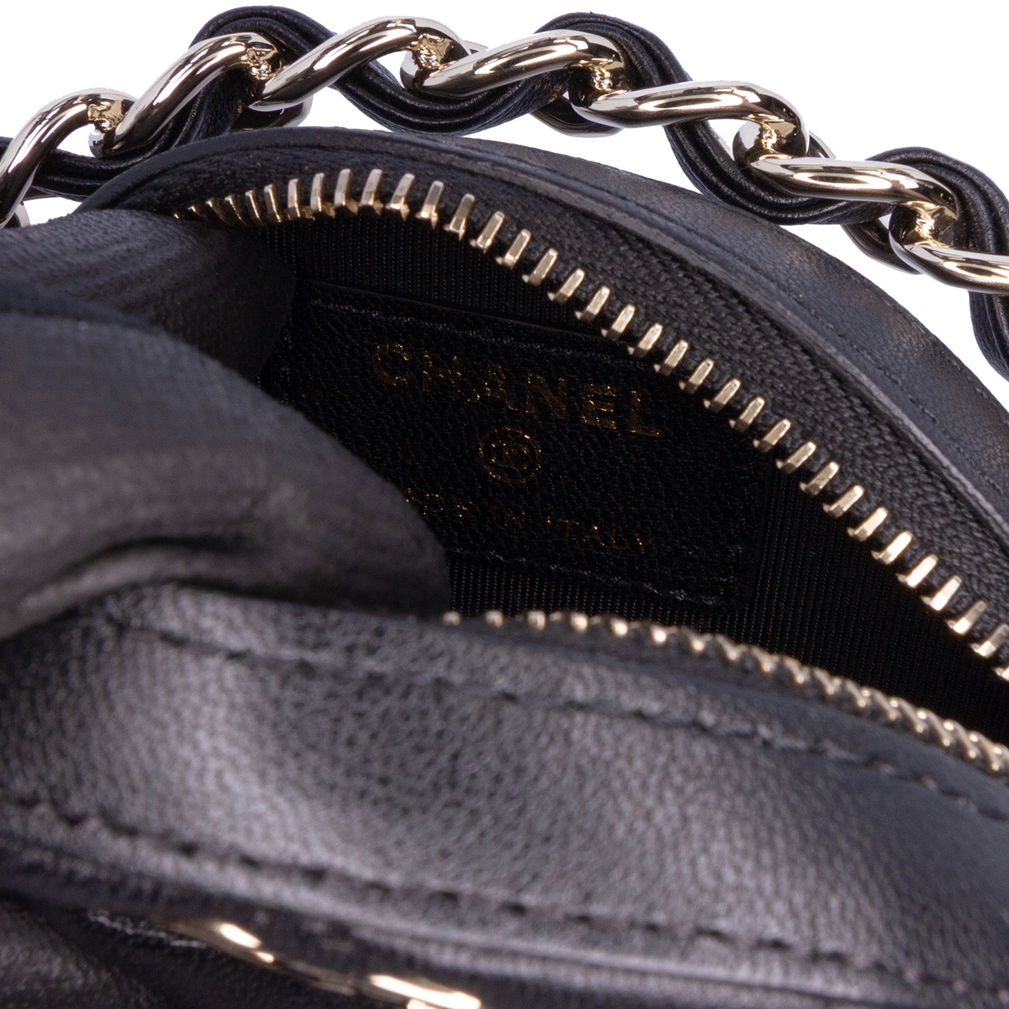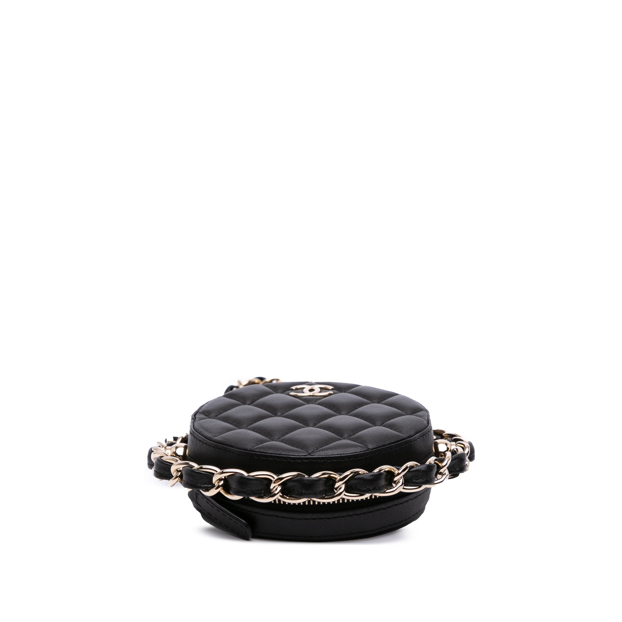 Chanel CC Quilted Lambskin Round Chain Around Clutch With Chain