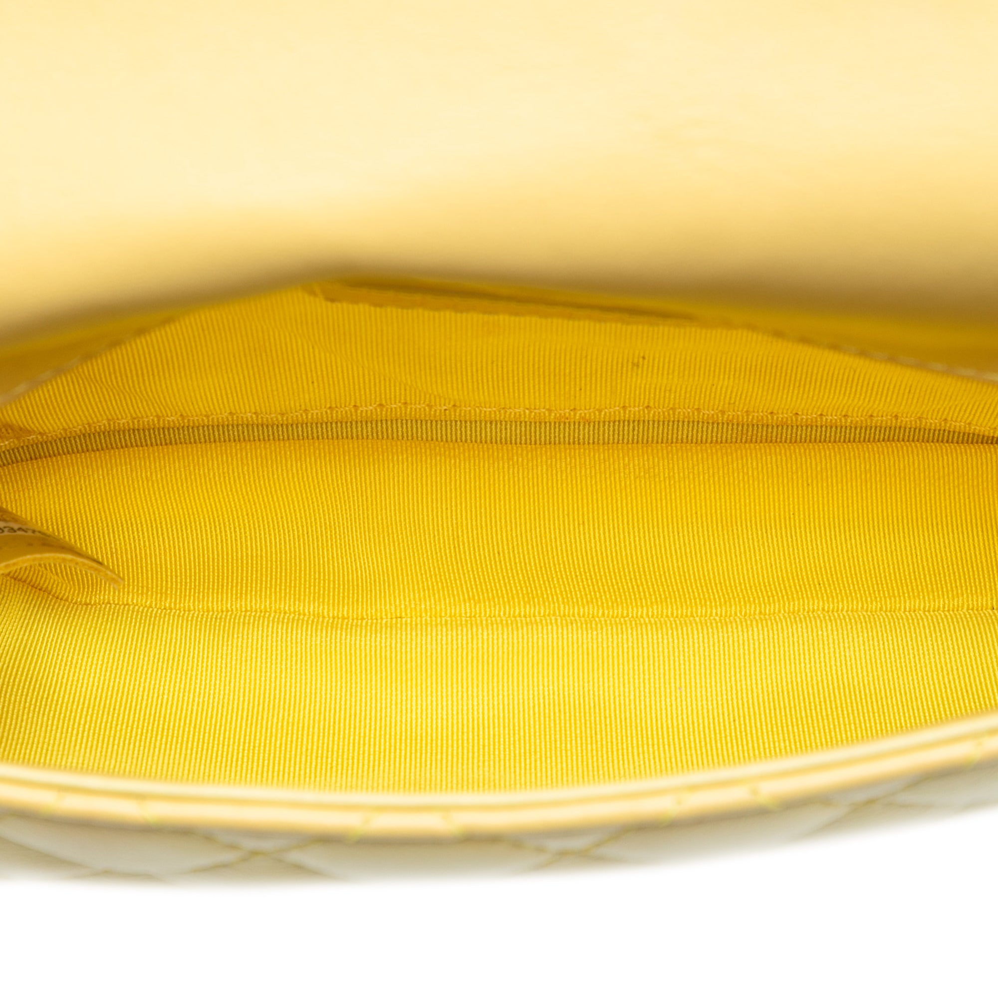 This crossbody bag features a quilted lambskin leather body, a leather woven chain link strap with leather guard, a front flap with interlocking Cs and a twist-lock closure, an interior slip pocket, and a flap pouch with snap button closure. Retail Price: 4100.00