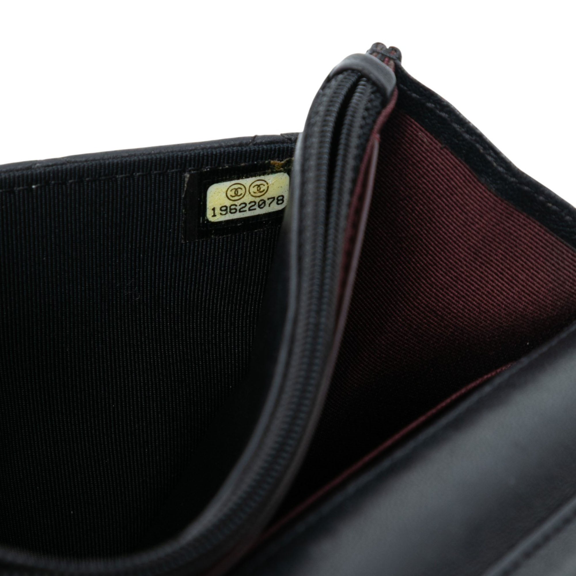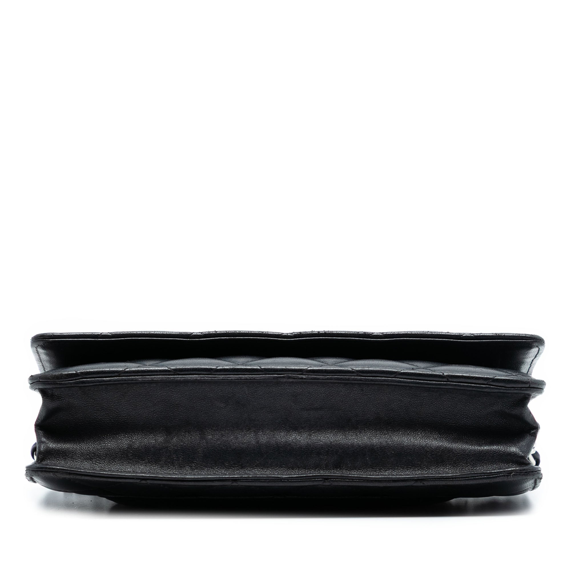 This wallet on chain features a quilted lambskin leather body, a leather woven chain shoulder strap, a flap with magnetic snap closure, an exterior back slip pocket, and interior zip and slip pockets. Inclusion: Dust bag, box, authenticity card. Retail Price: 3670.00