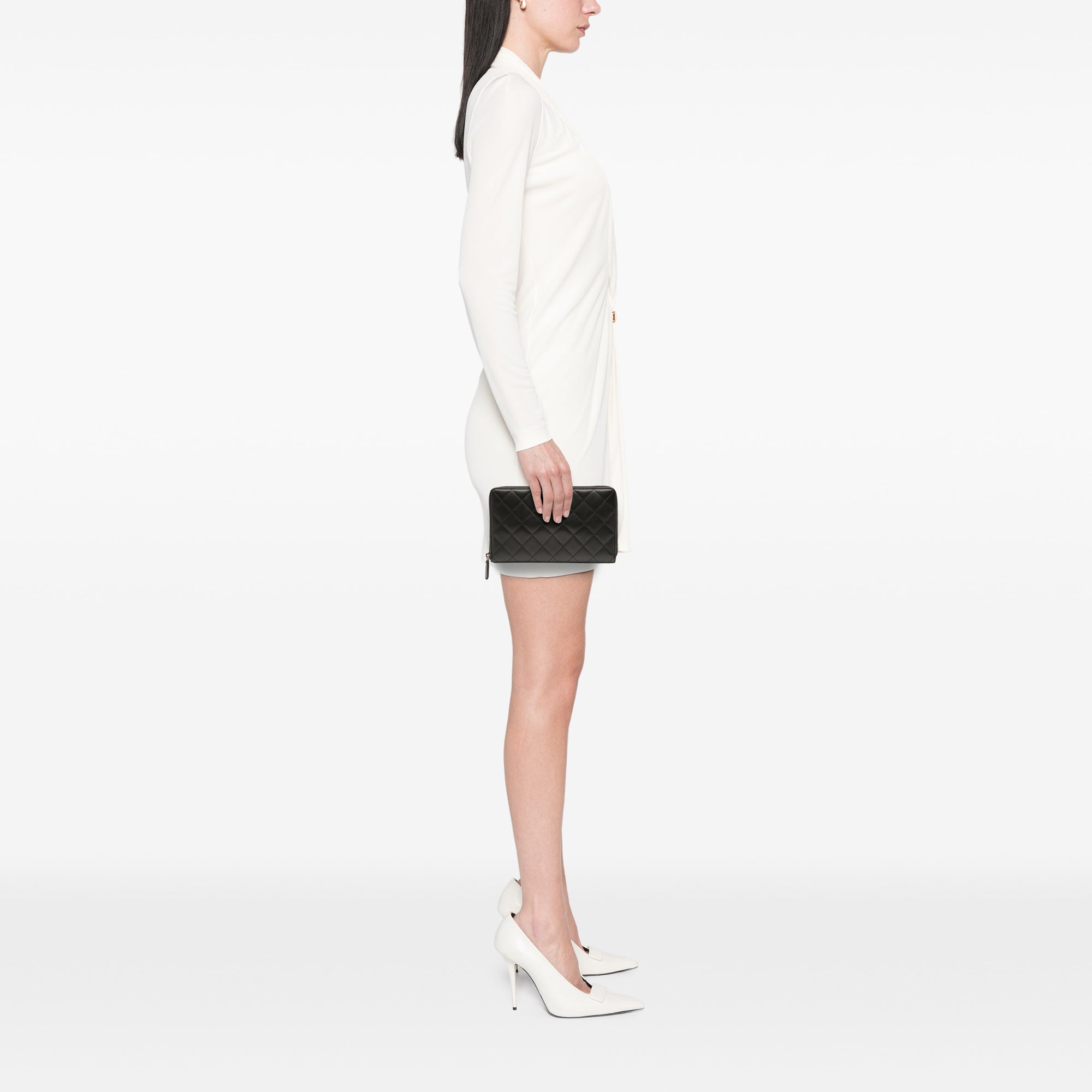 This wallet features a quilted lambskin leather body, a zip around closure, and interior slip pockets. Inclusion: authenticity card. Retail Price: 1251.00