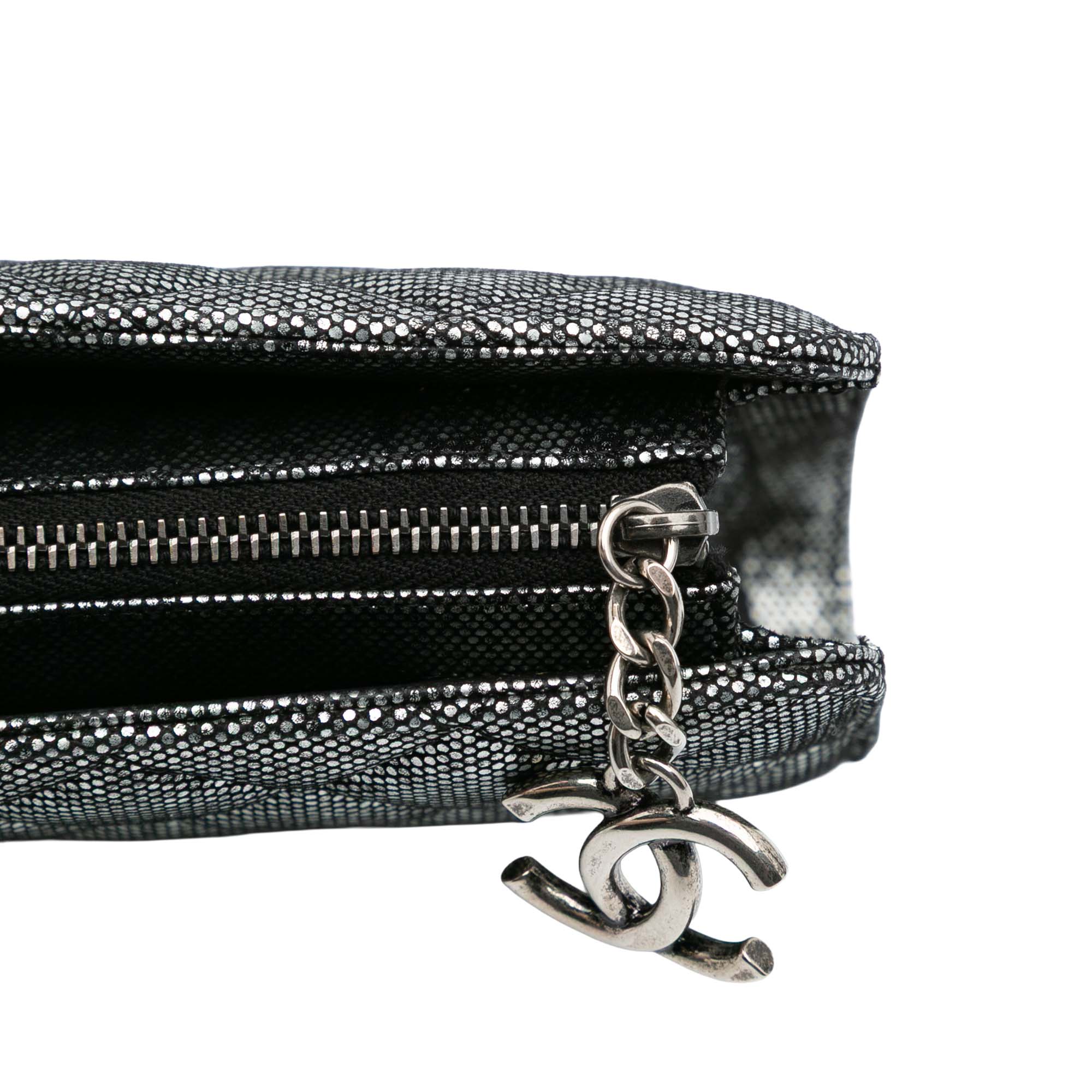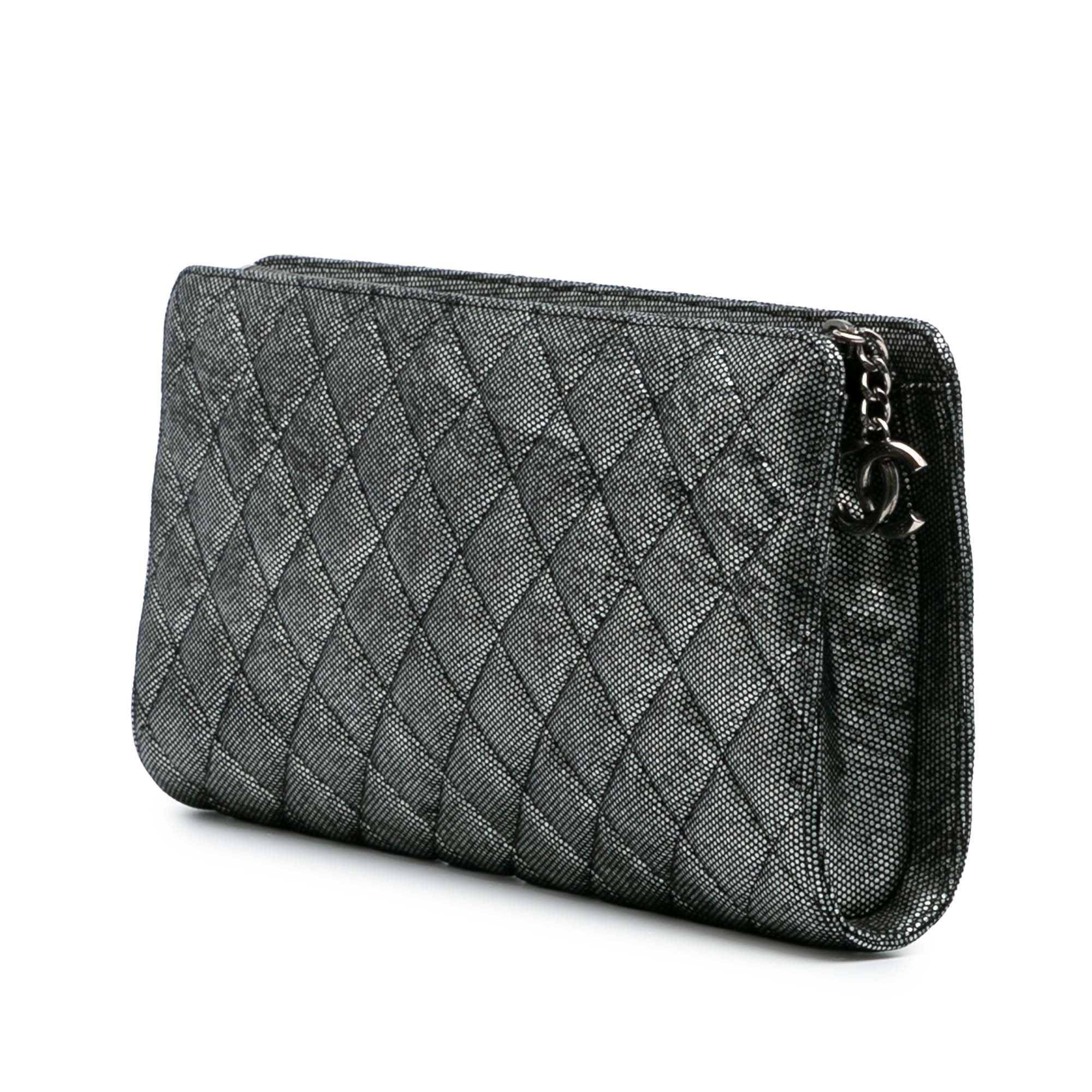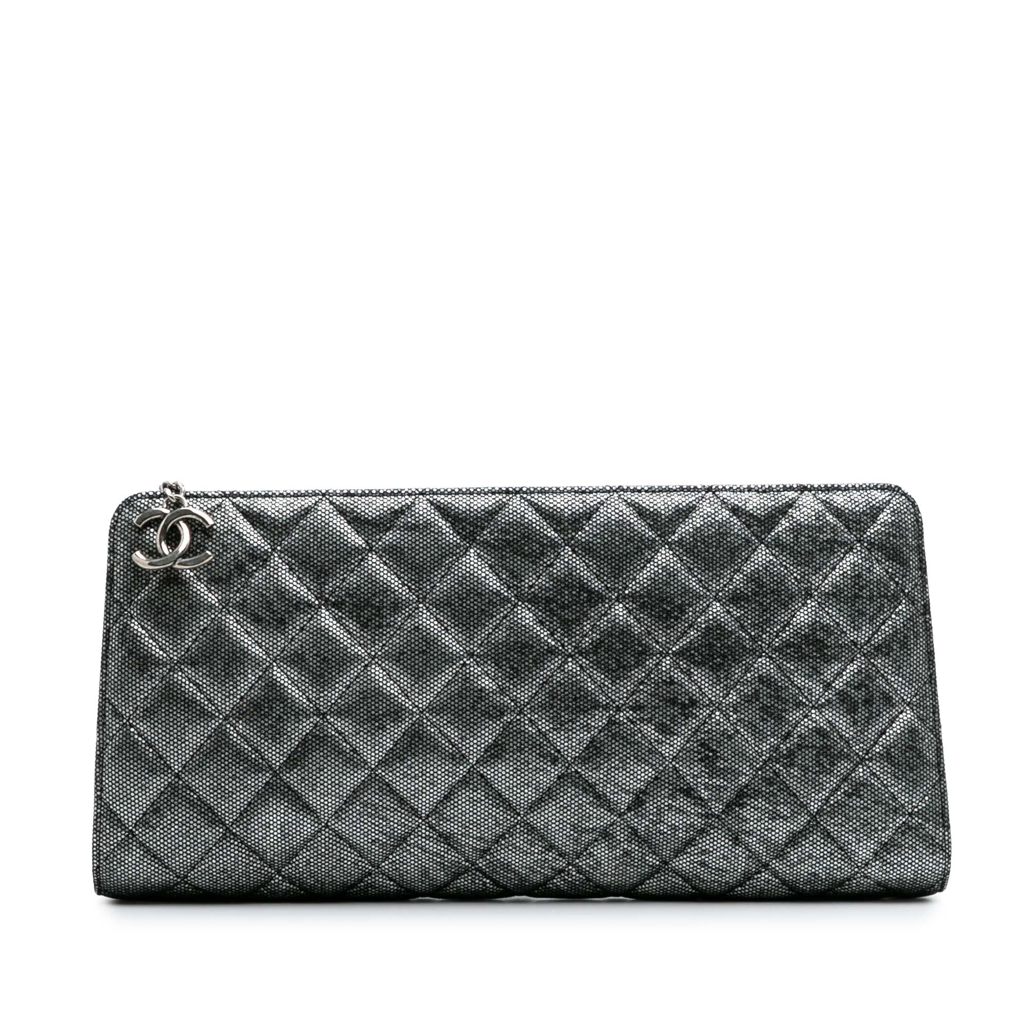 Chanel CC Quilted Metallic Calfskin Zip Clutch