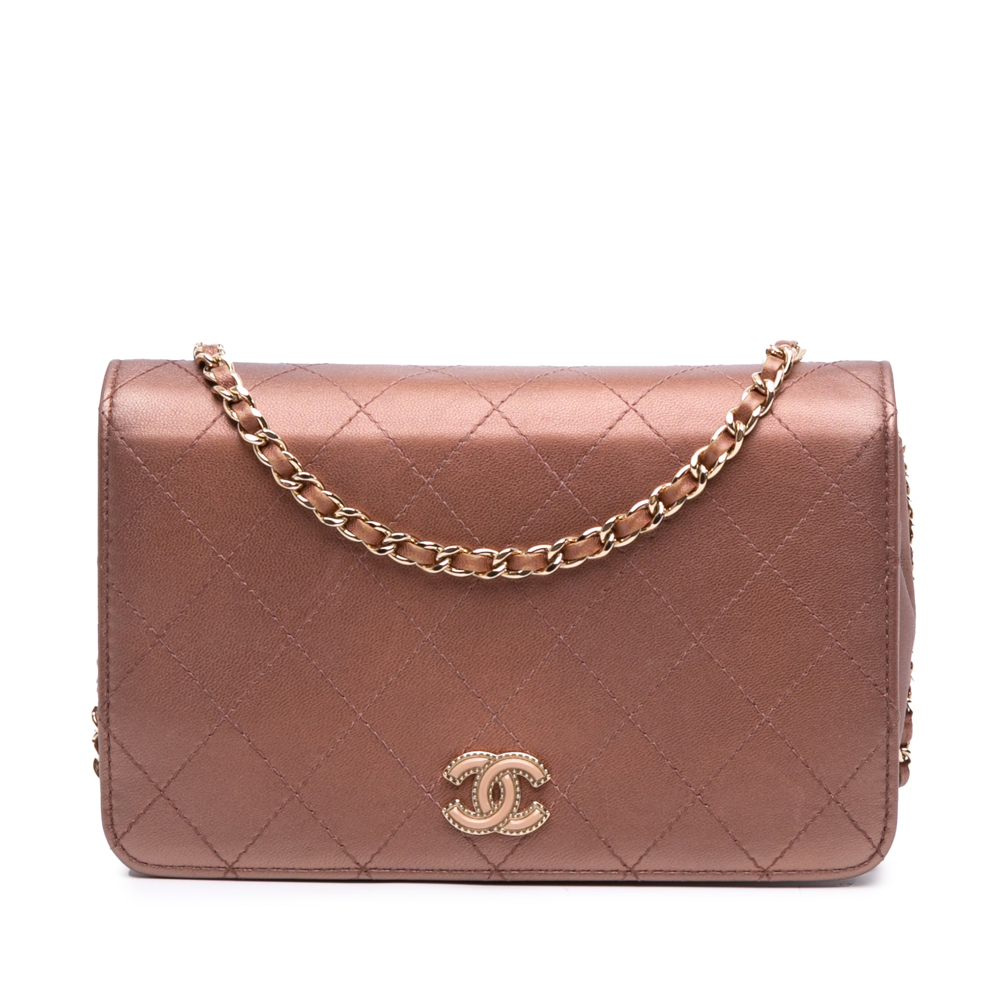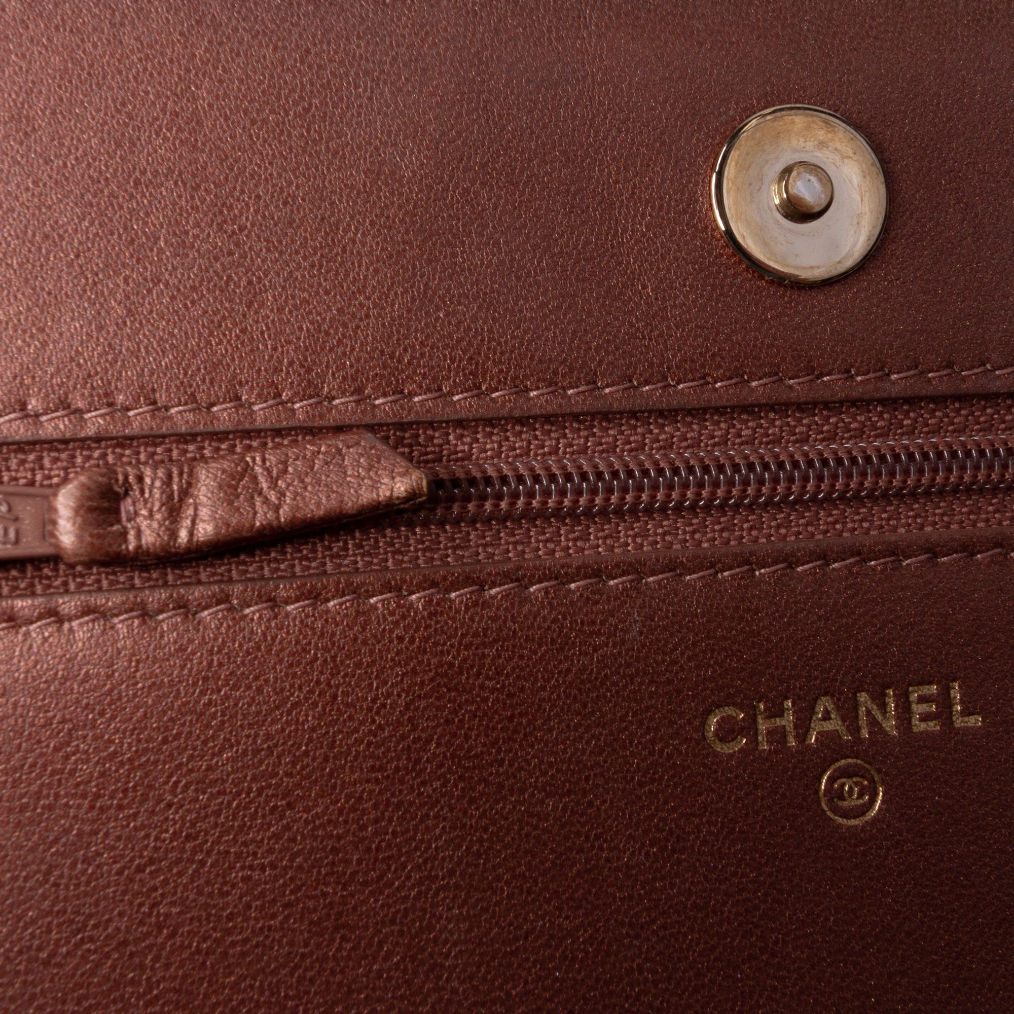 Chanel CC Quilted Metallic Lambskin Enamel Wallet On Chain