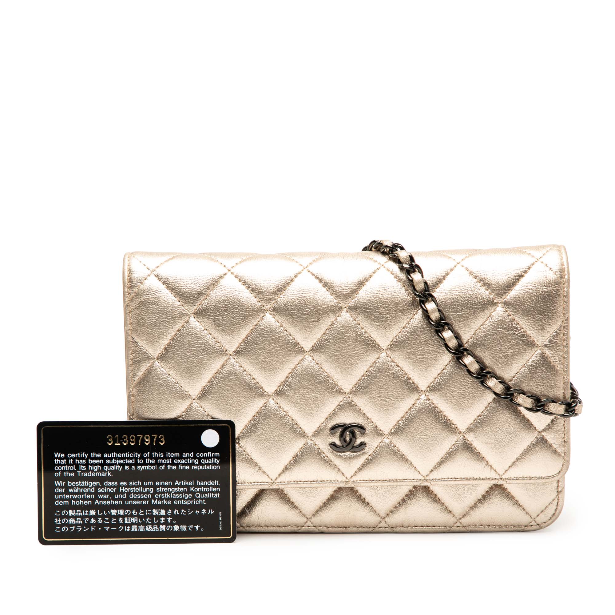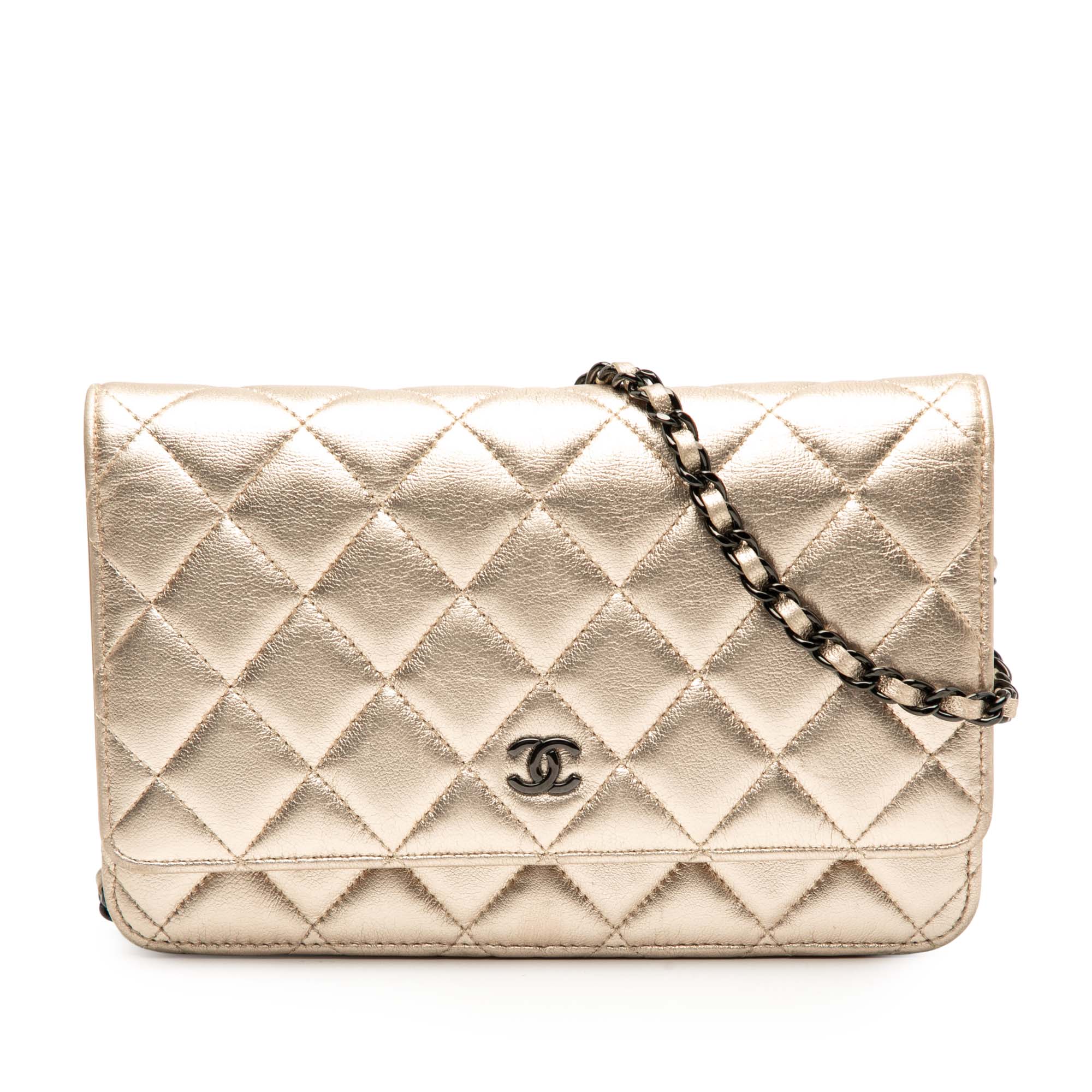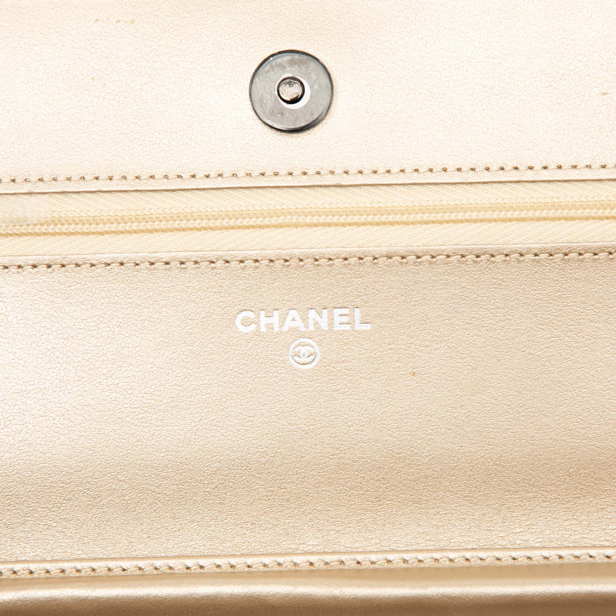 Chanel CC Quilted Metallic Lambskin Wallet on Chain