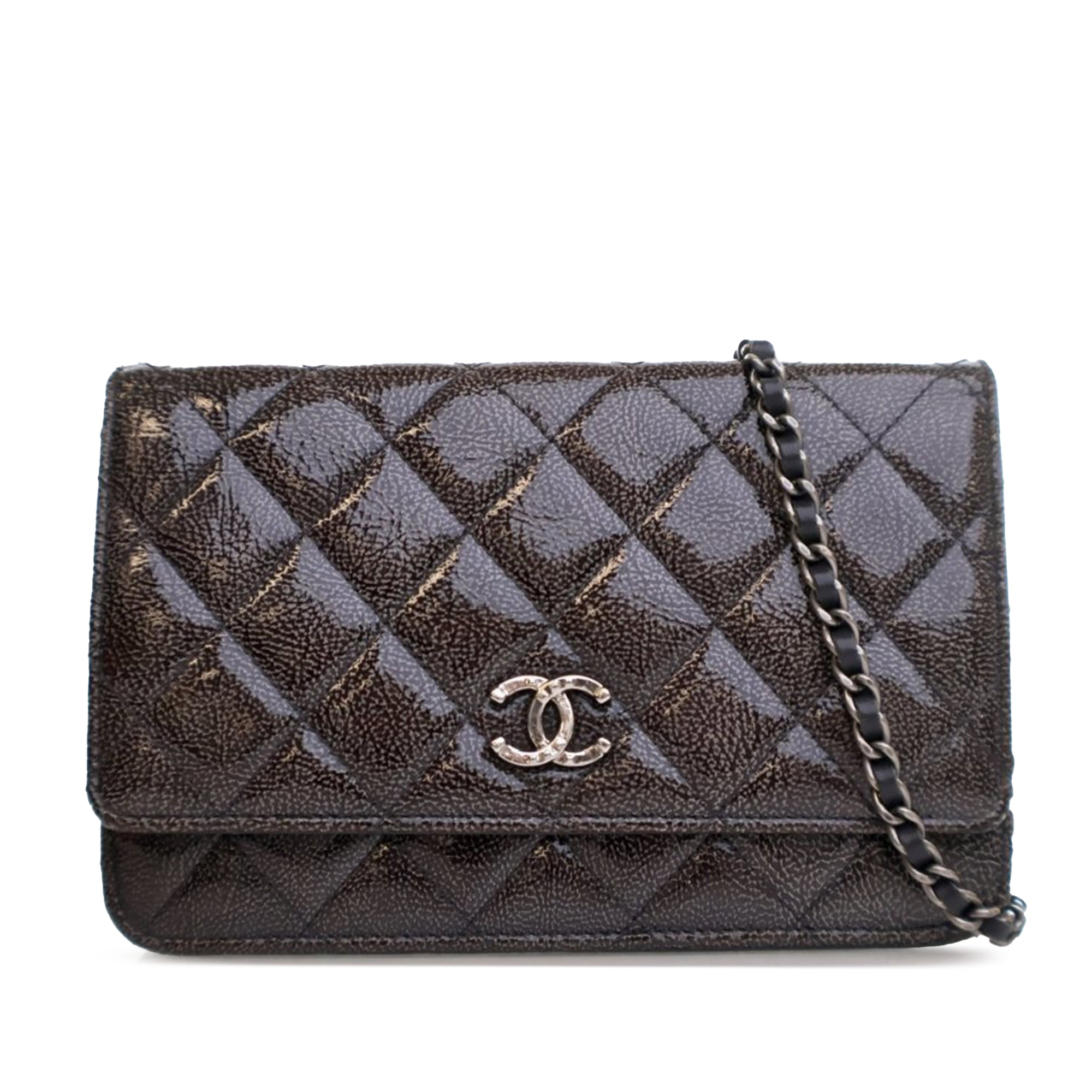 Chanel CC Quilted Shiny Crumpled Calfskin Wallet on Chain