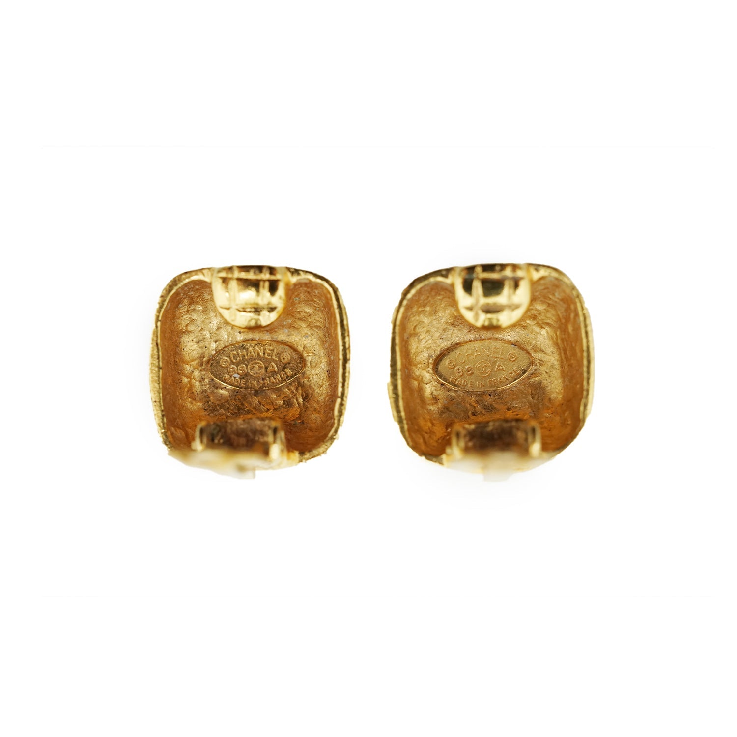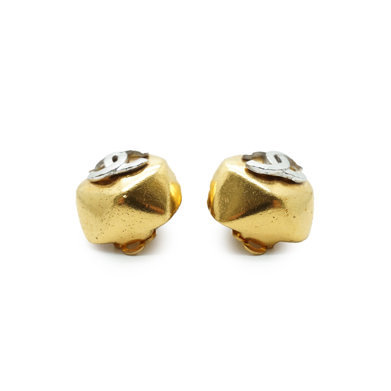 CC Square-shaped Clip-on Earrings Gold/Silver BrassDepth: 1cmHeight: 1.5cmWidth: 1.5cmDiscoloration: Slight tarnishScratch: Slight scratches overallSerial code: 98A