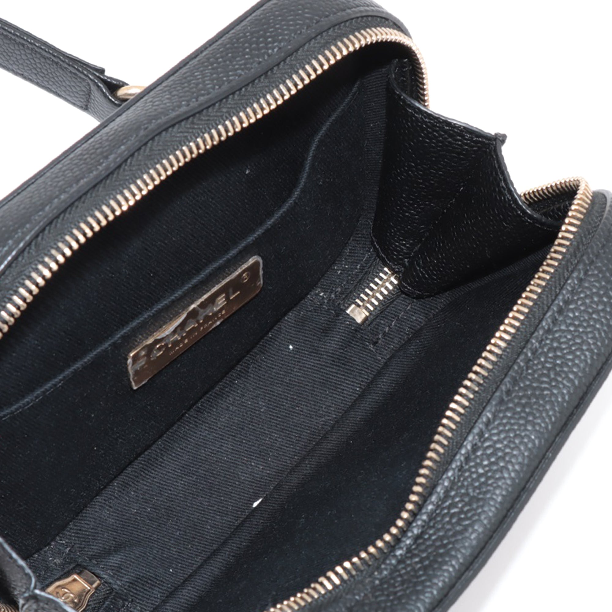 This belt bag features a stitched caviar leather body, chain link and leather strap, a dual zip-around closure, an exterior front slip pocket with magnetic snap closure, and an interior slip pocket. Inclusion: Dust bag. Retail Price: 3800.00