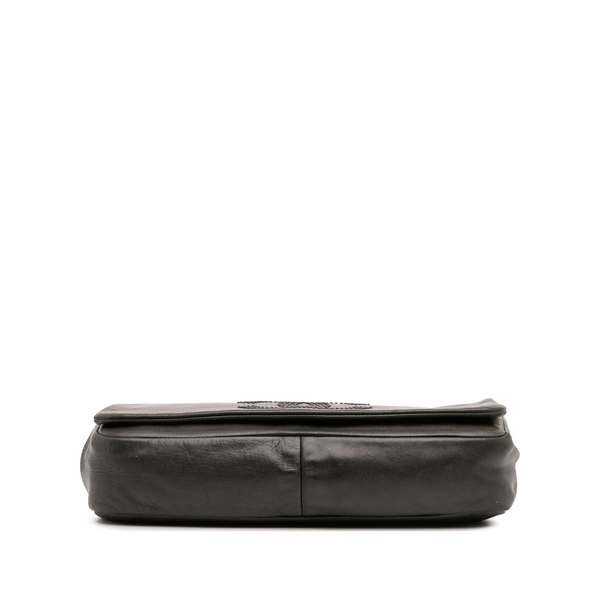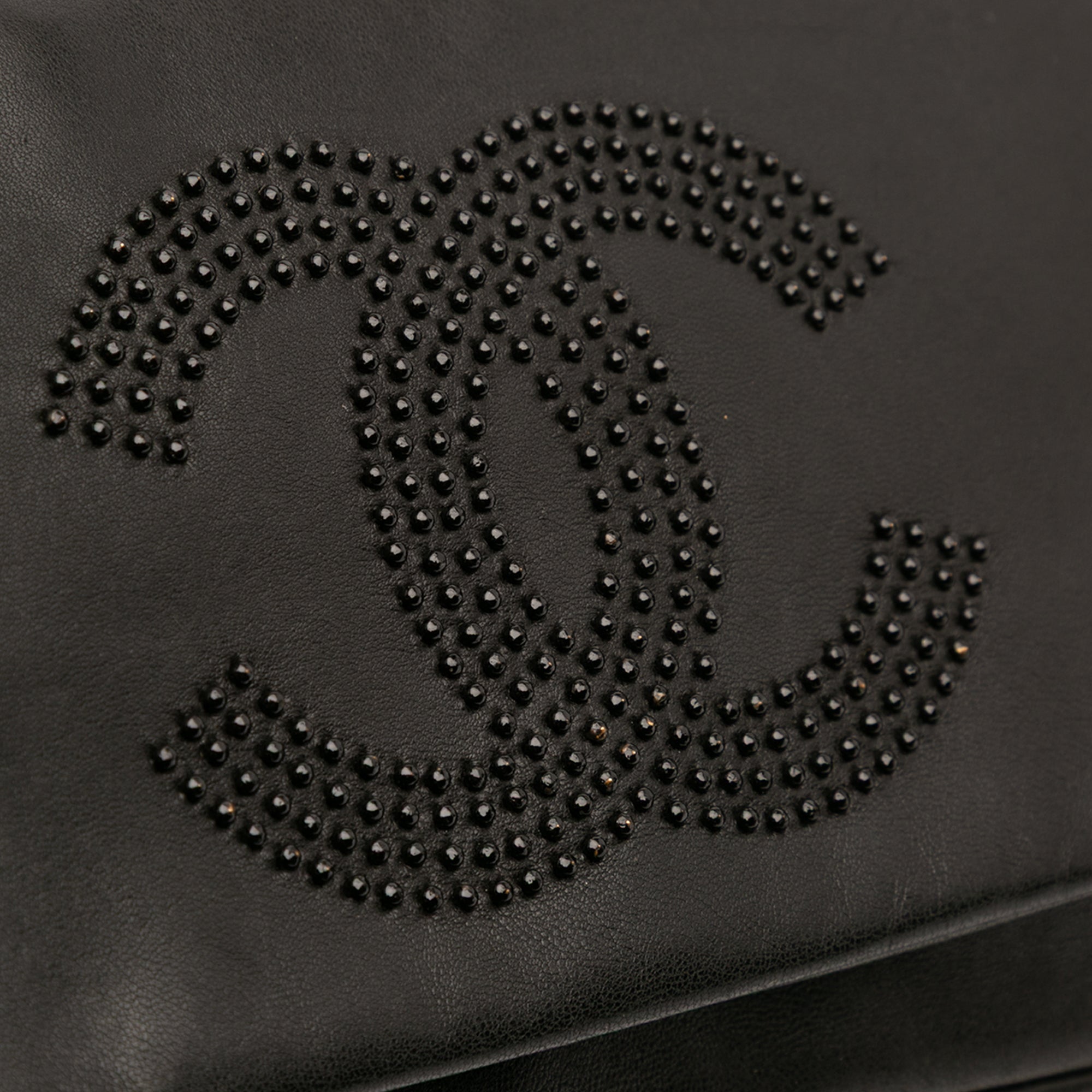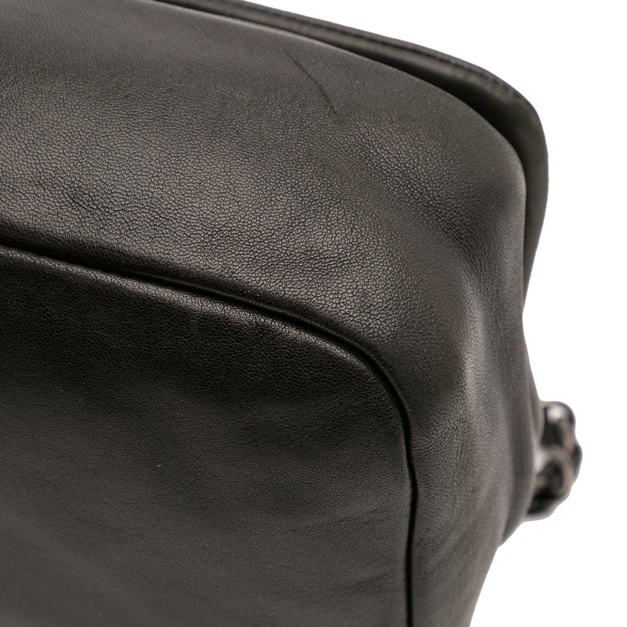 This shoulder bag features a studded lambskin leather body, a leather woven chain strap, a front flap with magnetic closure, and an interior zip pocket. Retail Price: 2750.00