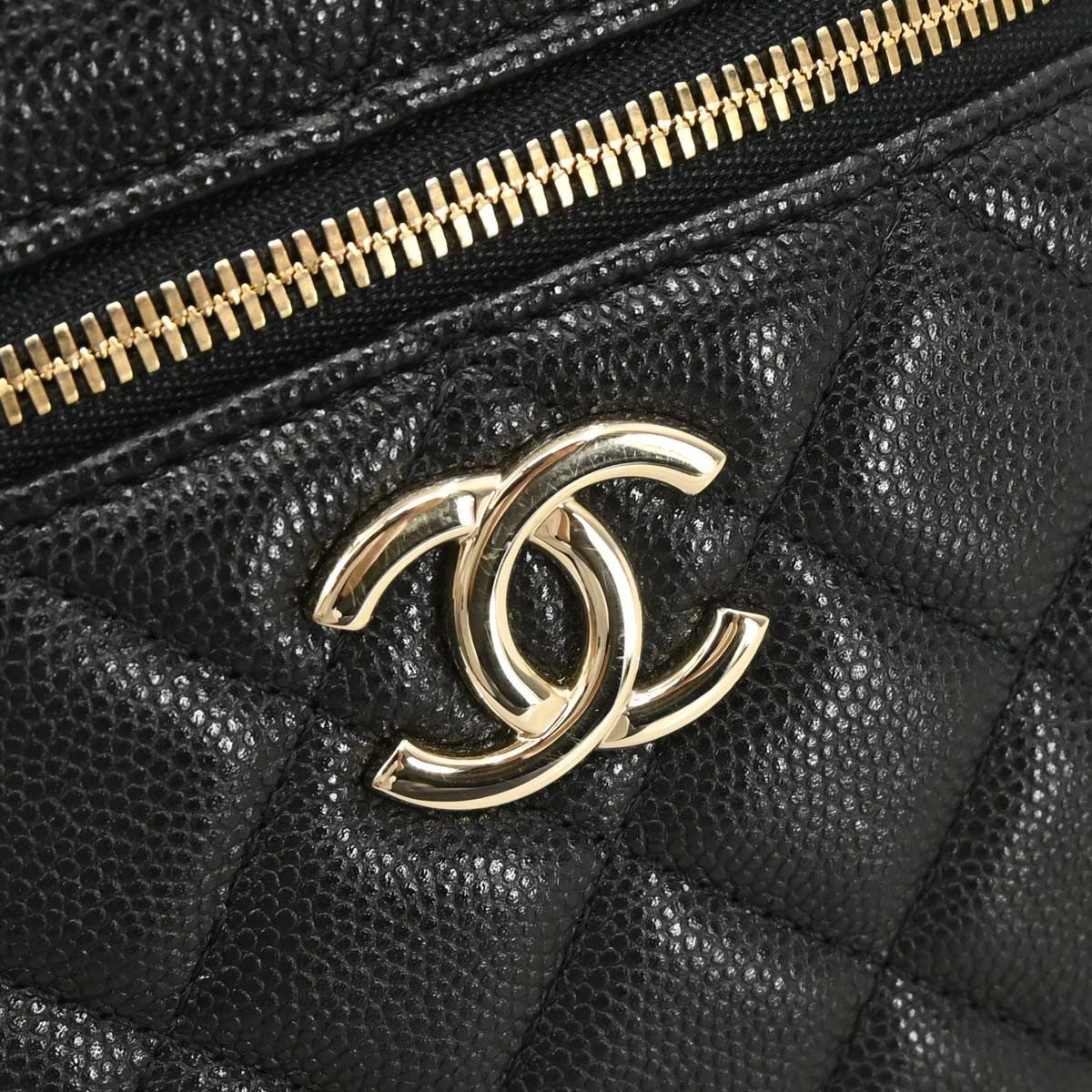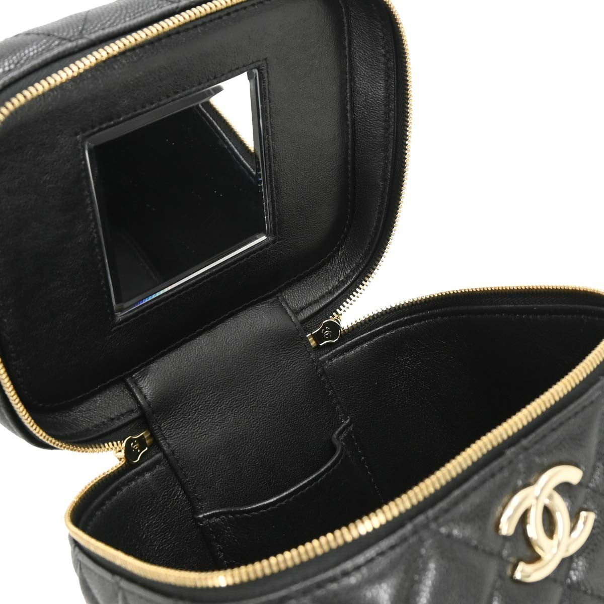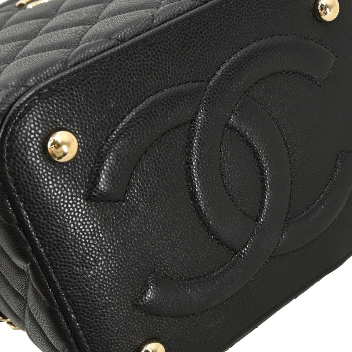 Chanel CC Top Handle Vanity Case with Chain Quilted Caviar