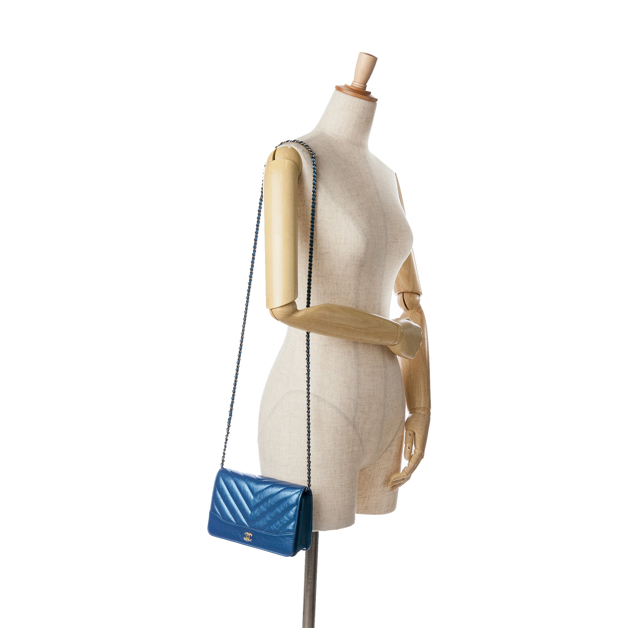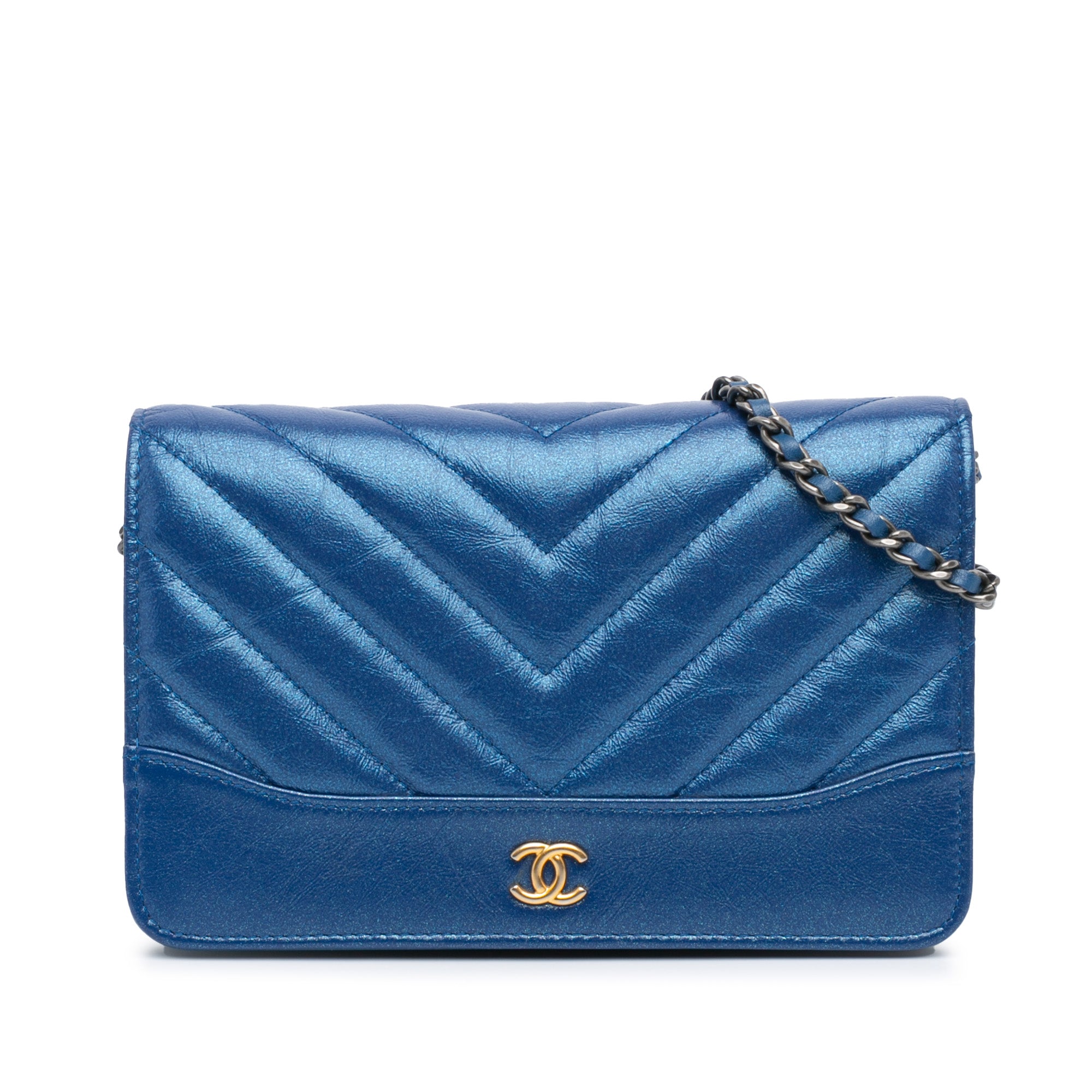 Chanel Chevron Aged Metallic Calfskin Gabrielle Wallet On Chain