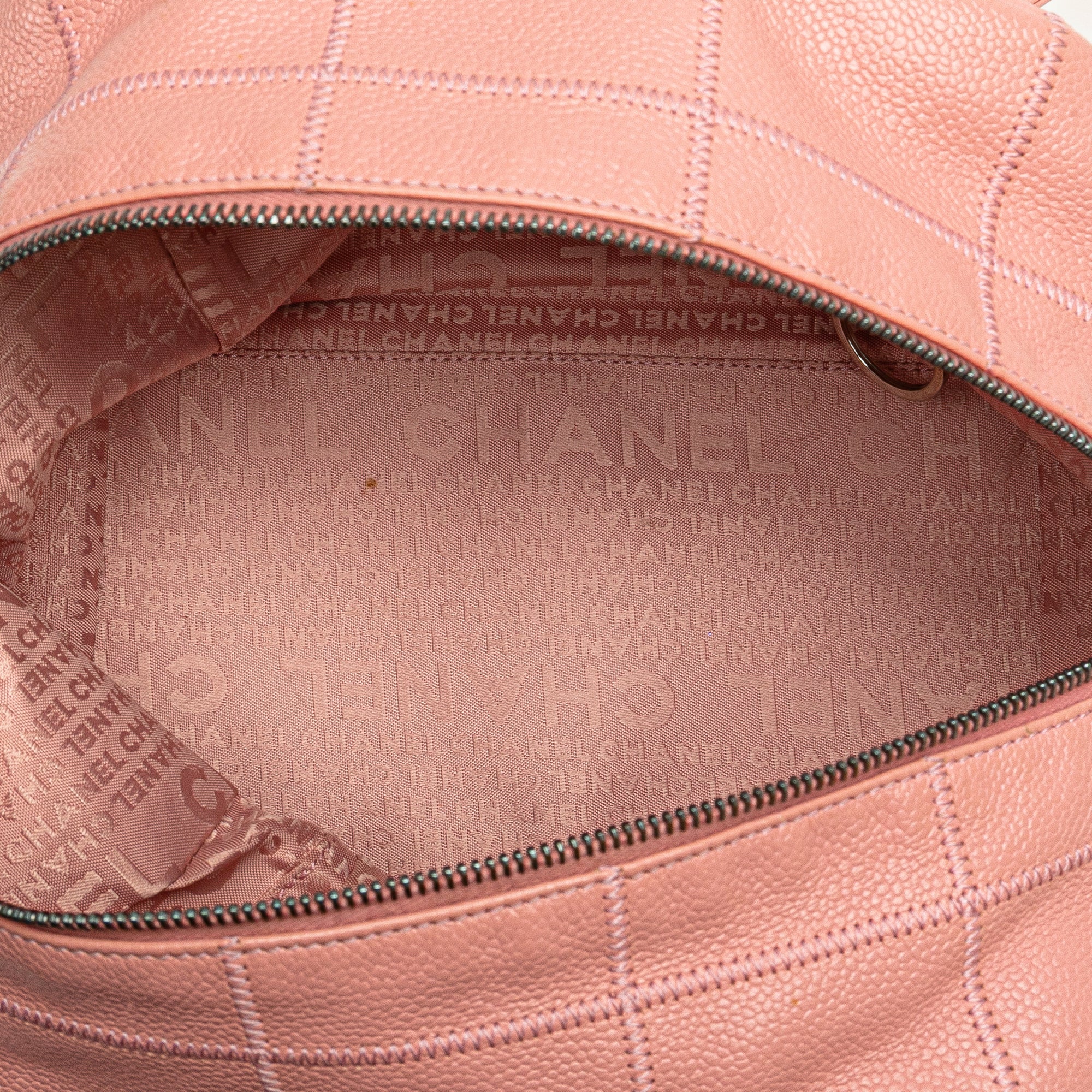 This shoulder bag features a quilted caviar leather body, flat leather straps, a top zip closure, and interior zip and slip pockets. Retail Price: 2500.00