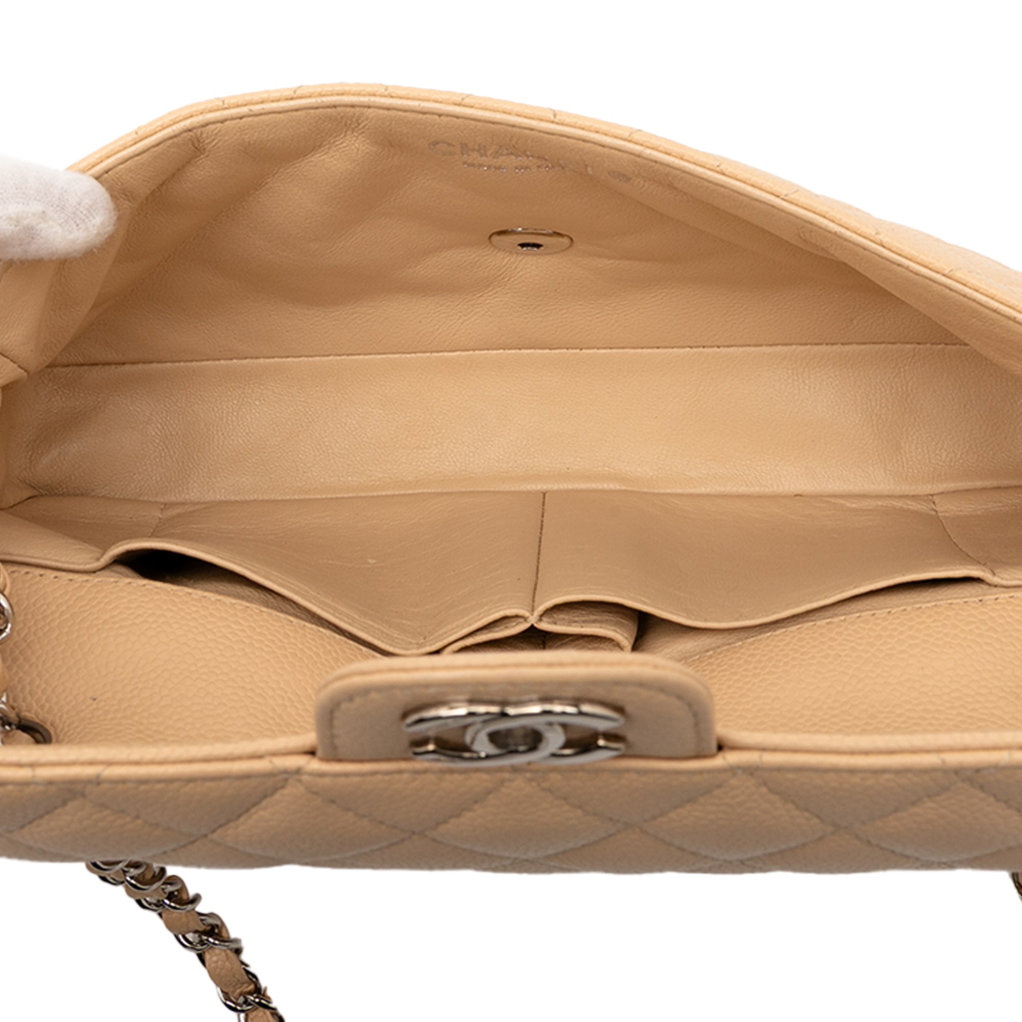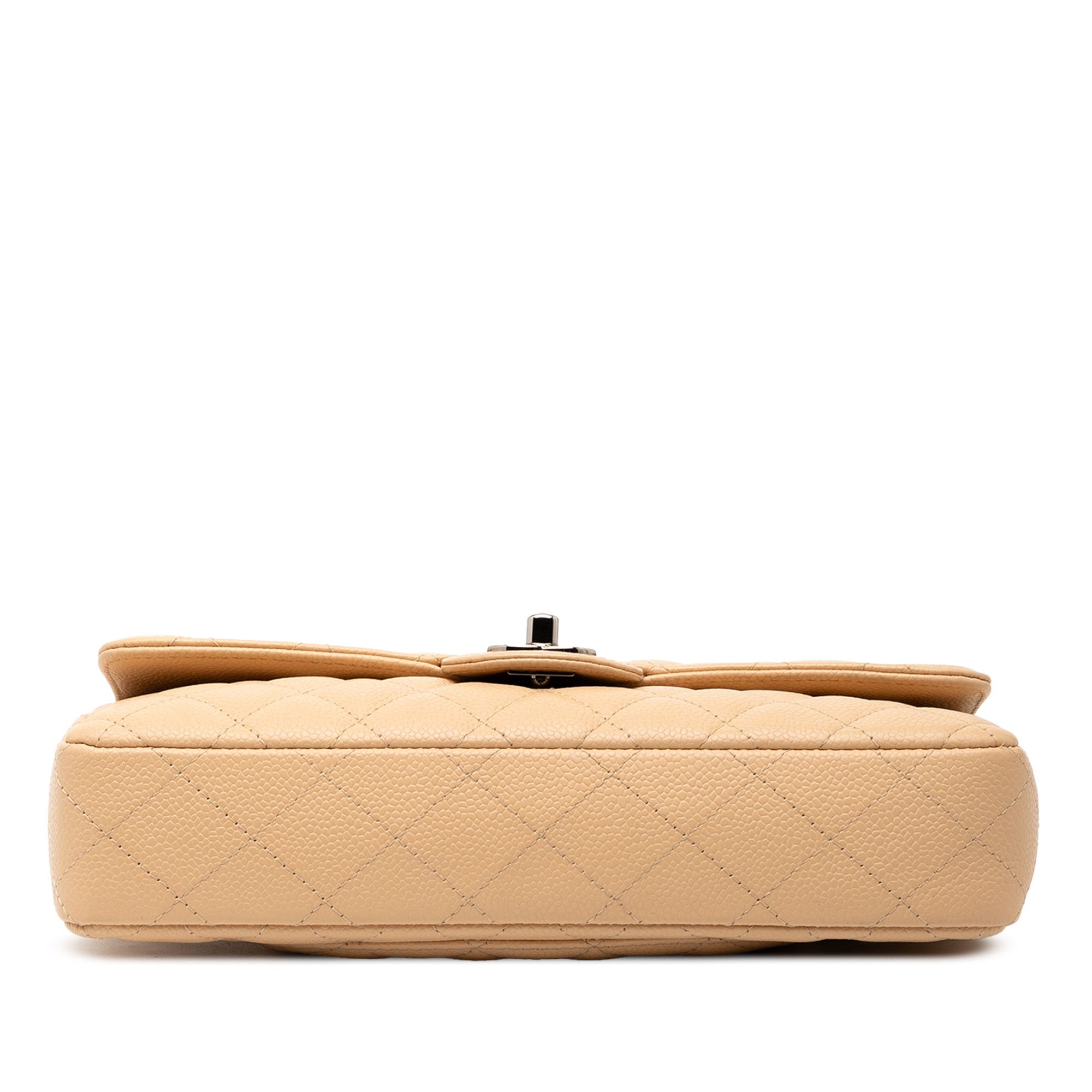 The Classic East West Flap features a quilted caviar leather body, a leather woven chain strap, a front flap with a CC turn lock closure, an exterior back slip pocket, and interior slip pockets. Inclusion: authenticity card. Retail Price: 4195.00